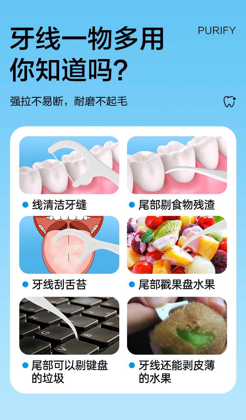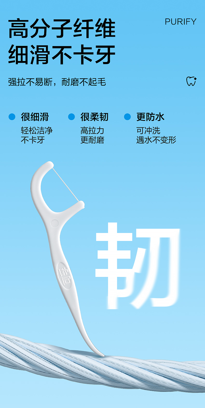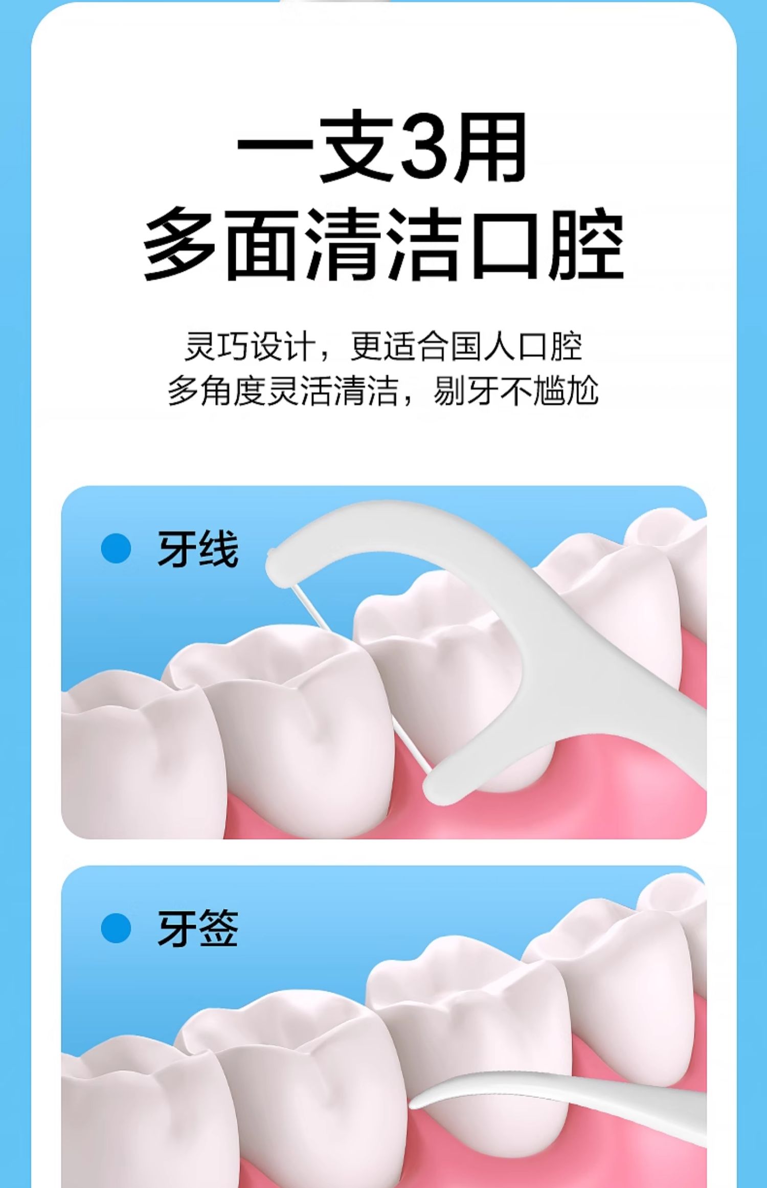 可孚牙线棒超细家庭装细圆线护理盒装儿童剔牙线家用牙签线200支