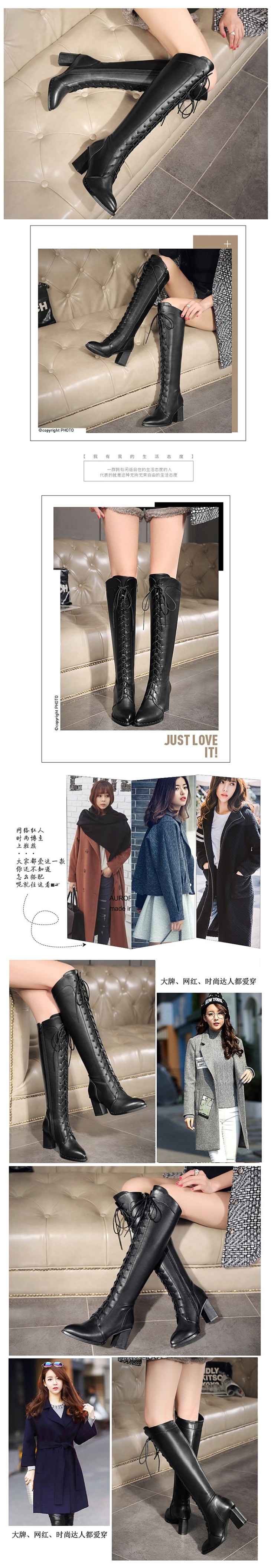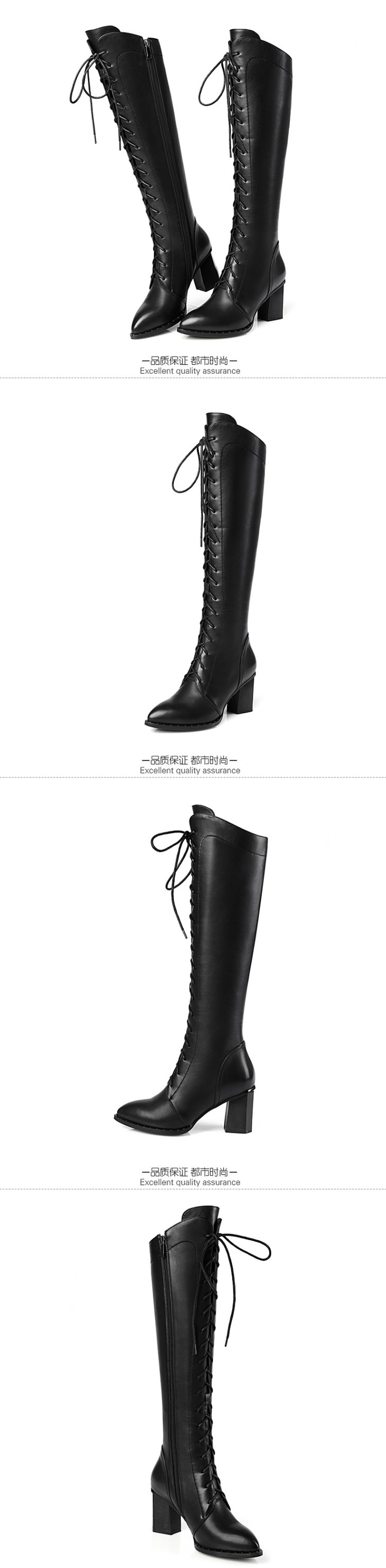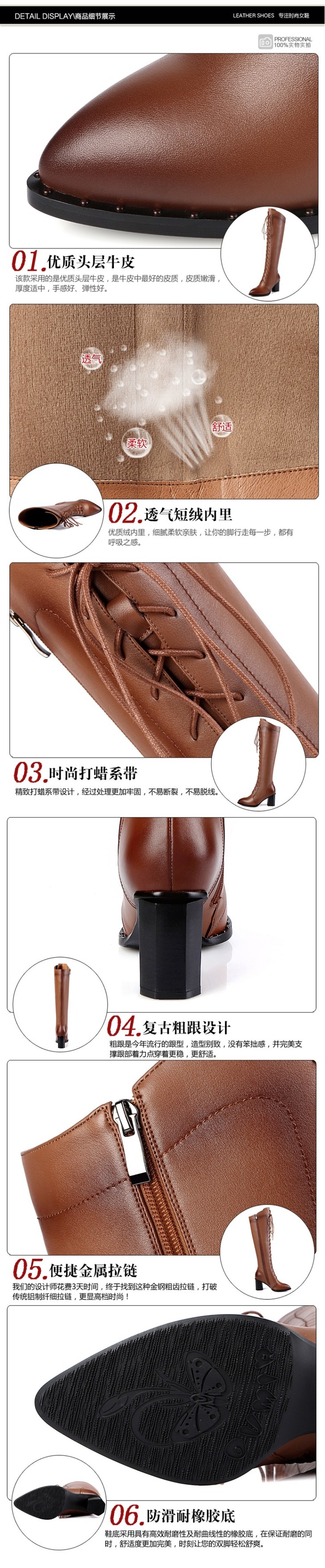 DTN-62-10 秋冬季新款尖头高跟交叉绑带马丁靴前系带纯色真皮个性百搭高筒靴