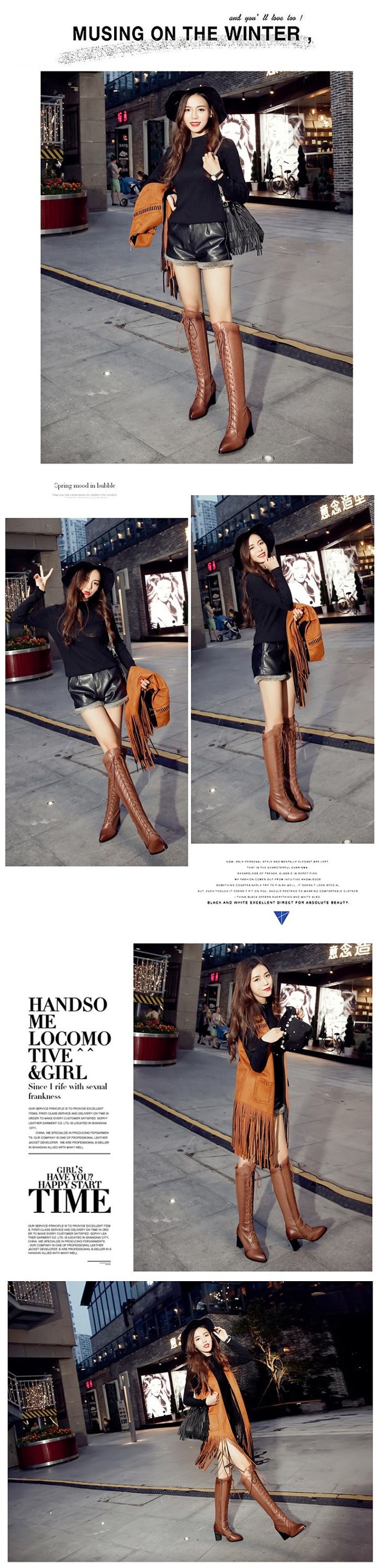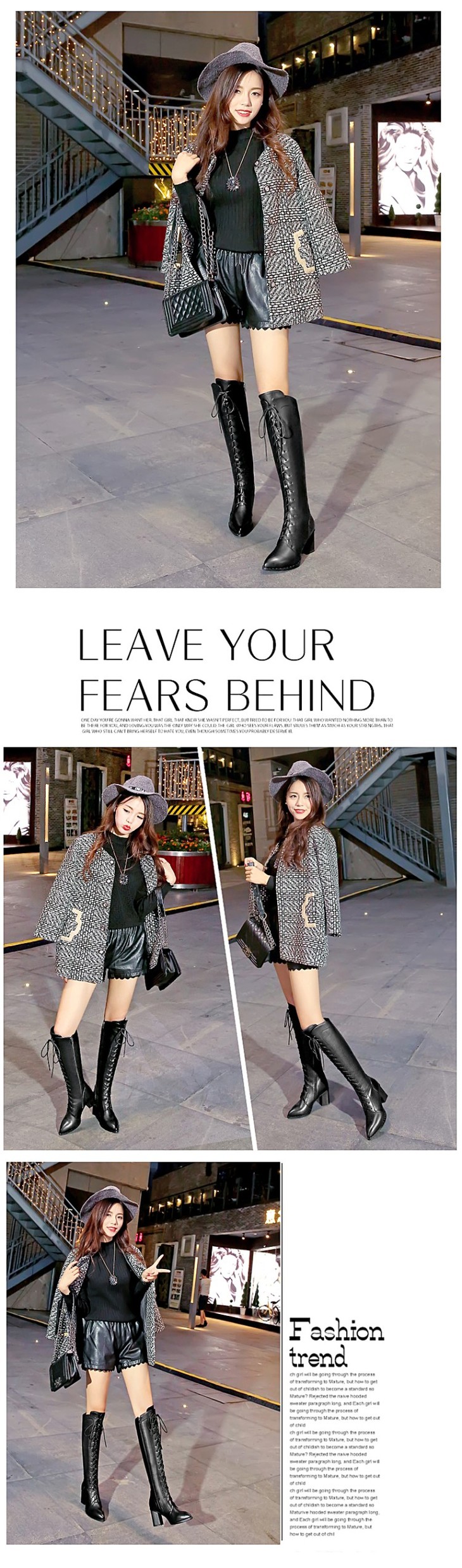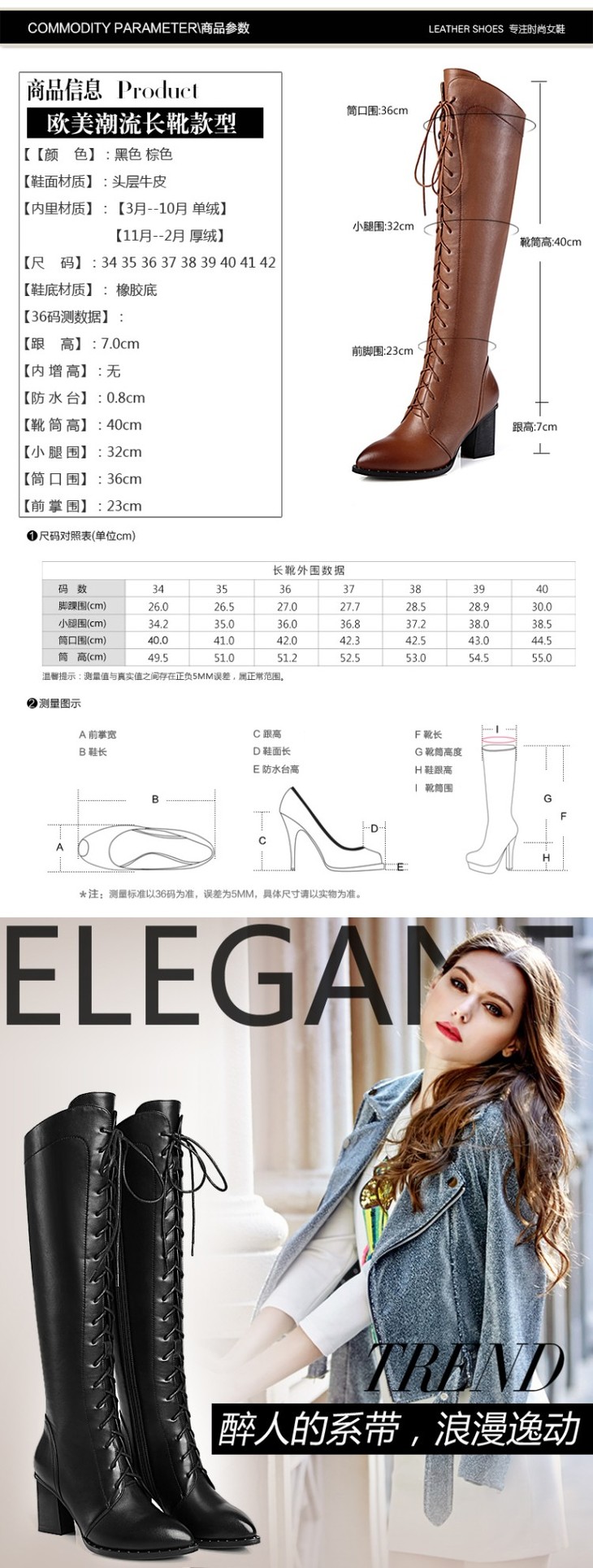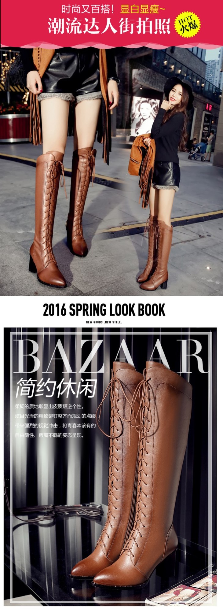 DTN-62-10 秋冬季新款尖头高跟交叉绑带马丁靴前系带纯色真皮个性百搭高筒靴