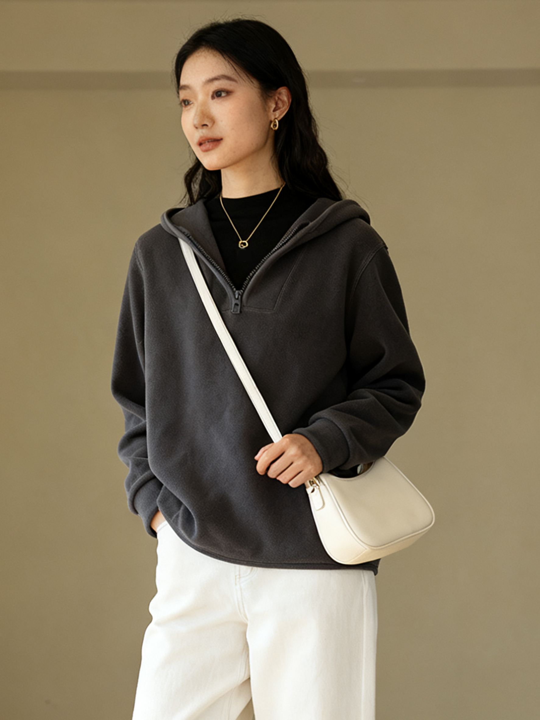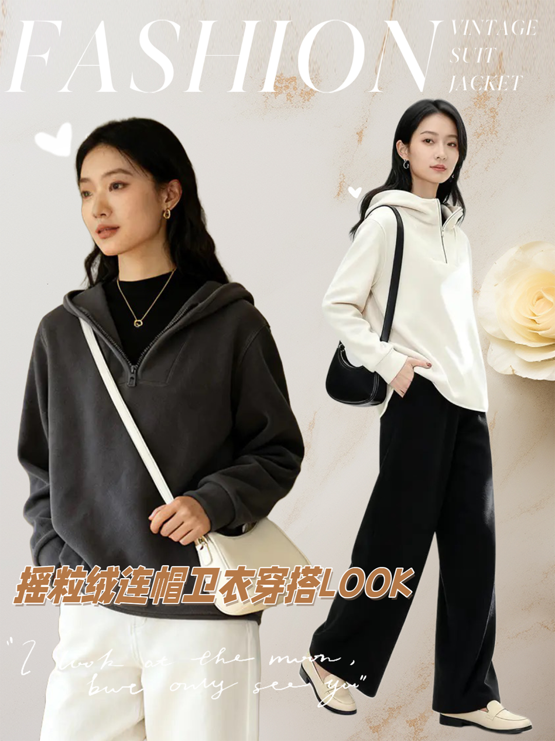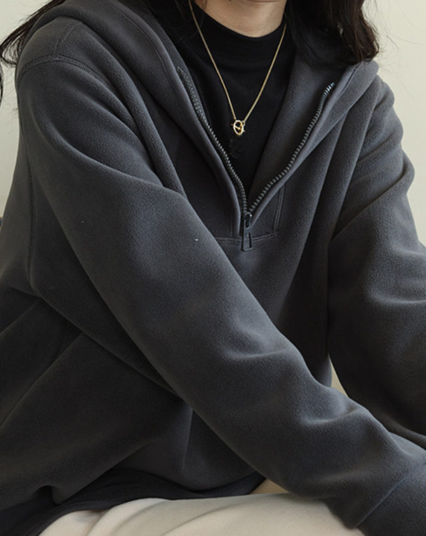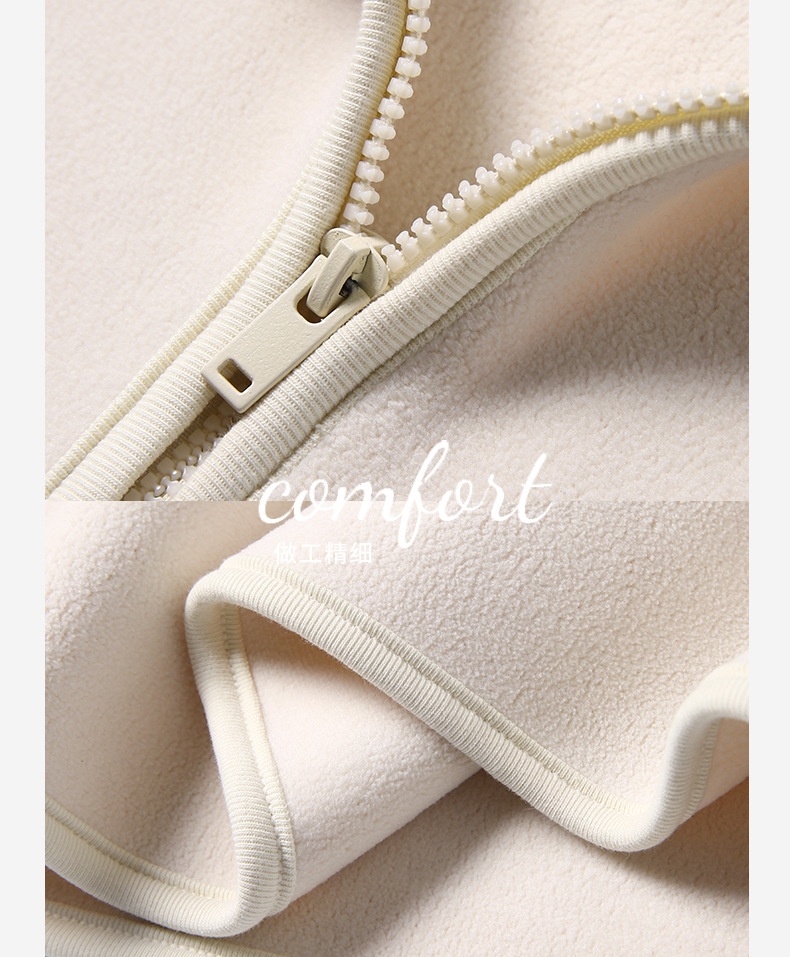 ☁️连帽摇粒绒卫衣,写着「舒服」两个字✨ 合体剪裁,藏肉显瘦,穿出松弛感✨ 连帽+半开襟拉链,防风保暖,解锁多种穿法