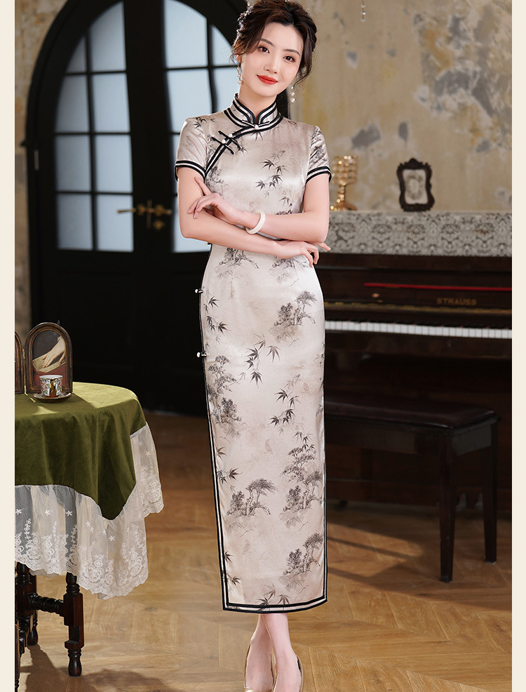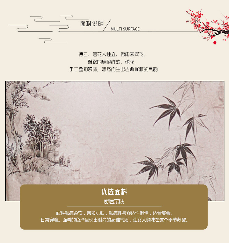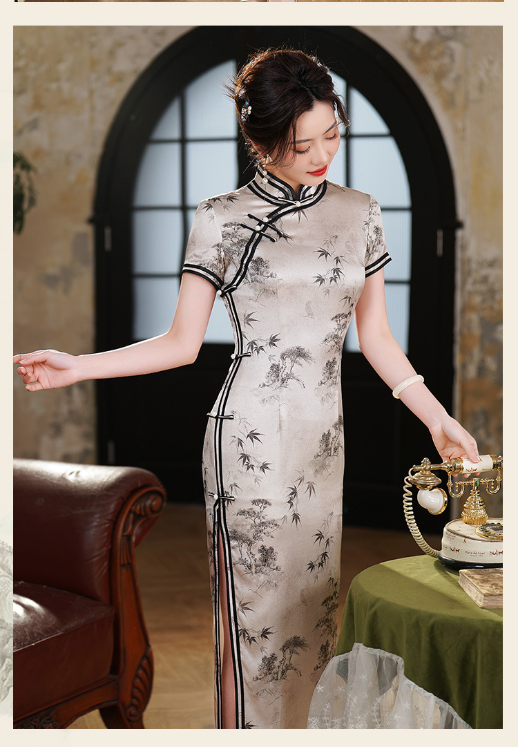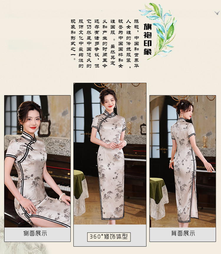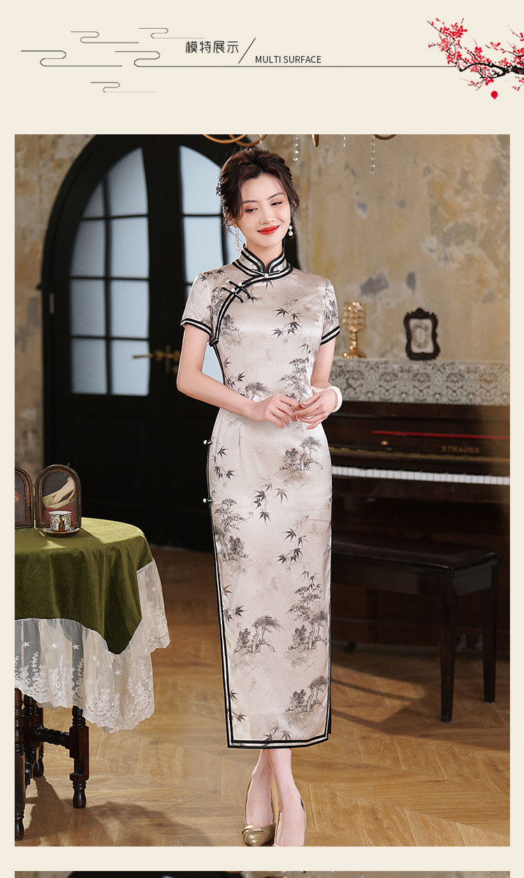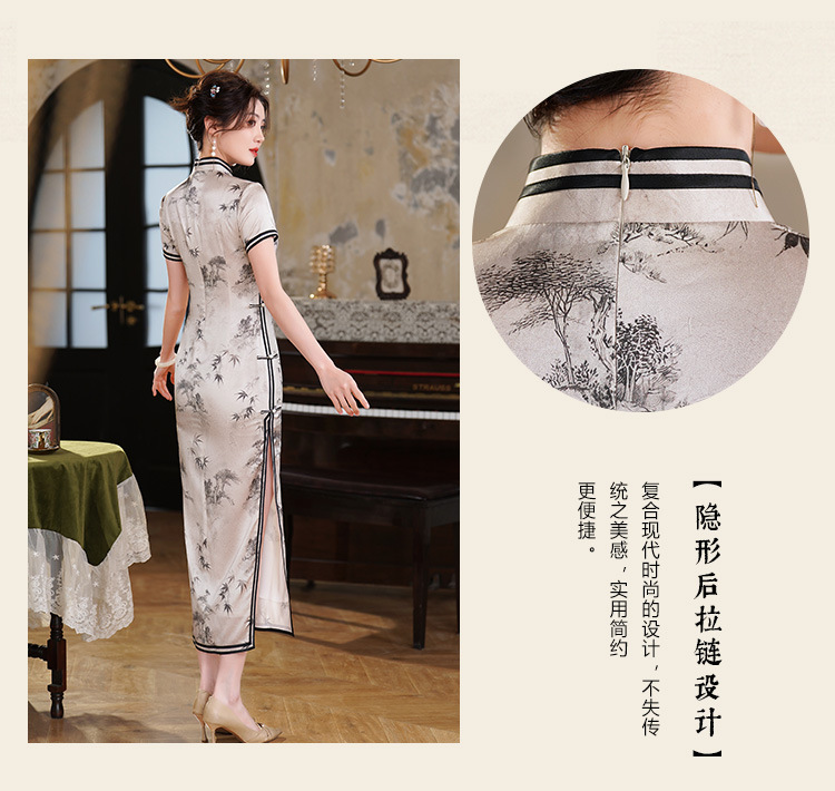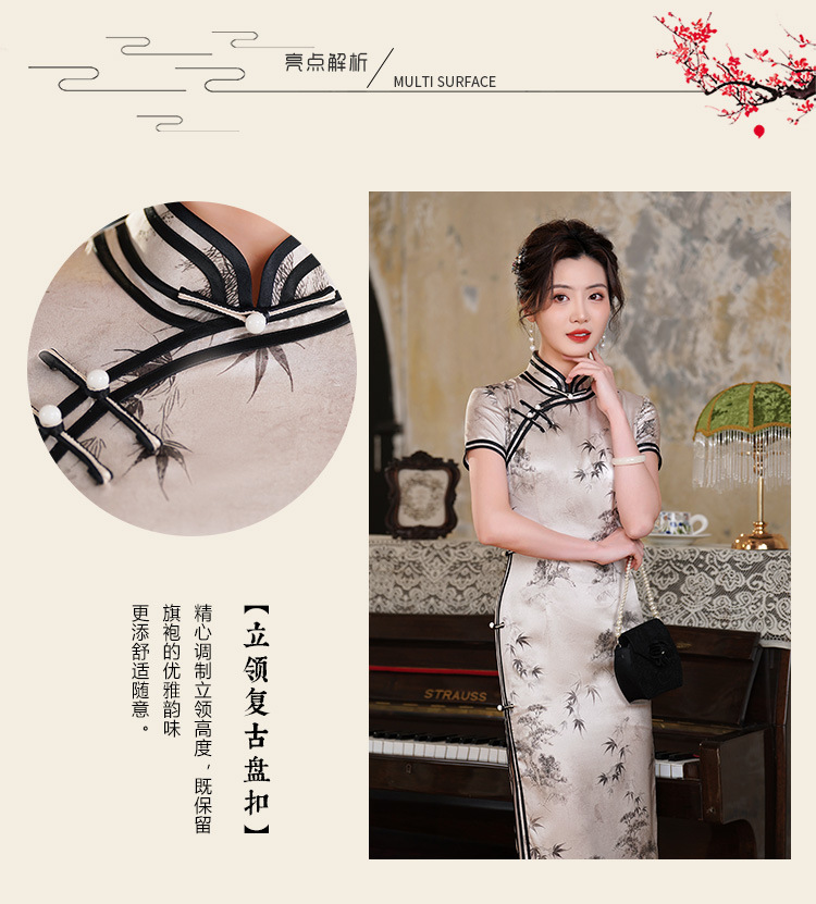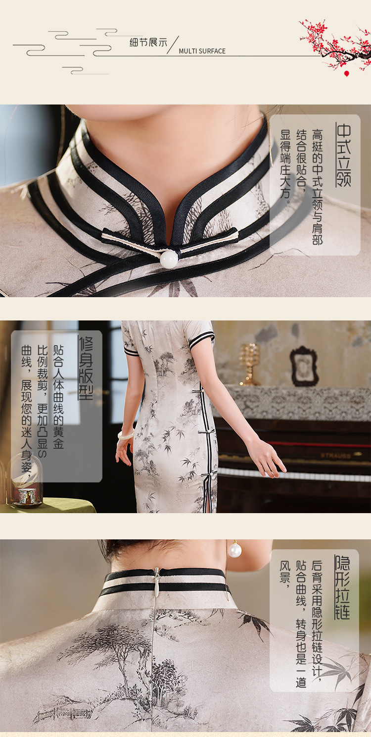 ZA梨花落 新款复古改良中式丝绸长款旗袍