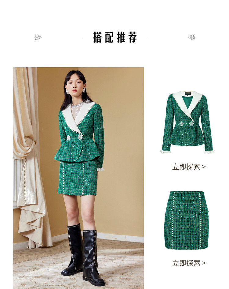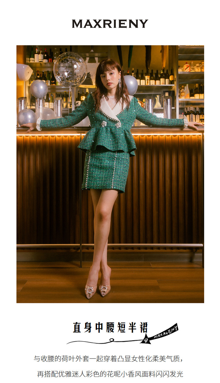 MAXRIENY翡翠小香风半裙秋季半身裙包臀短裙MC87SK554G50