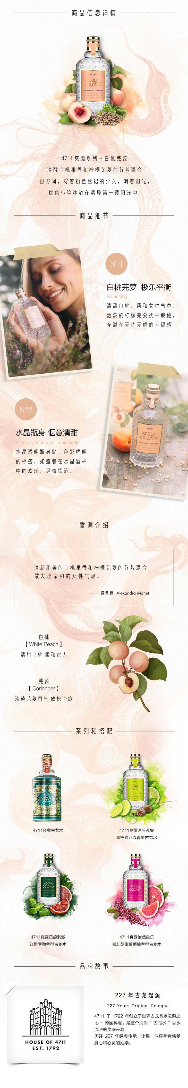 4711爽露极乐平衡白桃芫荽香型古龙水50ml/170ml