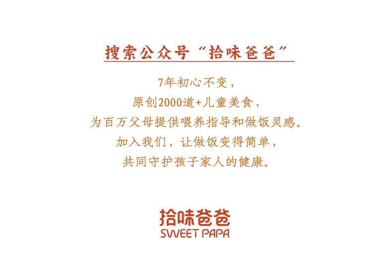专注健康美味的食品研发8年 从分享儿童美食菜谱到溯源健康家庭食材 曾出版宝宝喂养畅销书《跟着拾爸做辅食》