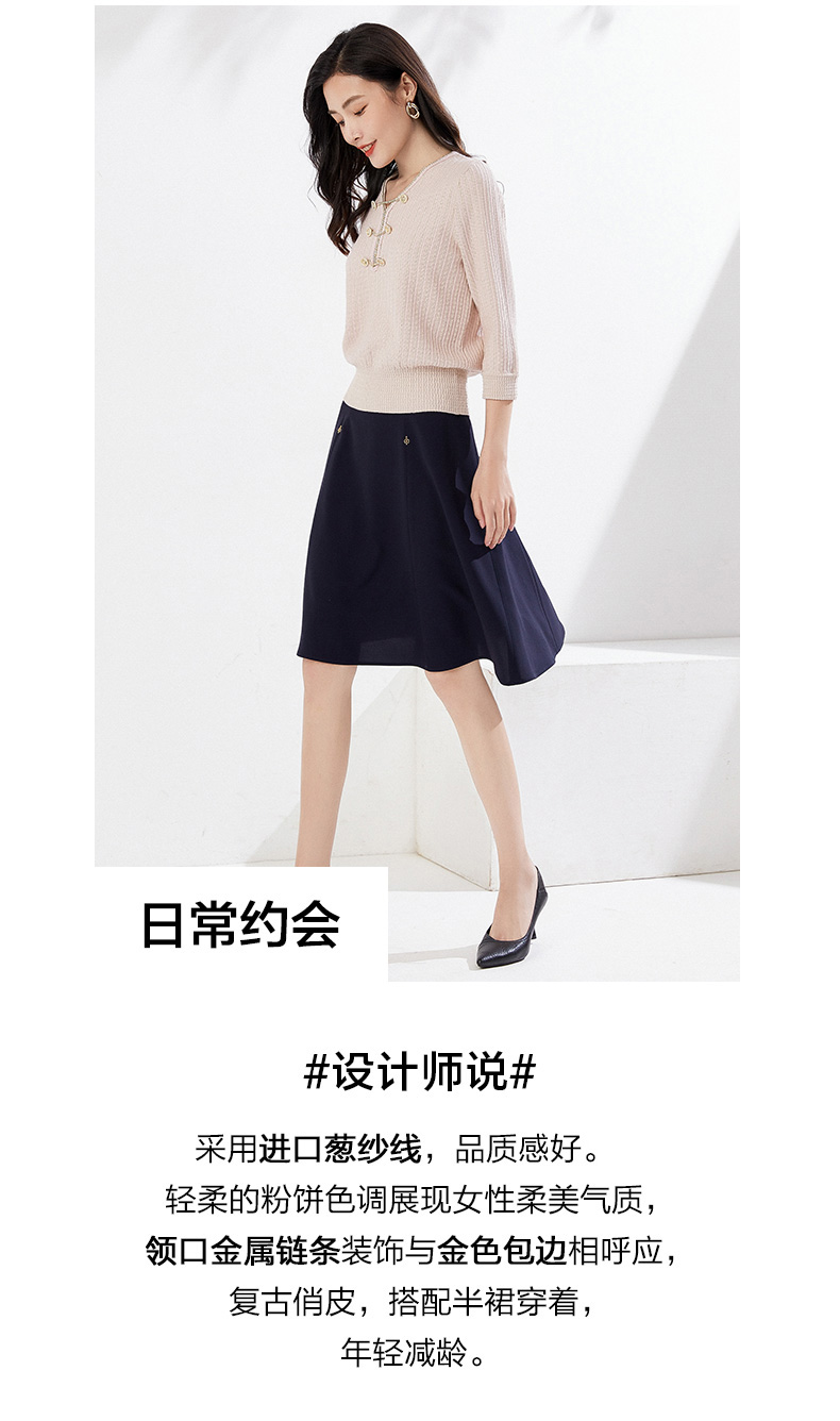 乔万尼复古俏皮领口链条设计针织衫羊毛短款上衣EI3M241