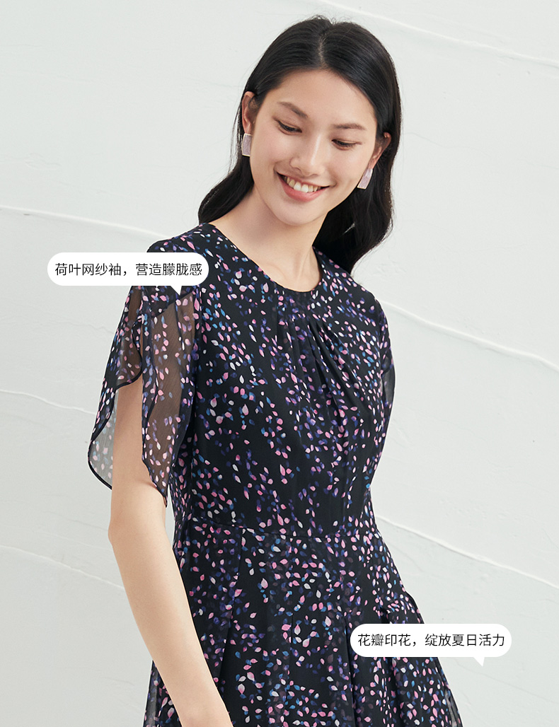 EITIE爱特爱女装新夏季仙女超仙短袖气质简约白色蕾丝连衣裙B1907250