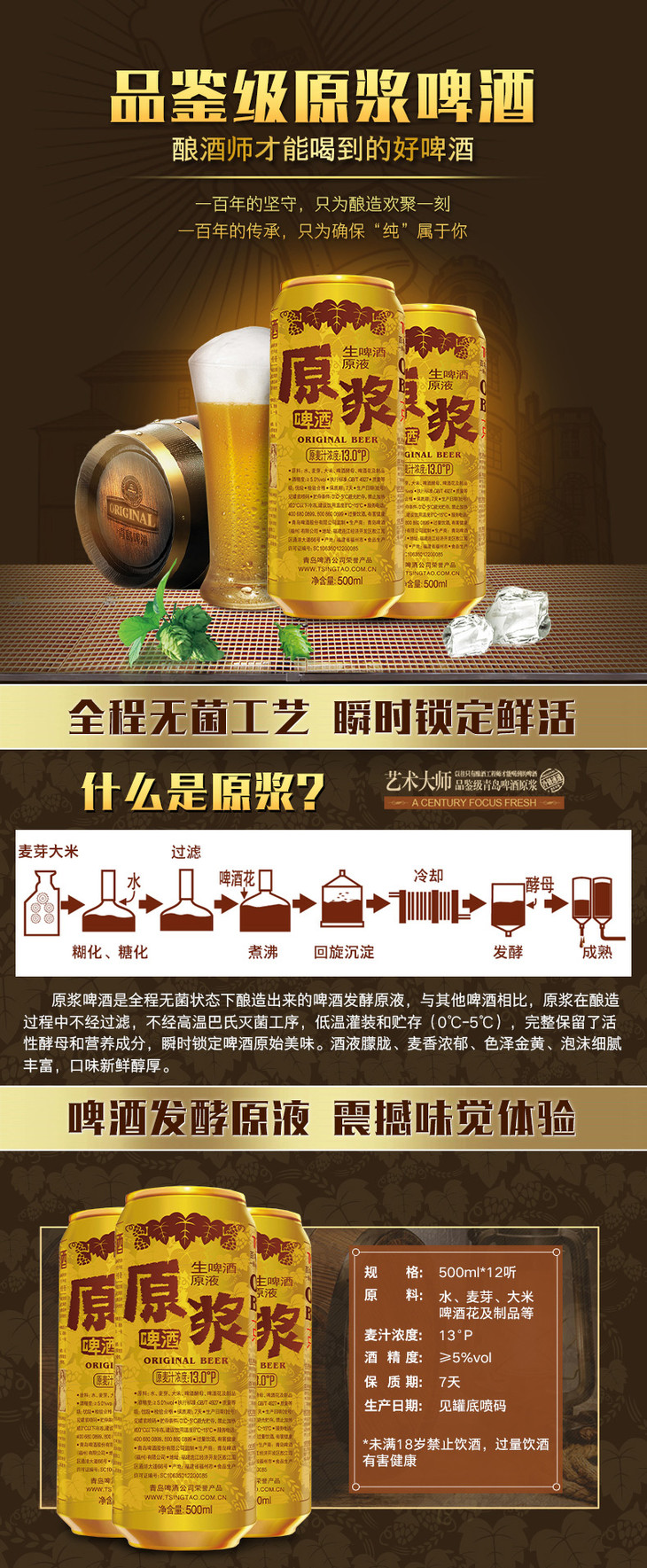 青岛啤酒13度原浆(家饮装)500ml*12罐/箱 (生产日期11月16号 48小时发货)
