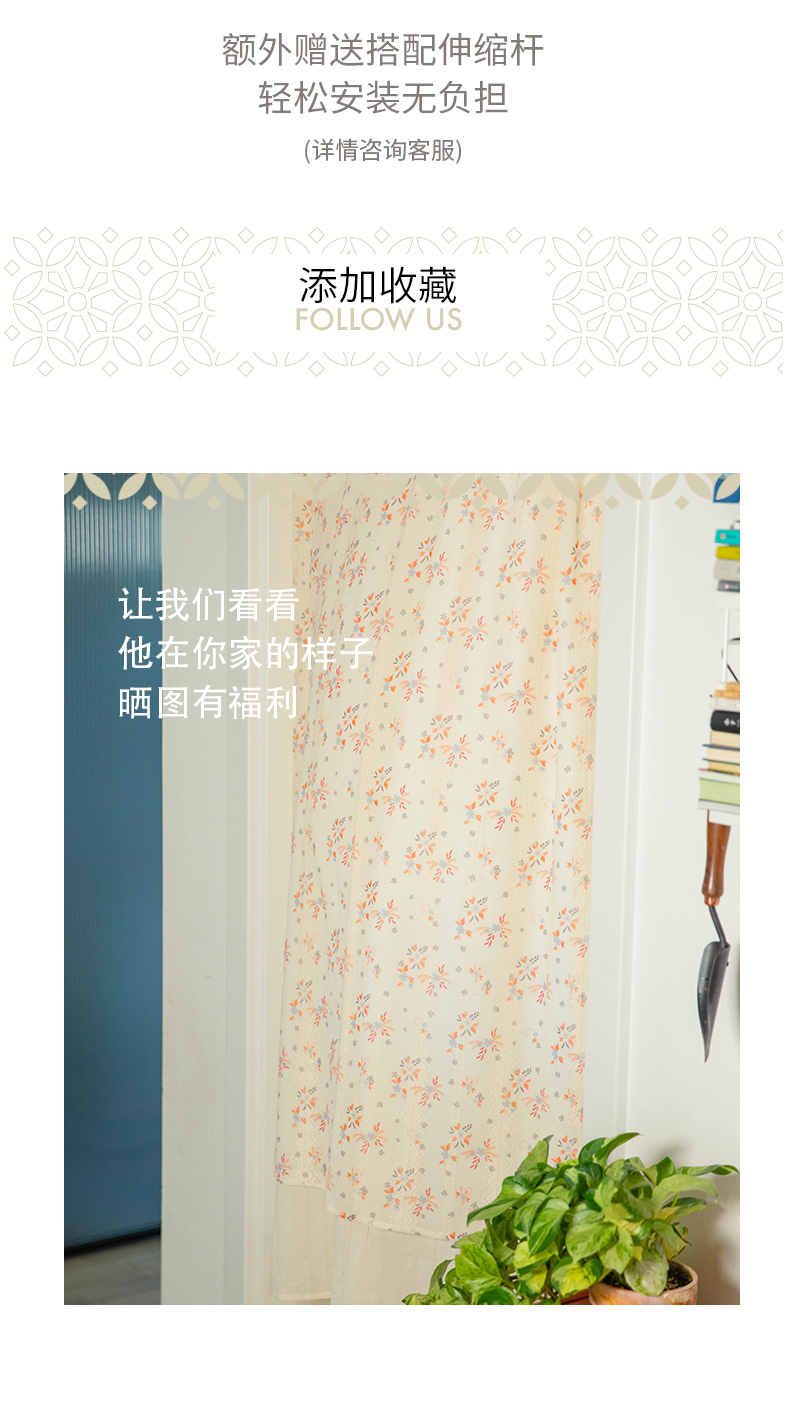 春意碎花门帘门帘隔断帘半帘家用免打孔洗手间厨房布帘夏季