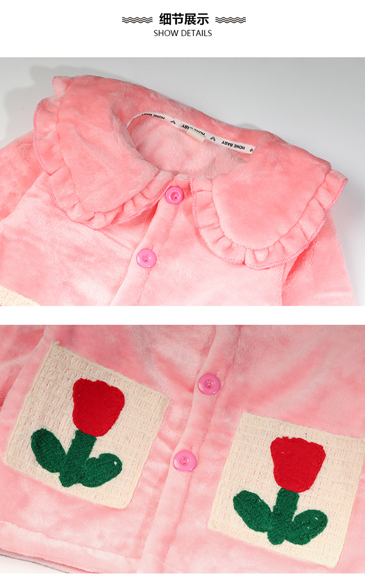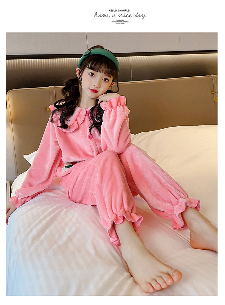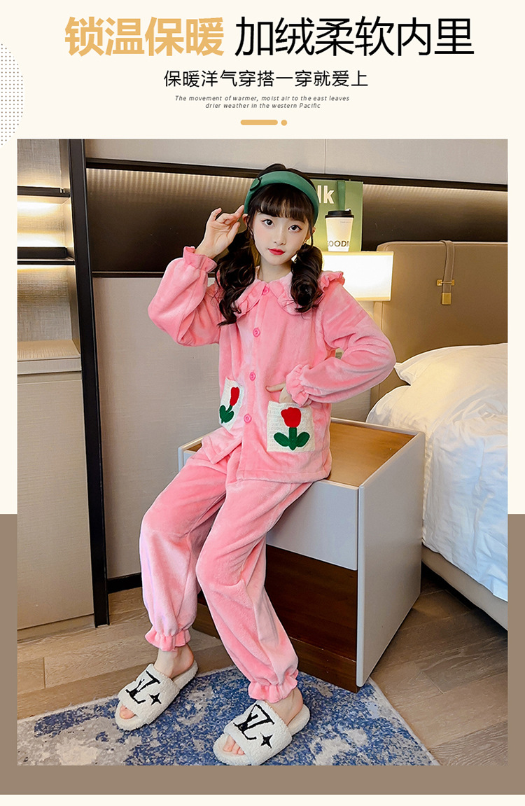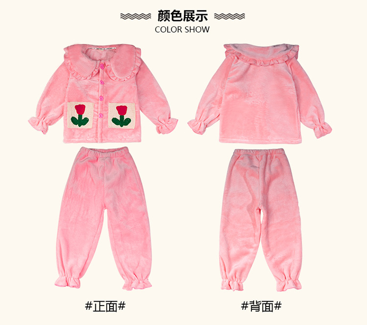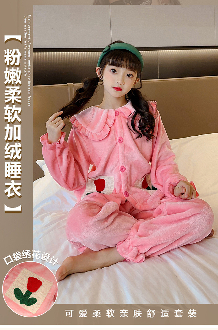 秋冬粉色法兰绒舒适睡衣,女童加绒款宝宝小孩子保暖家居服两件套童PJX-DX3943