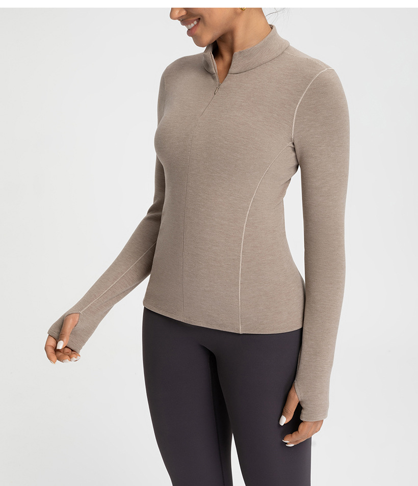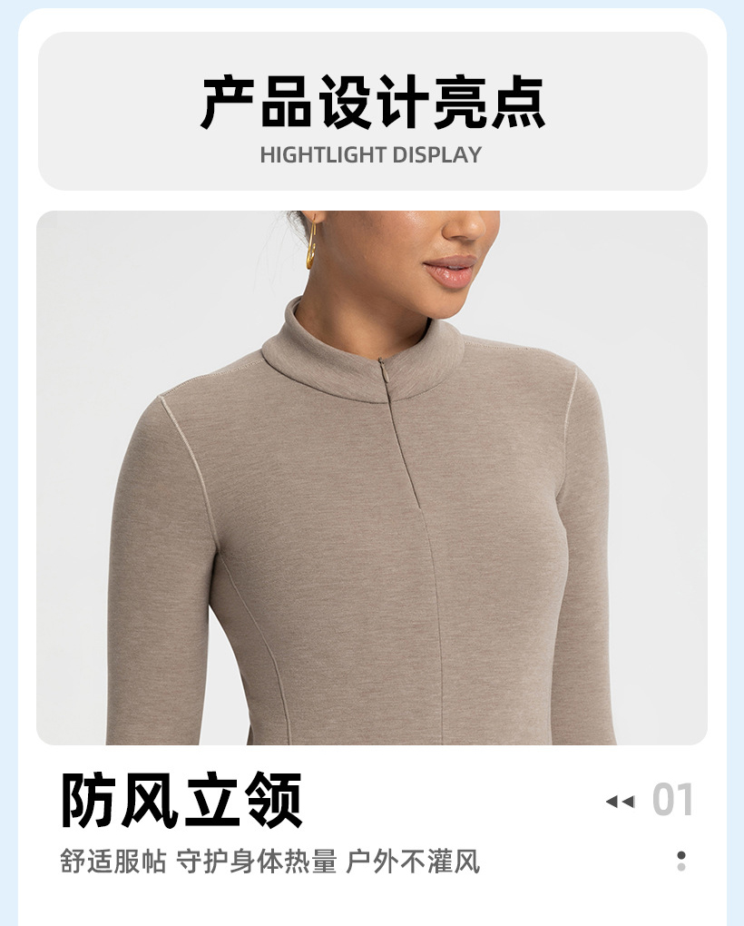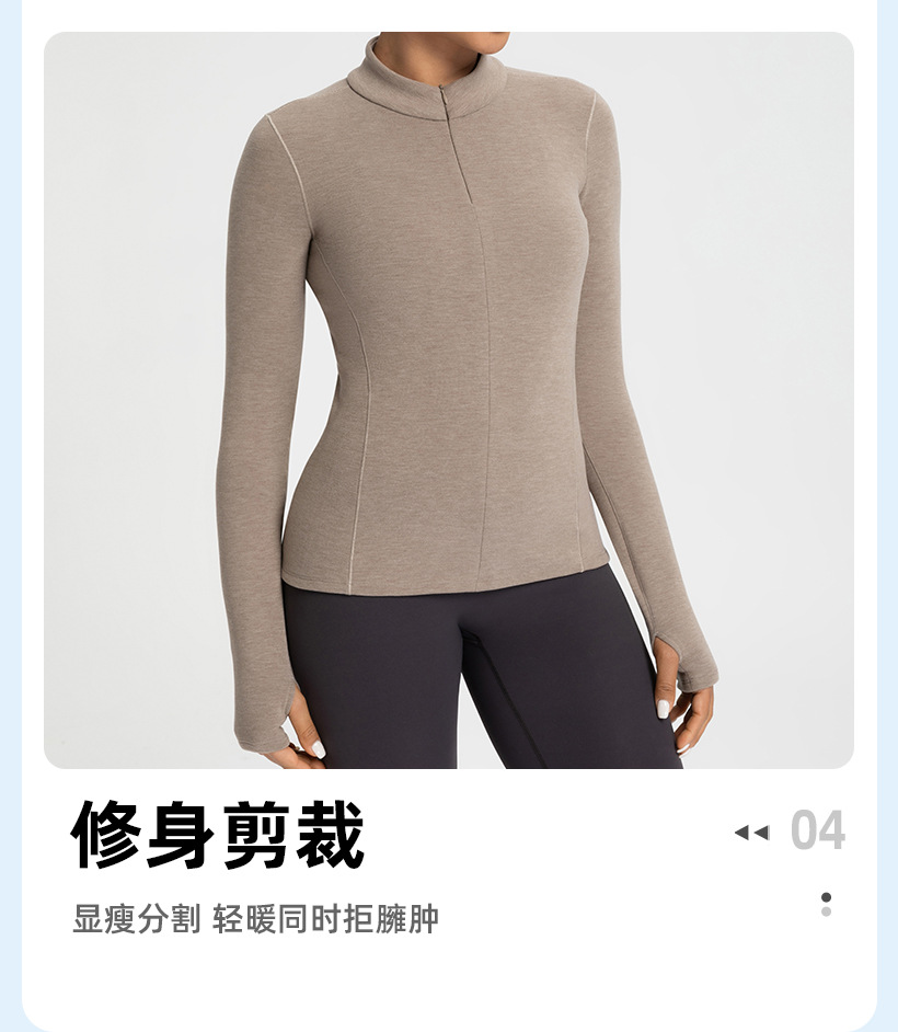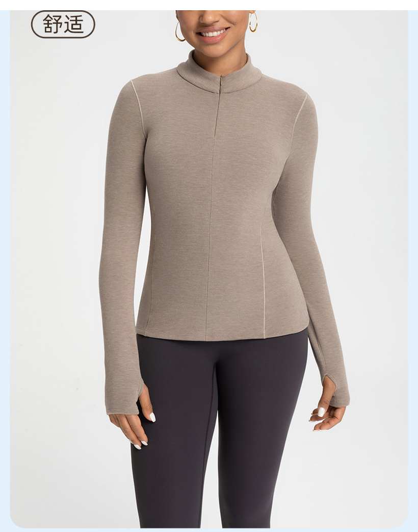 跃牌【倚窗听雨】新款羊毛裸感显瘦加绒保暖打底衫运动健身半拉链长袖上衣CX151