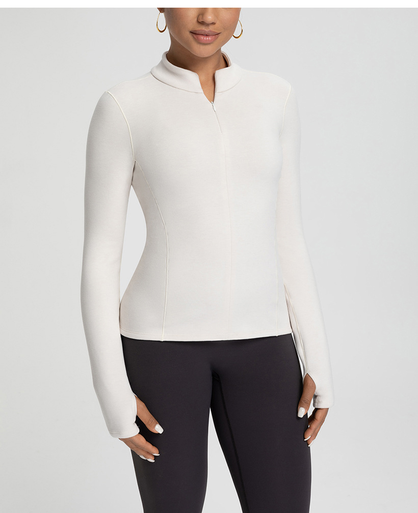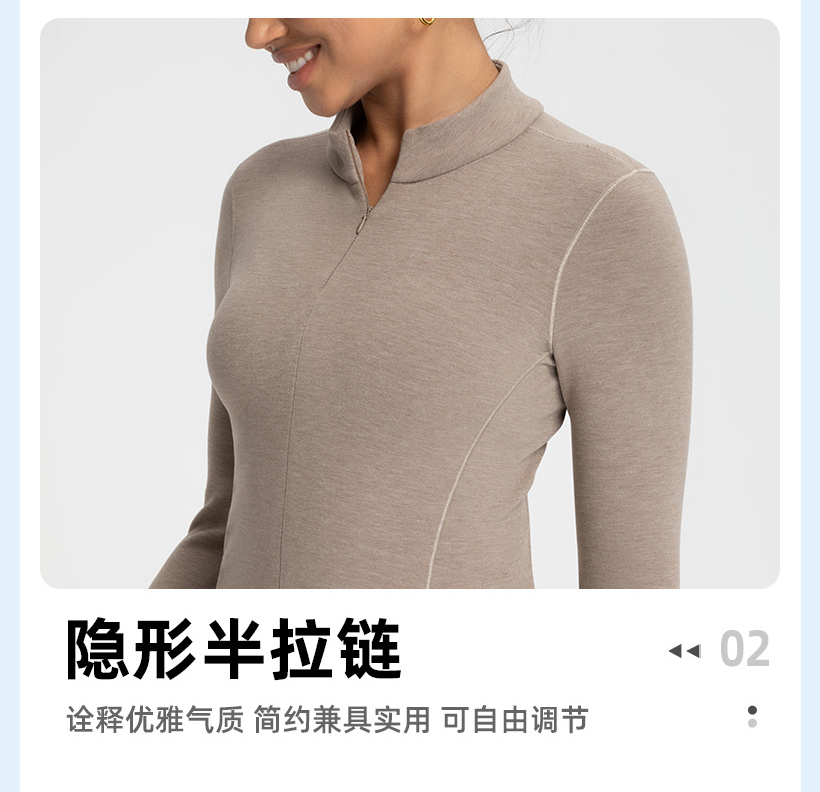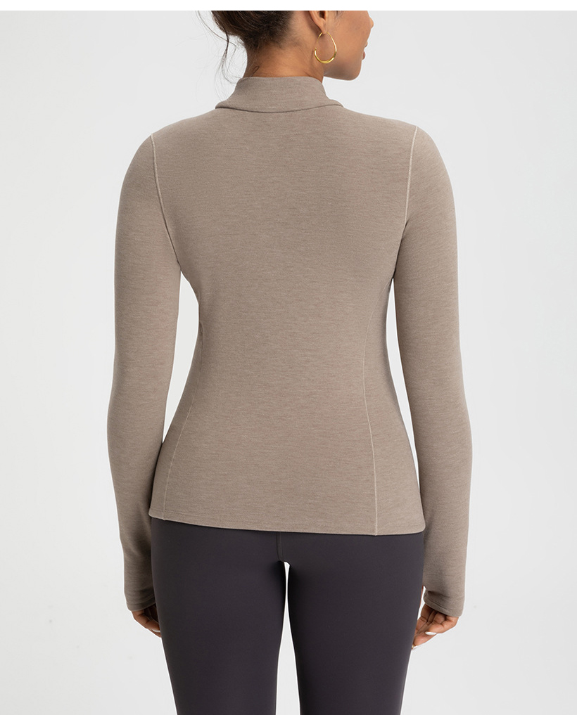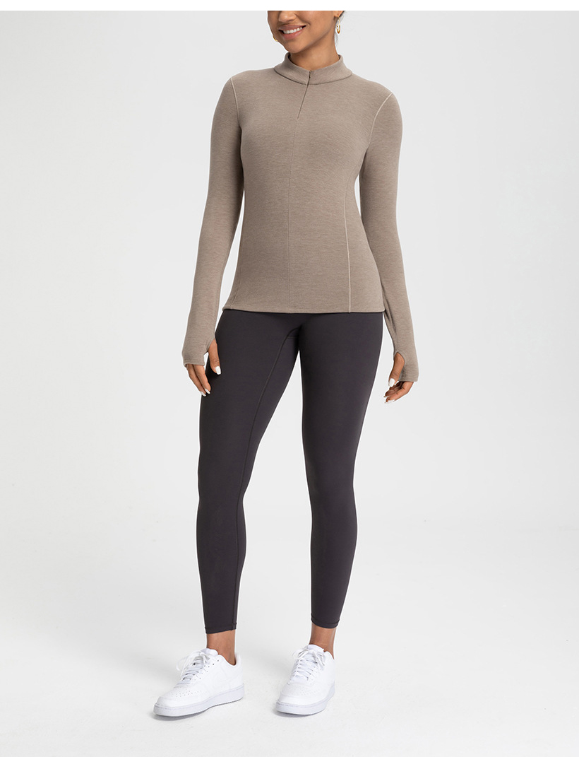 跃牌【倚窗听雨】新款羊毛裸感显瘦加绒保暖打底衫运动健身半拉链长袖上衣CX151