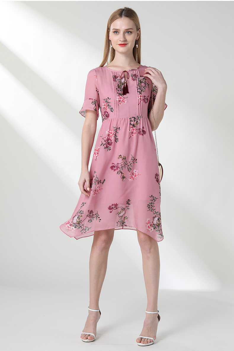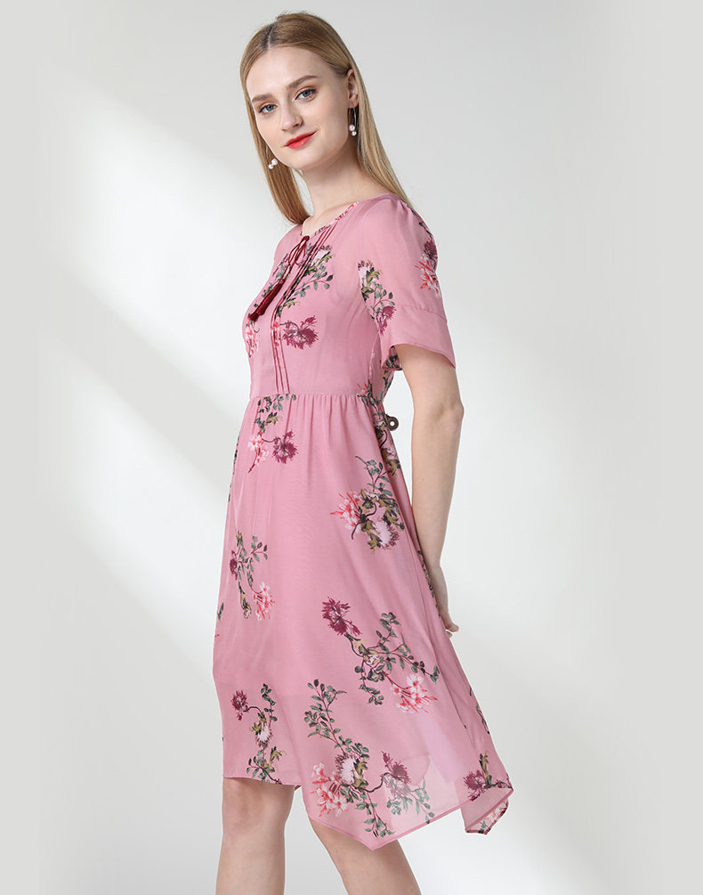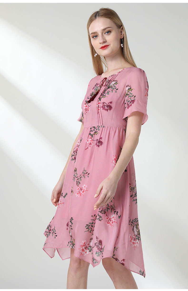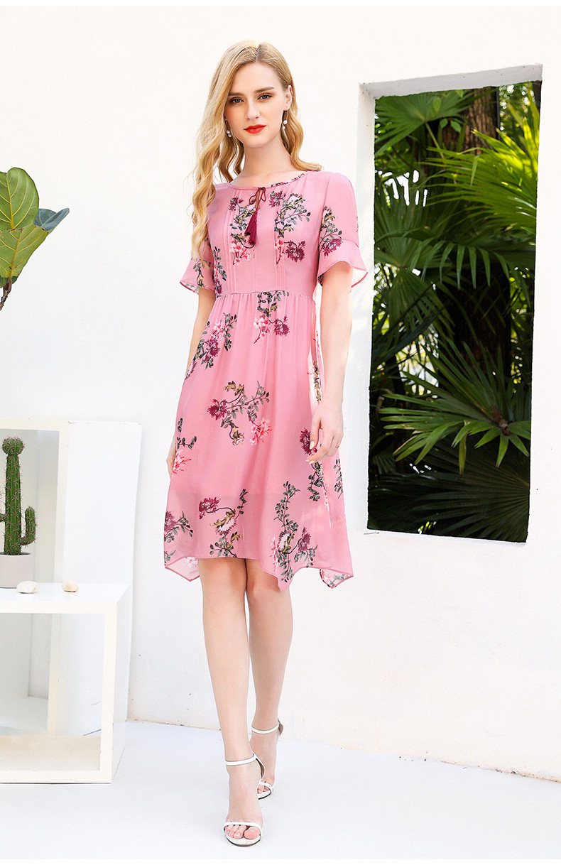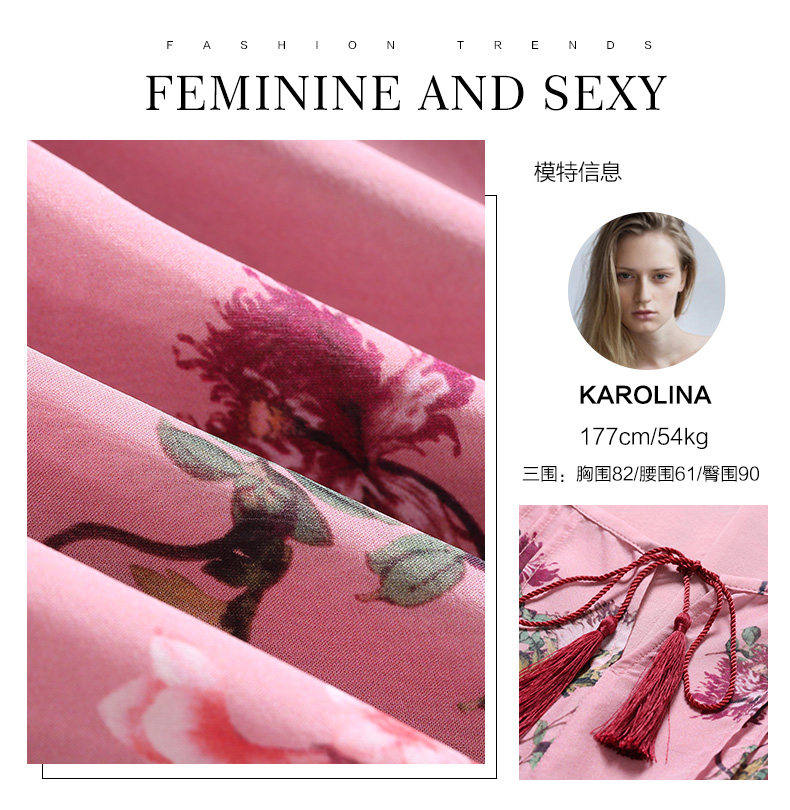 乔万尼夏流行真丝印花高腰气质桑蚕丝连衣裙女中长款韩版EN2E528