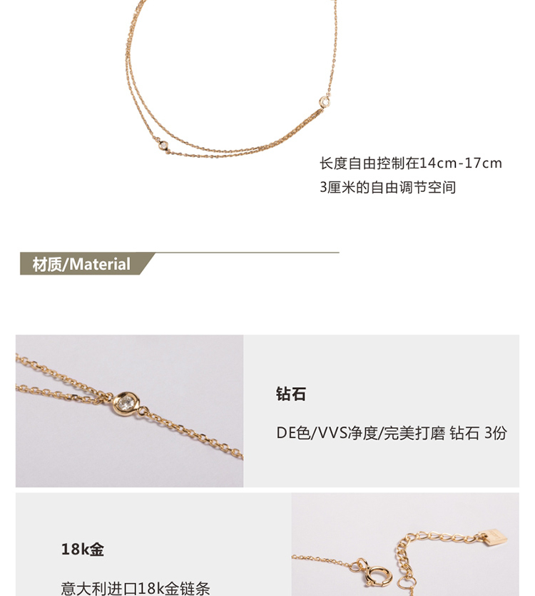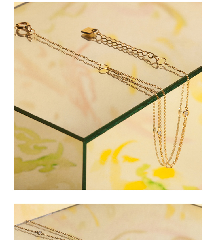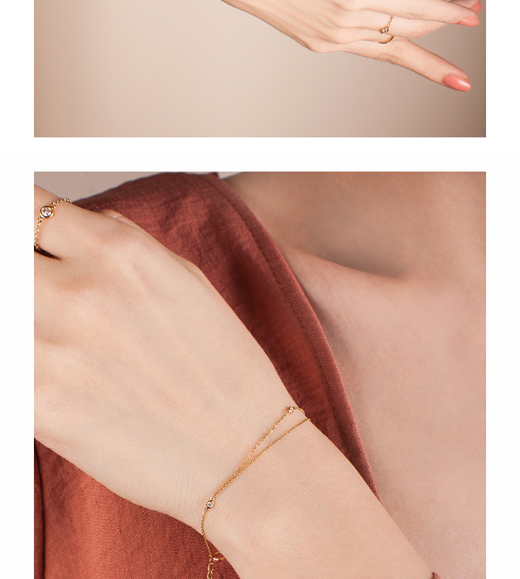 LUCINE 双层钻石手链18k黄金链可调节简约百搭款日式精致
