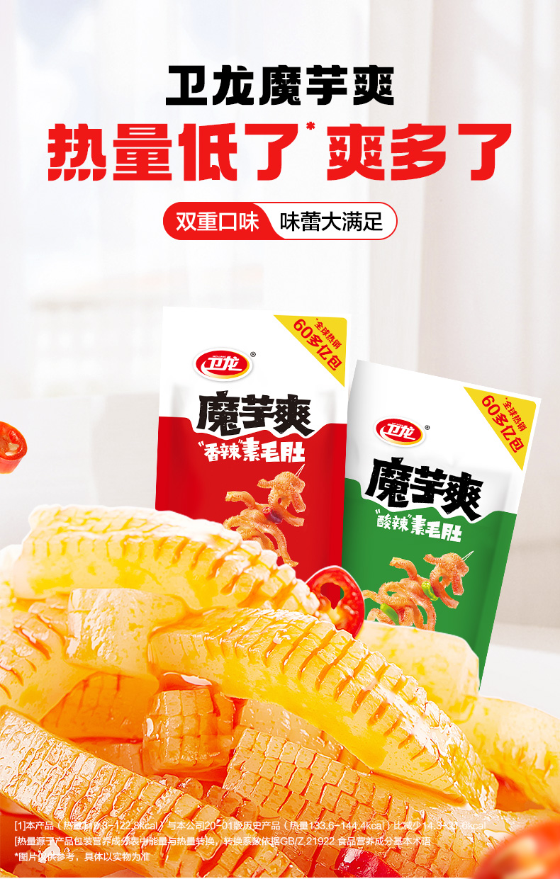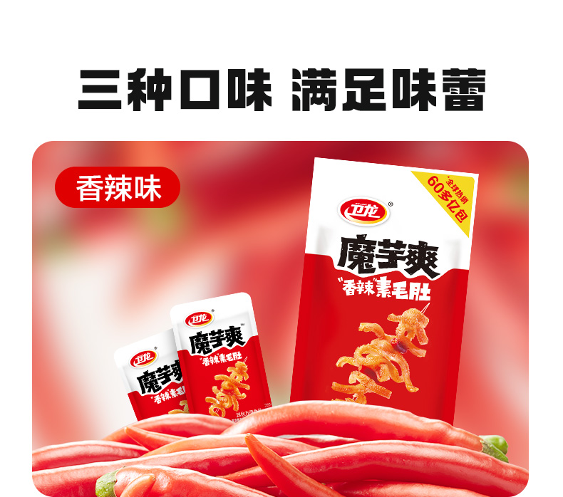 卫龙酸辣麻辣香辣三口味魔芋爽多规格混合口味素毛肚辣味解馋小零食