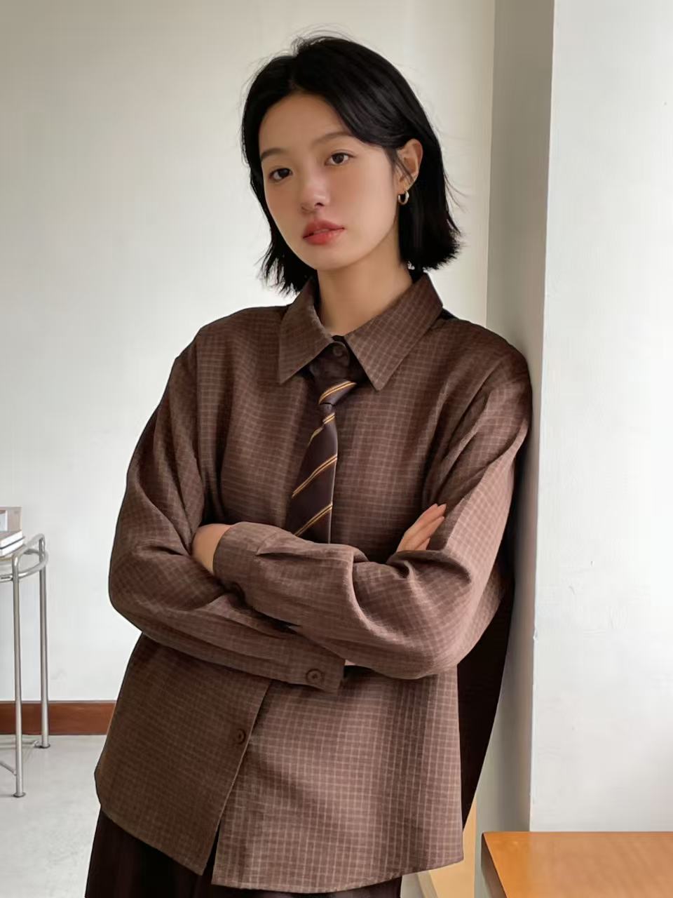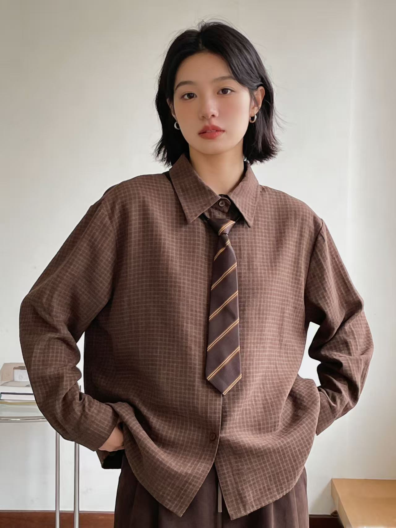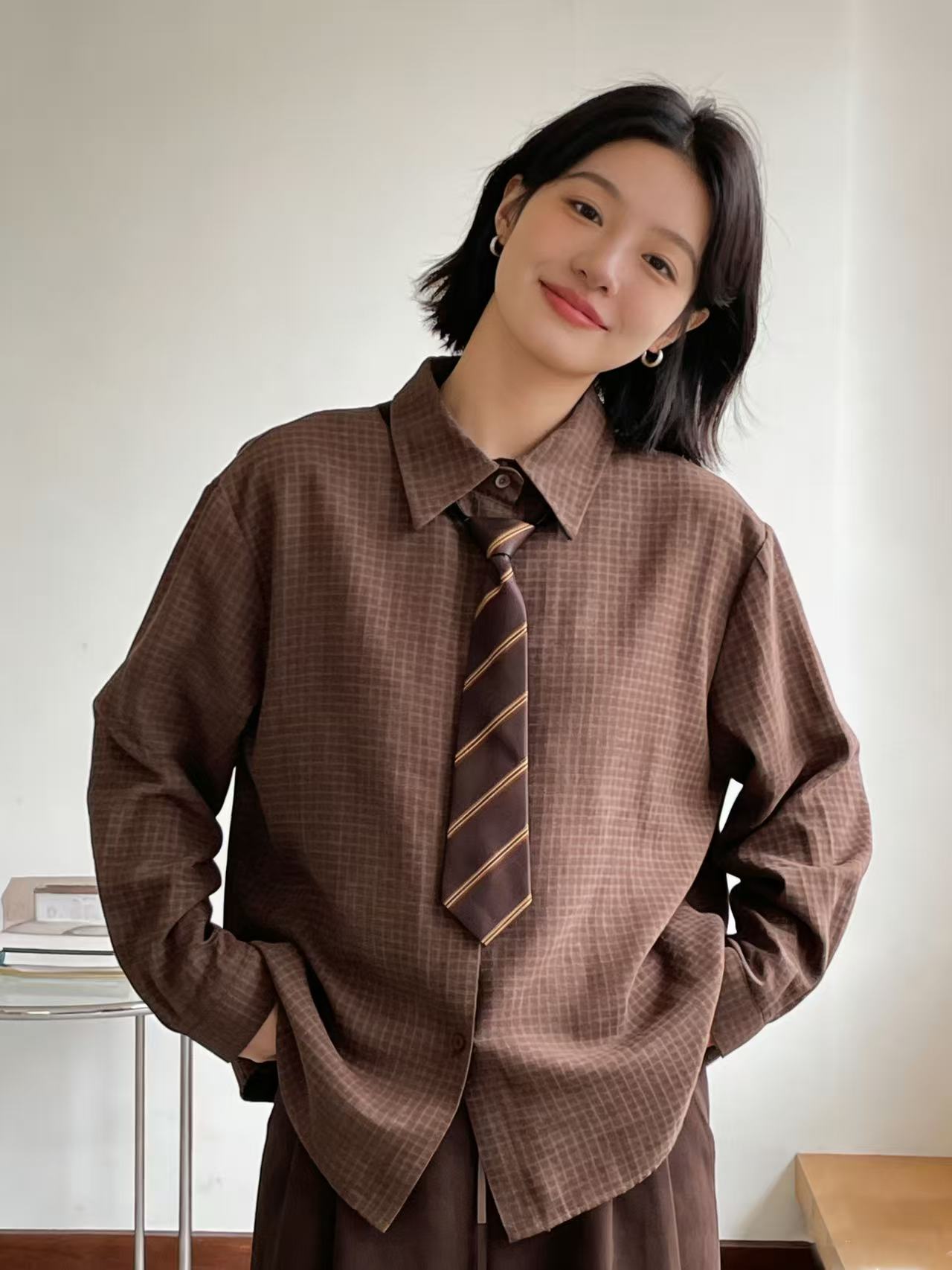418良粉节|2026 活动爆款 品牌促【自营】衣周期 送领带 6698卡色小格子衬衫上衣-喜出