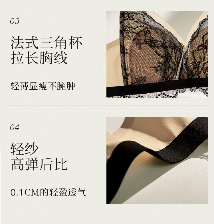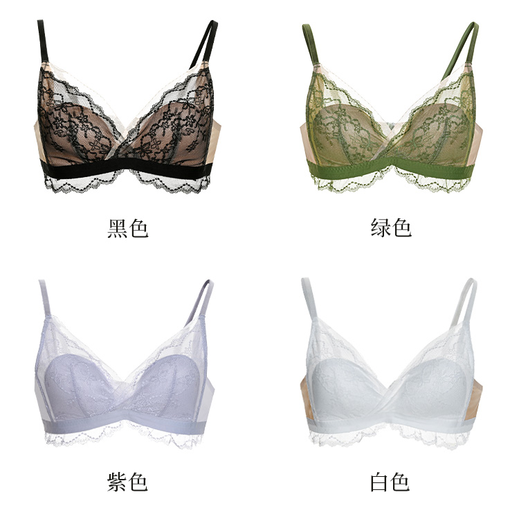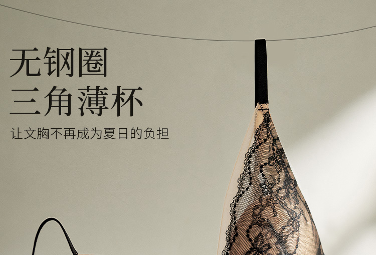 夏娃的诱惑无钢圈薄款内衣女法式蕾丝三角杯透气上托文胸罩
