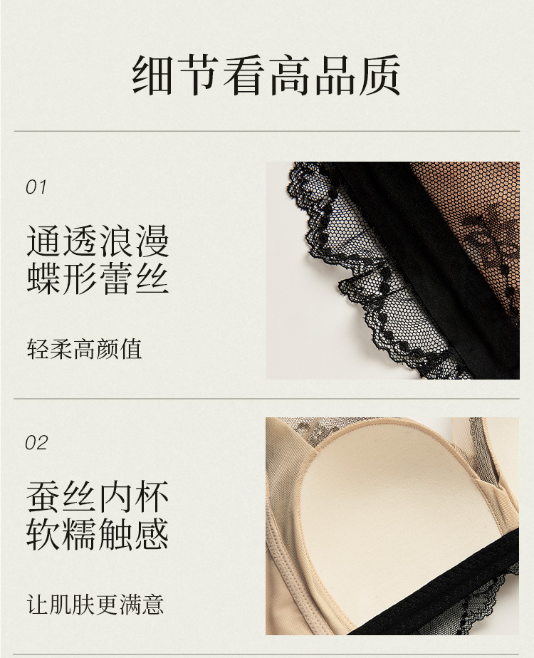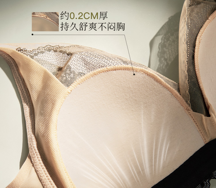 夏娃的诱惑浥轻尘组内衣女夏季薄款软钢圈大胸显小蕾丝性感文胸上托防下垂