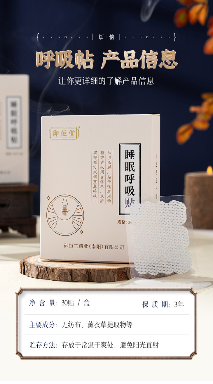 【买2送1,买3送2】御恒堂睡眠呼吸贴矫正口呼吸减少打鼾薰衣草精华调节睡眠90贴/盒