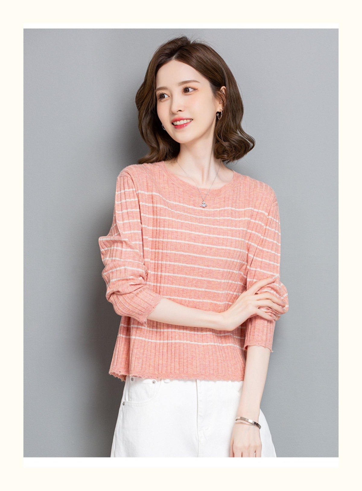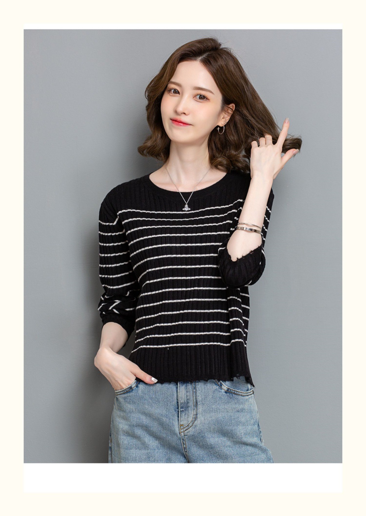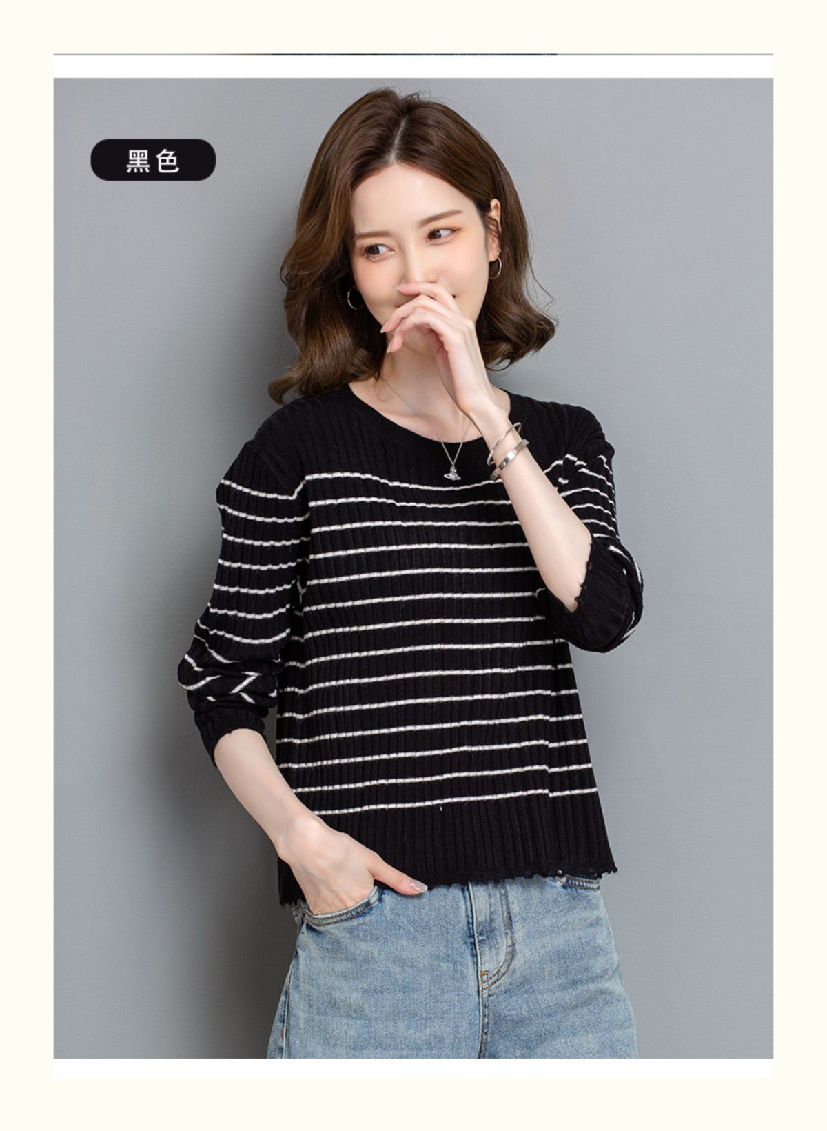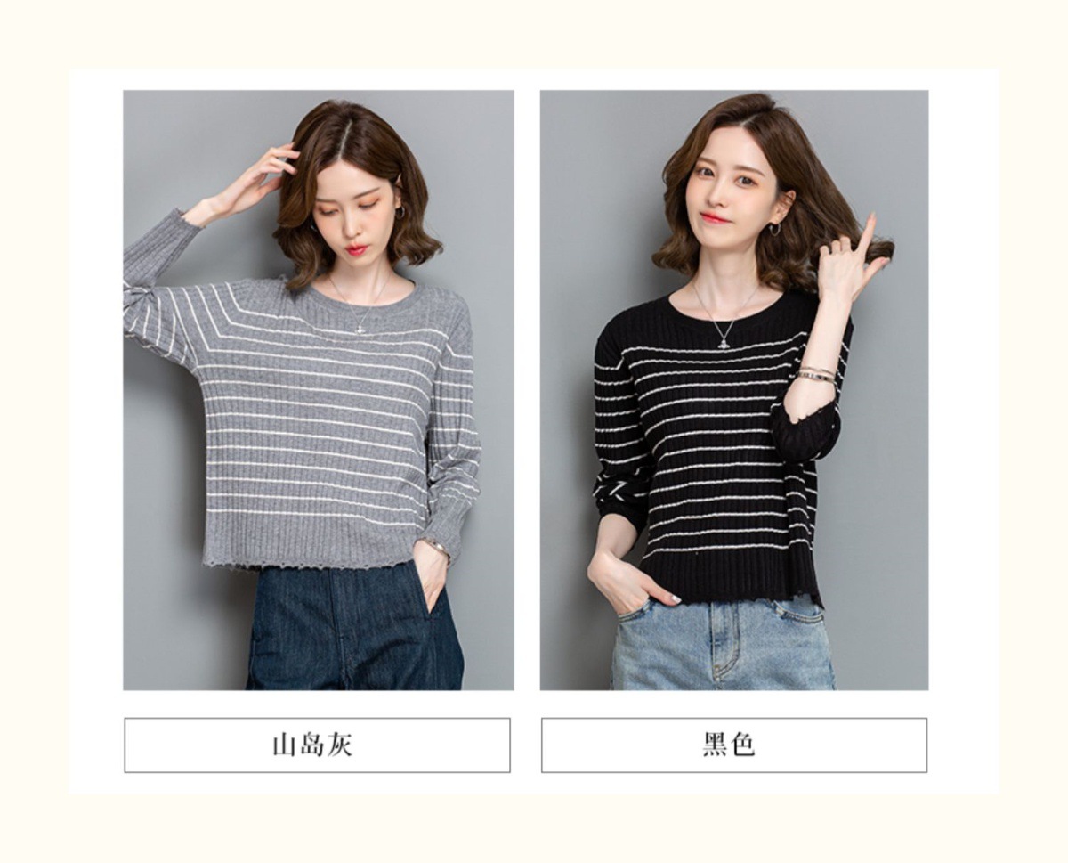 CC-tbrk-c110条纹针织衫短款上衣女秋季2024新款圆领打底衫薄款内搭毛衣女秋冬
