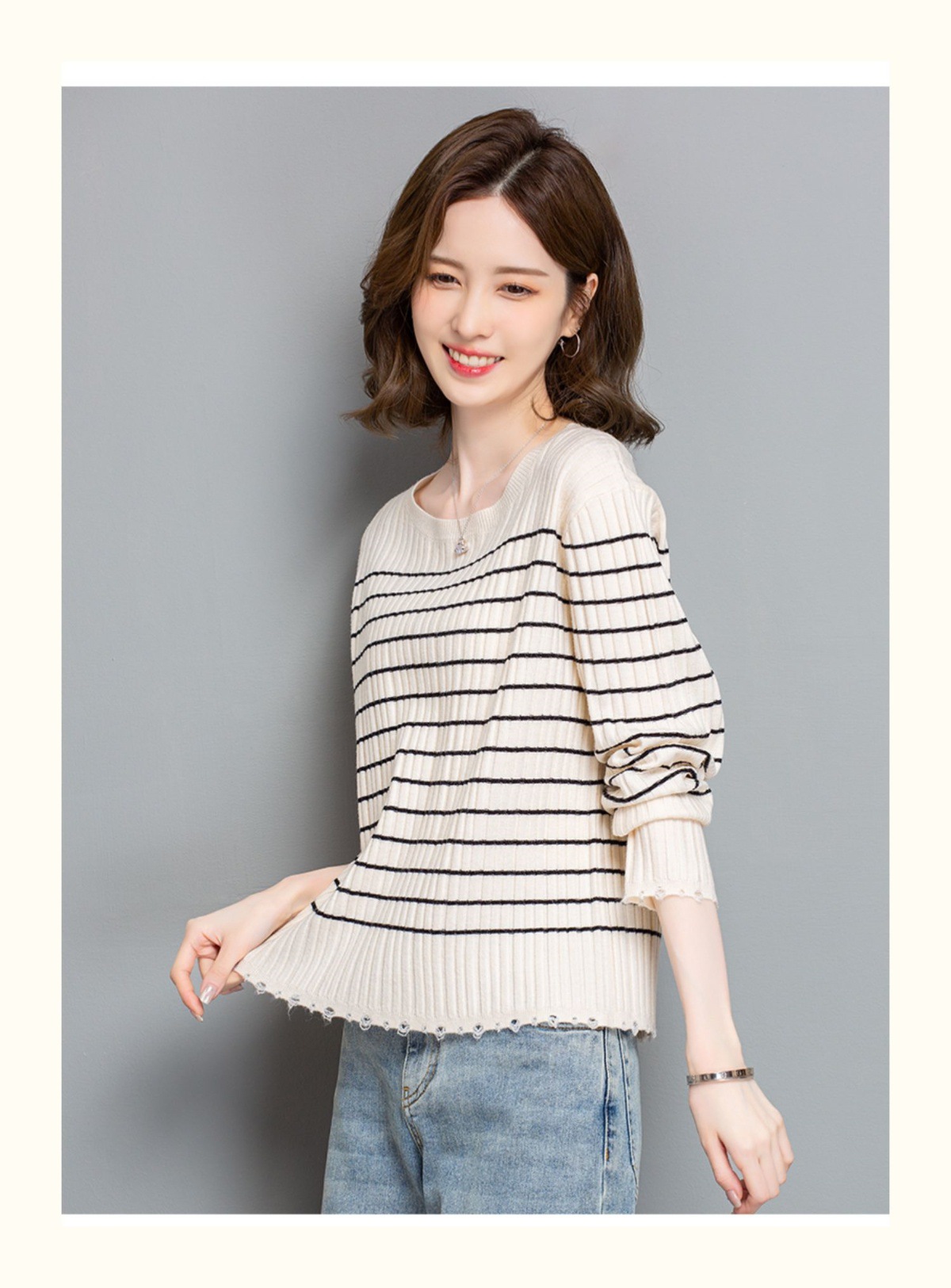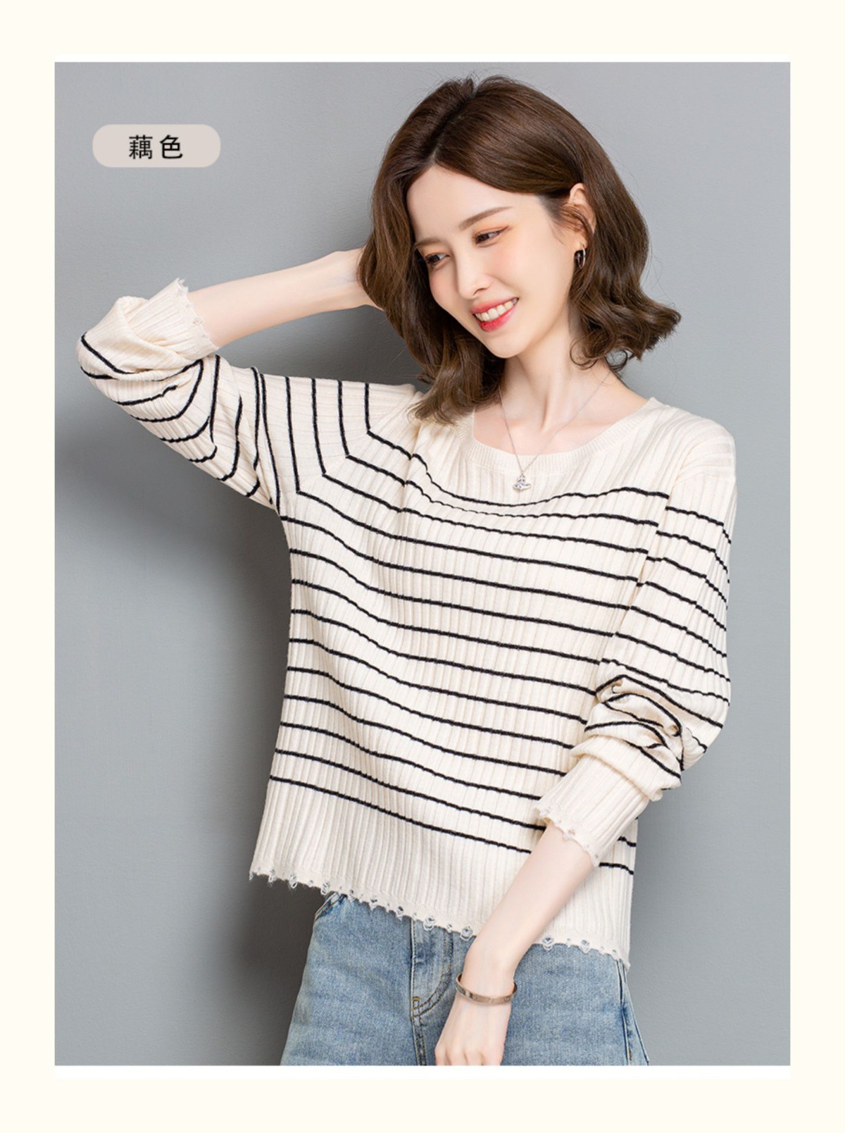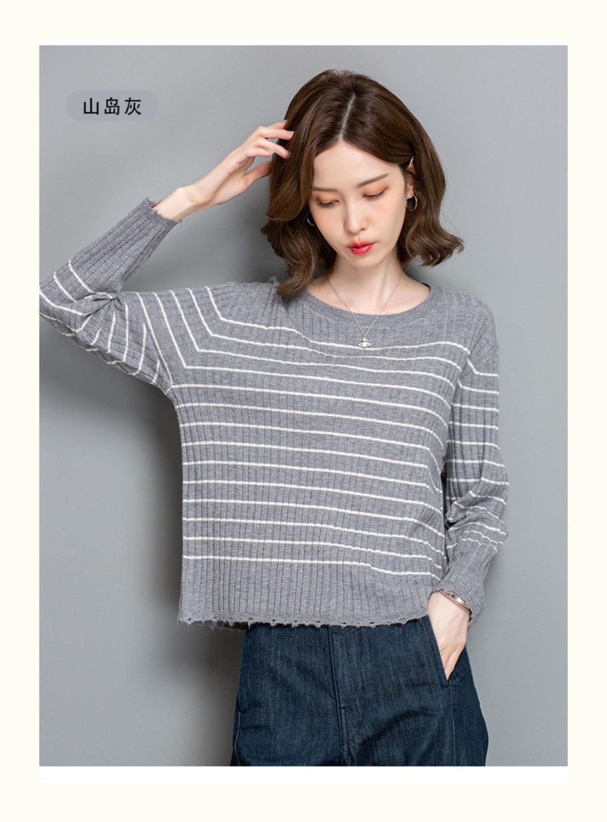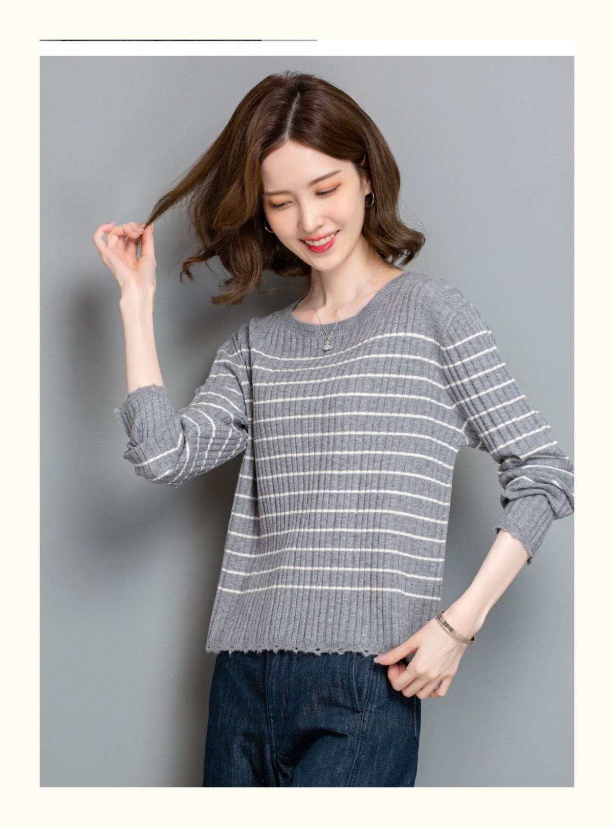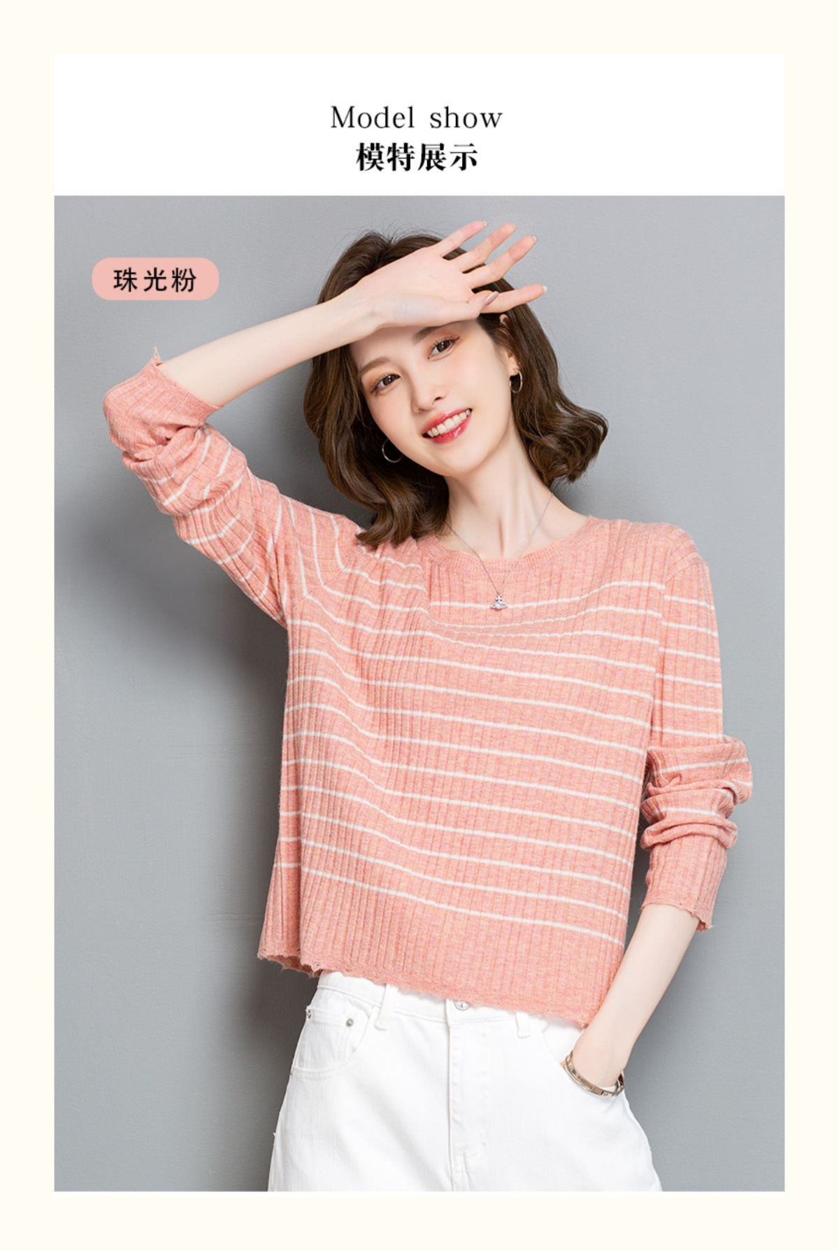 CC-tbrk-c110条纹针织衫短款上衣女秋季2024新款圆领打底衫薄款内搭毛衣女秋冬