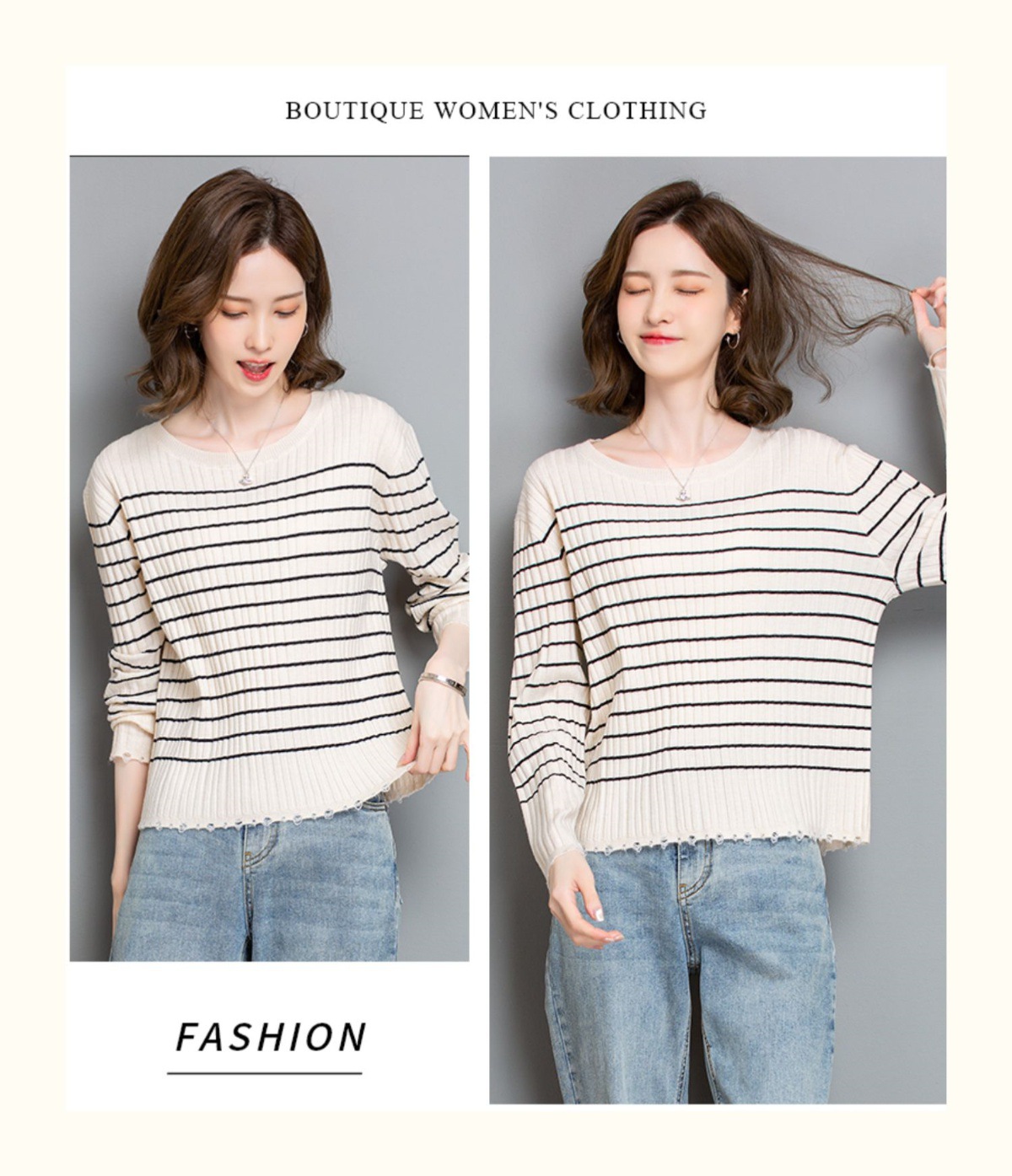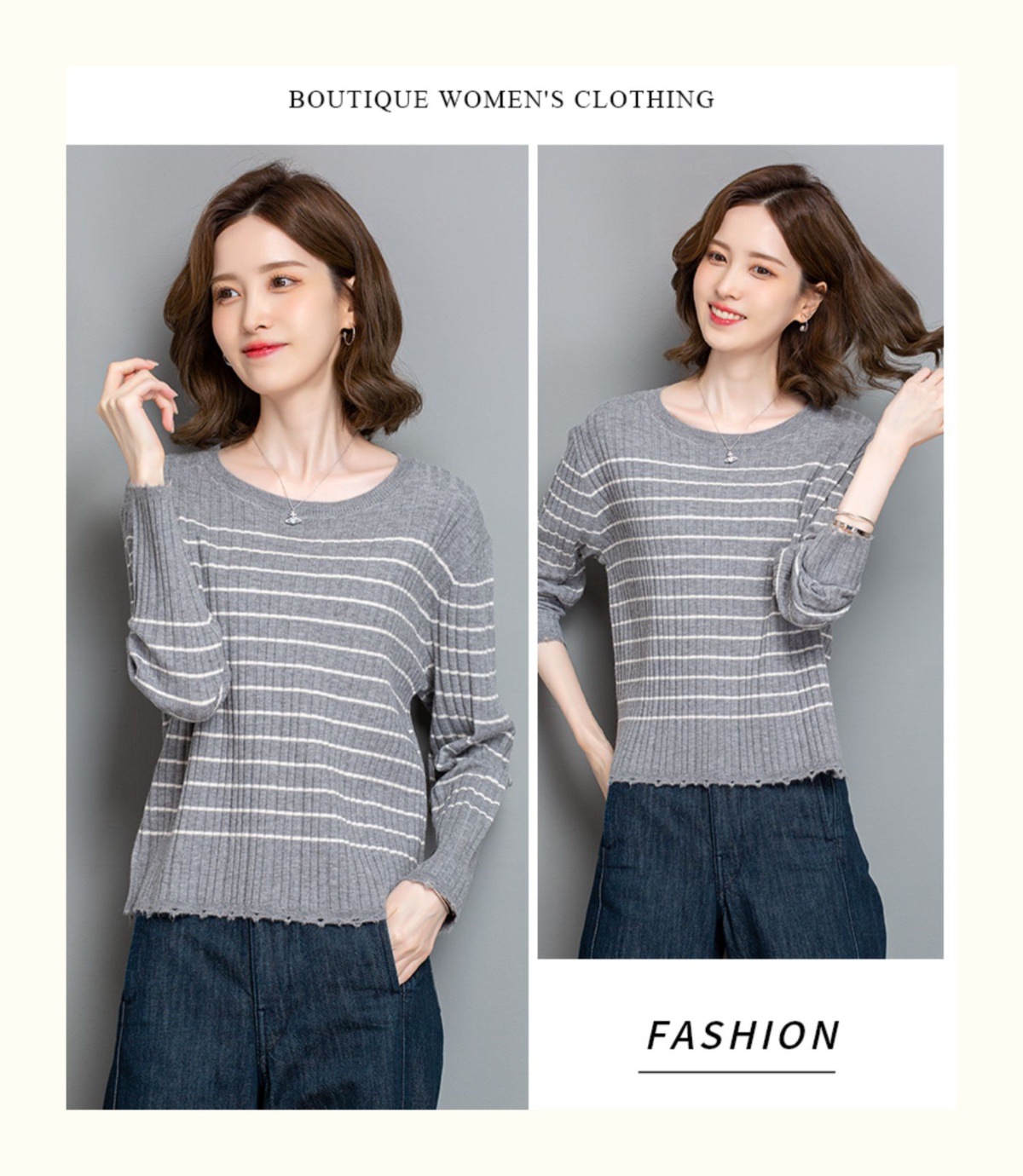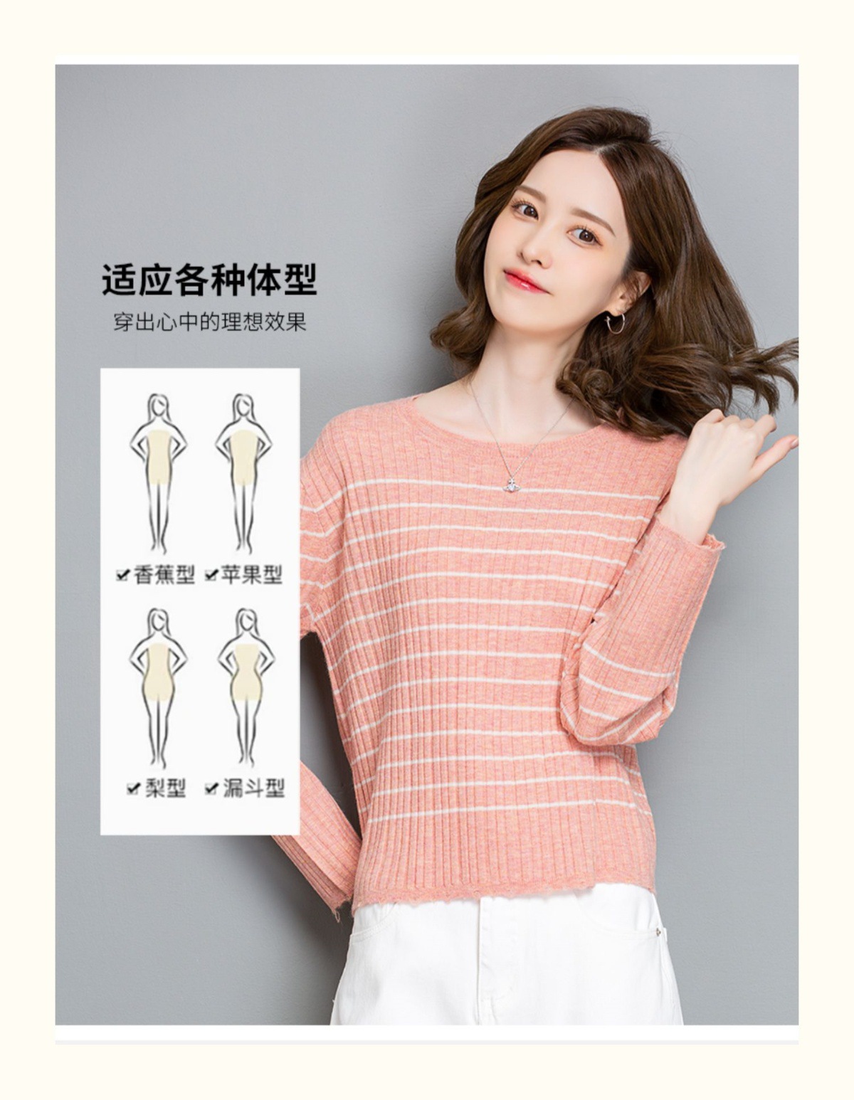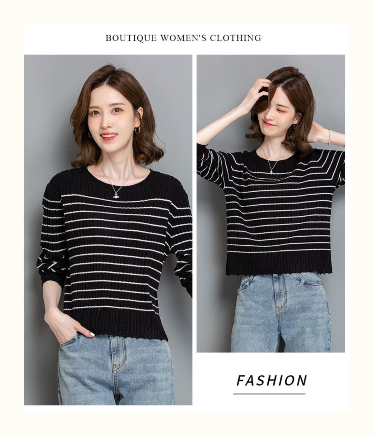 CC-tbrk-c110条纹针织衫短款上衣女秋季2024新款圆领打底衫薄款内搭毛衣女秋冬