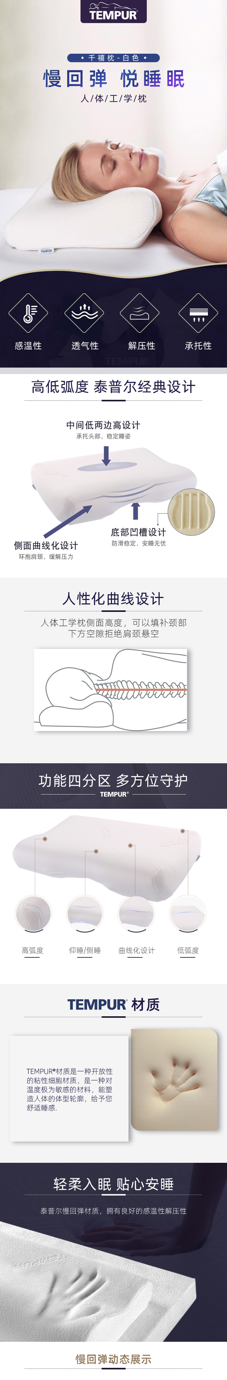 TEMPUR泰普尔 欧洲进口慢回弹记忆棉 枕头护颈椎 白色千禧感温枕I