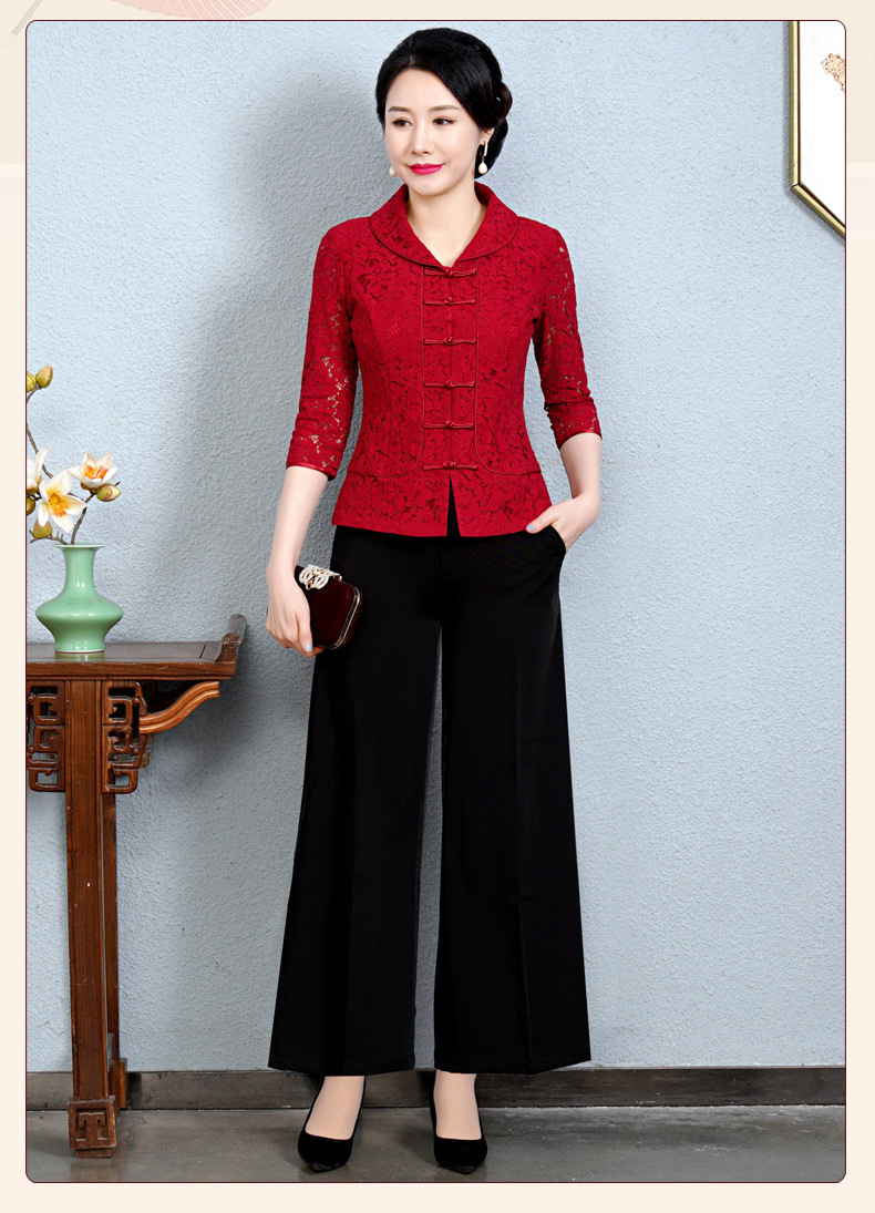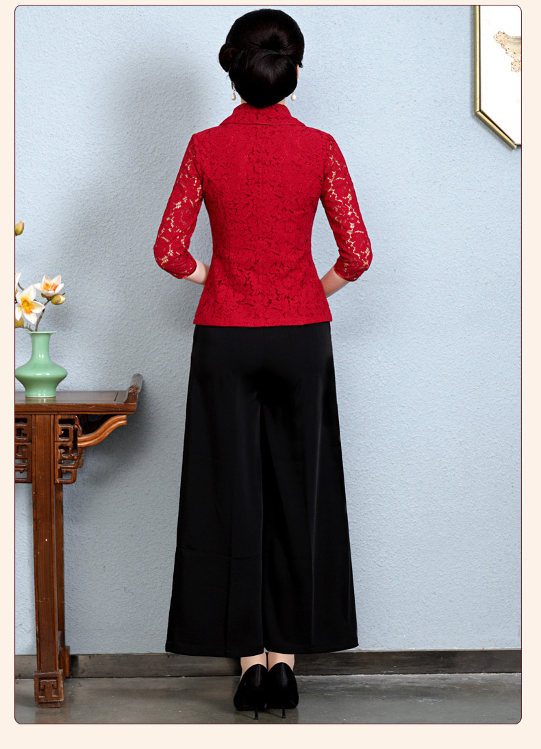 上海旗袍厂娃娃领旗袍女上衣新款2024年春夏中年妈妈装婚宴礼服套装裤两件套