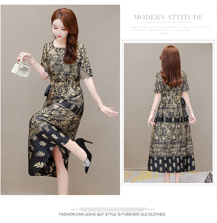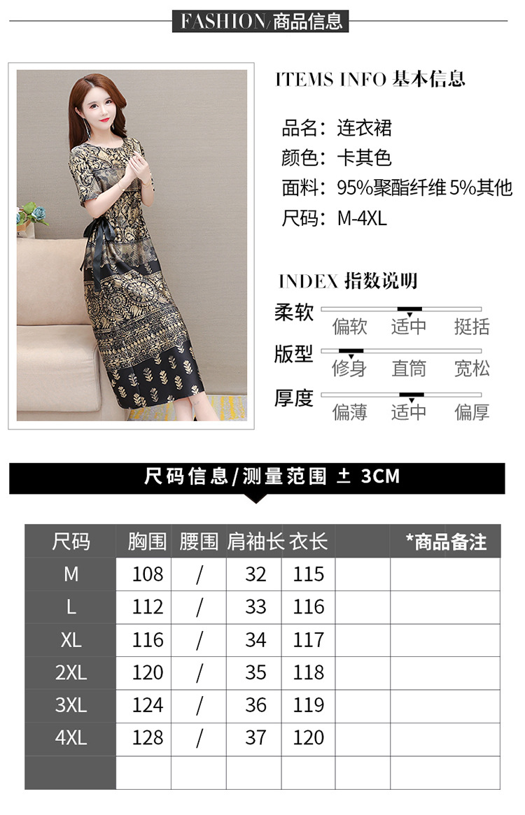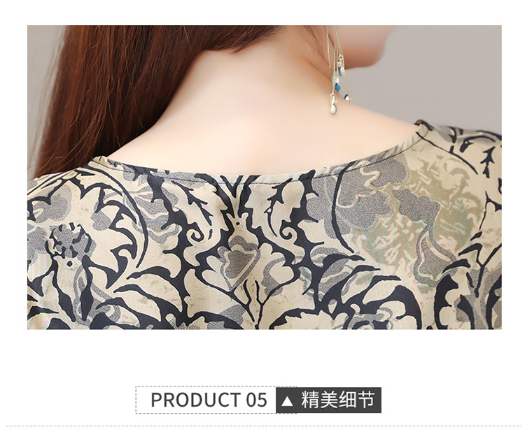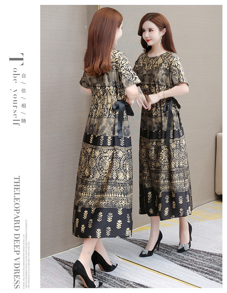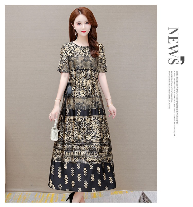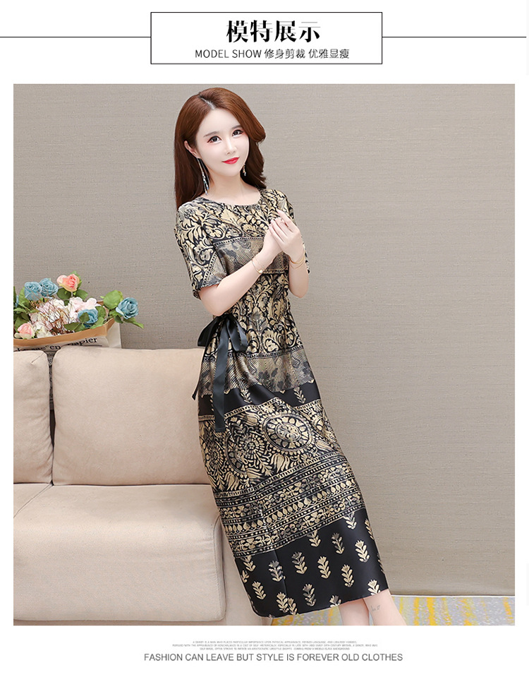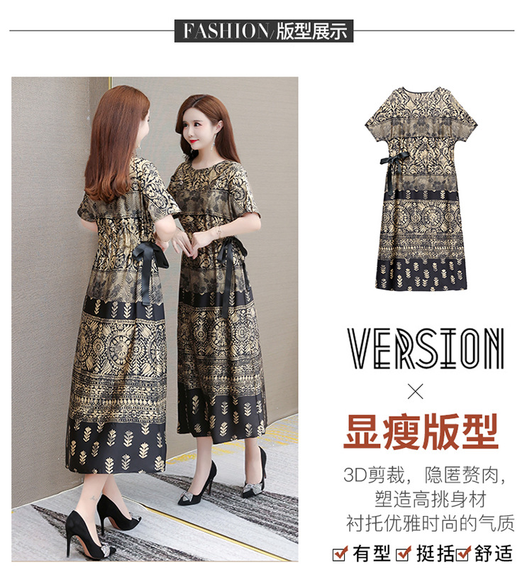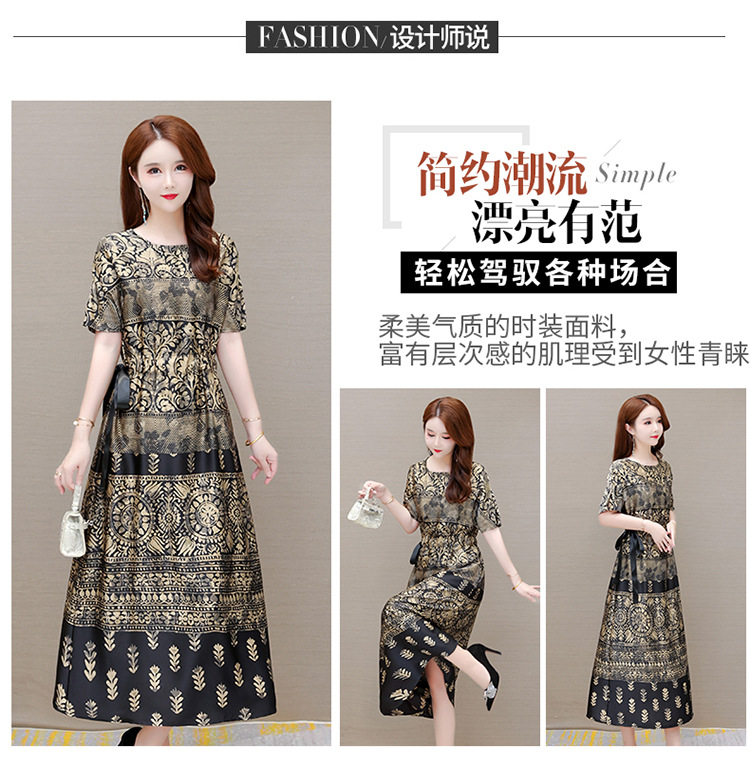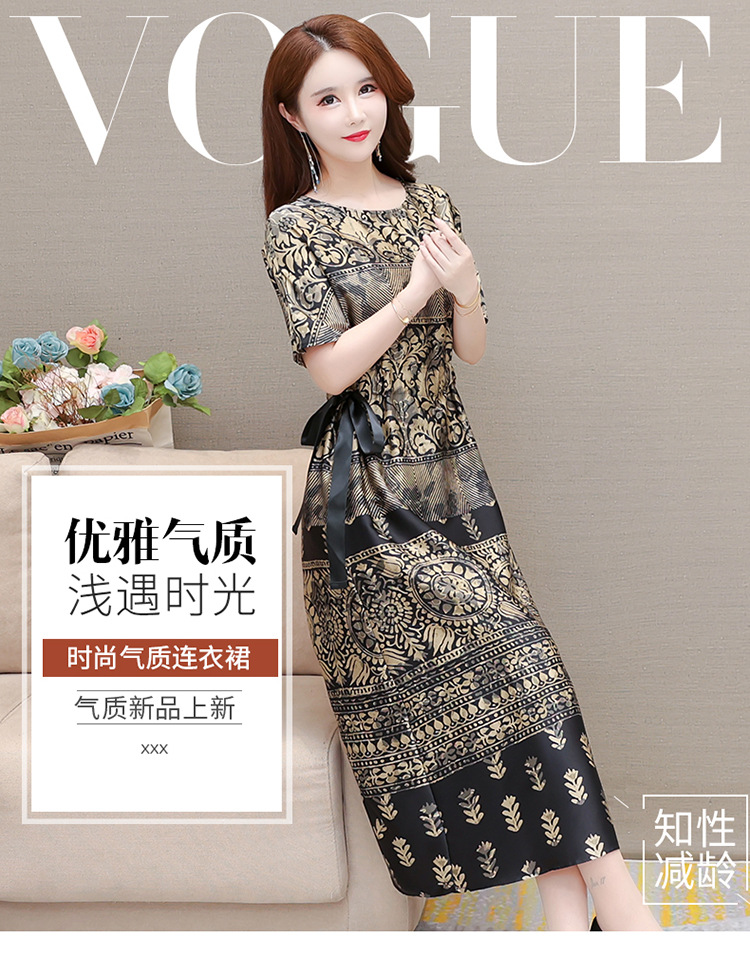 YWE-XCH255夏季新款修身气质中长款贵夫人短袖印花连衣裙女