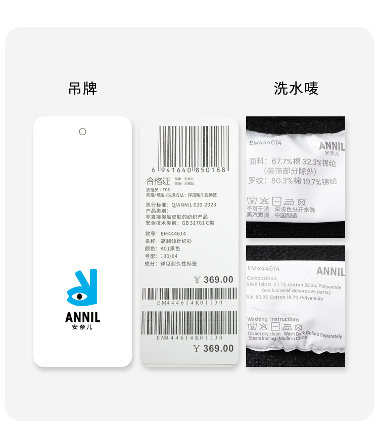 男女童高翻领针织衫冬季新款安奈儿童装EM444614