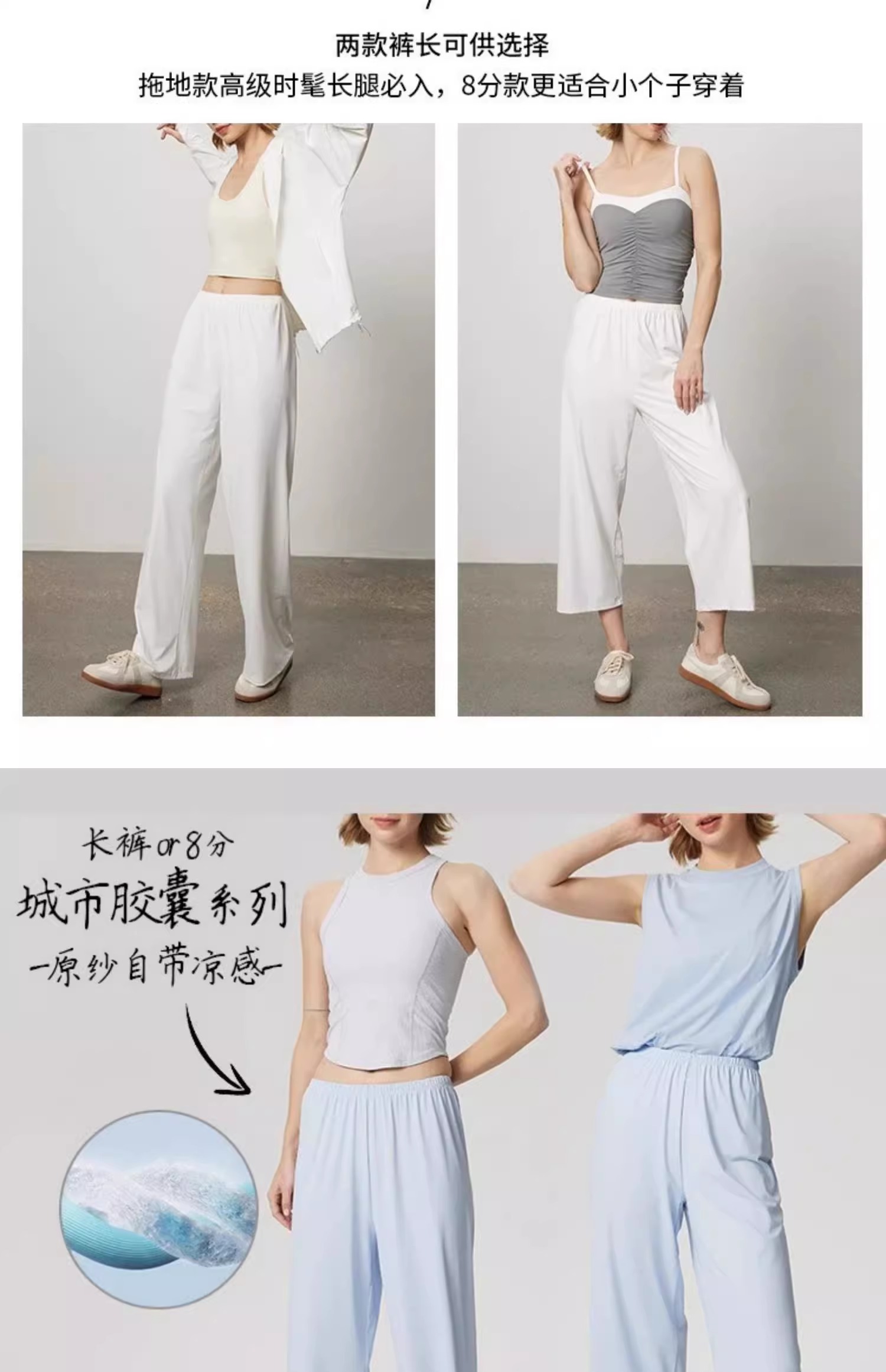 跃牌【周游世界系列】凉感冰丝防晒裤女宽松跑步长裤垂感透气健身户外运动裤新款夏PT2368