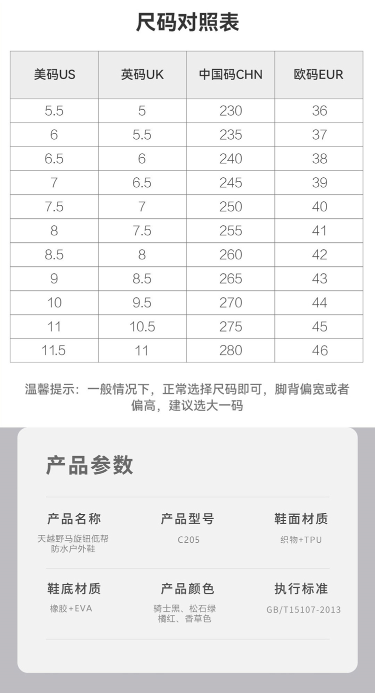 天越野马旋钮低帮防水户外鞋C205专业户外大底防水防滑抓地轻量减震回弹