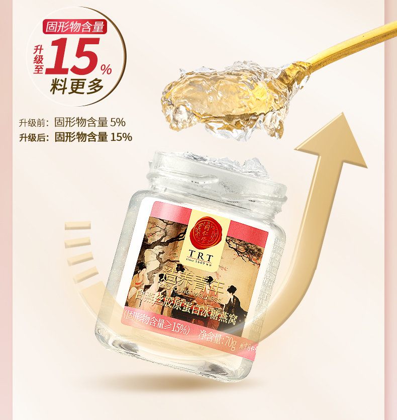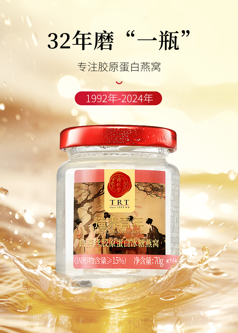 【正宗同仁堂品牌】北京同仁堂 白燕丝胶原蛋白冰糖即食燕窝420克家庭装(70克*6瓶) 0脂低卡 胶原双补SY