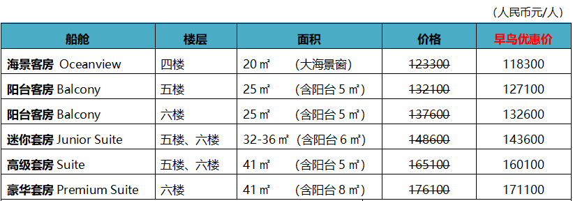 ◇膳食:邮轮早餐,午晚餐飞机上自理