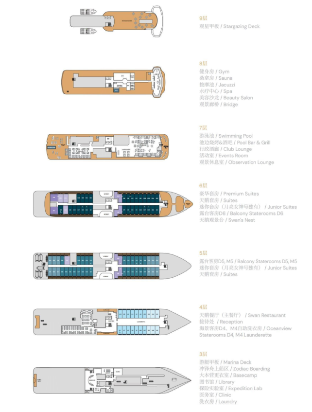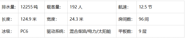 邮轮概况:排水量12255吨,载客量192人,首航2023年,五星奢华