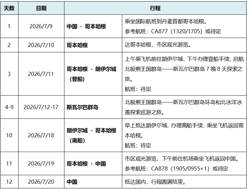 简明行程:中国- 丹麦、斯瓦尔巴群岛- 中国