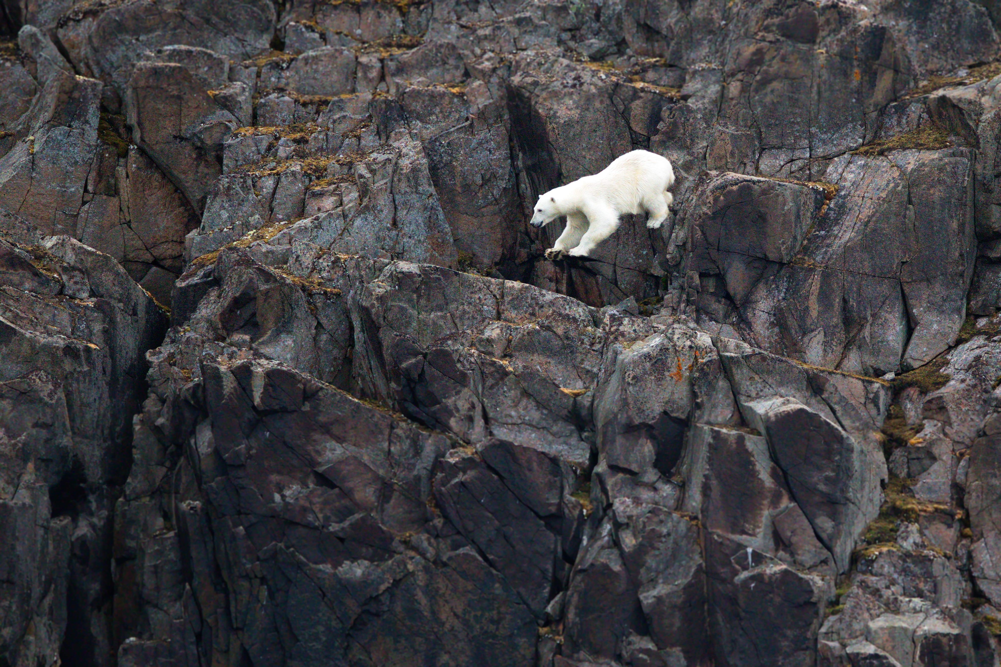 东北斯匹茨卑尔根自然保护区——这天是真正探险的一日游,我们将前往斯瓦尔巴群岛中最偏远的地区。游轮将向东北地岛的七岛群岛(SJUOYANE)行驶,这里是一处密集的群岛。七岛群岛是欧洲大陆上最接近地理北极点的岛屿,只有北极熊和海鸟在此居住。七岛群岛纬度最高的菲利普岛位于大约北纬80 度,即使在北极的夏季,冰雪也几乎不会完全消失,北极熊和海象会在冰面下觅食,象牙海鸥 (Ivory Gulls) 经常在此徘徊,等待它们吃剩的食物。艾克山(ALKEFJELLET)位于斯匹次卑尔根岛东北方,是一座壮观的鸟崖,悬崖上约有10万对的厚嘴海鸠栖息,它们在光秃陡峭的玄武岩山脊上产卵孵育,但不筑巢;北极狐和北极熊经常在此出没。