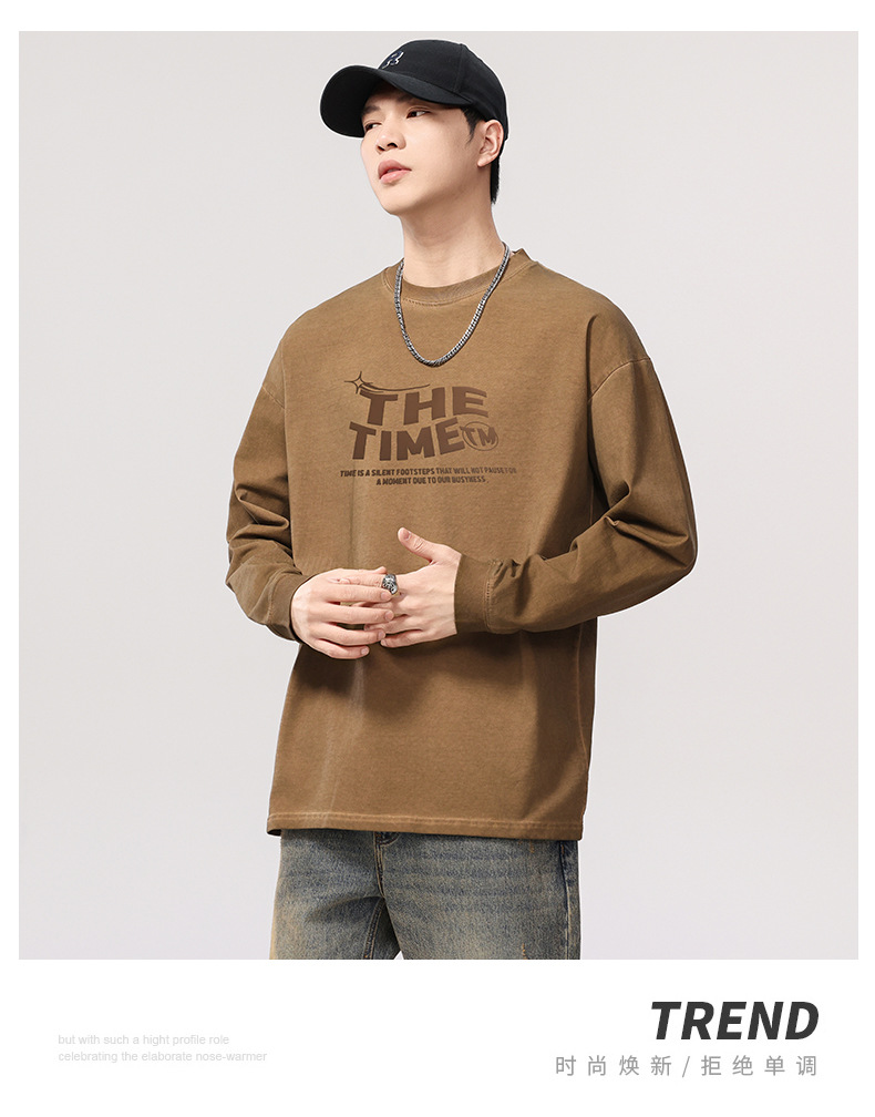 【DQ】大依优型大码男装280G美式复古长袖T恤男宽松炒色做旧上衣春季新品