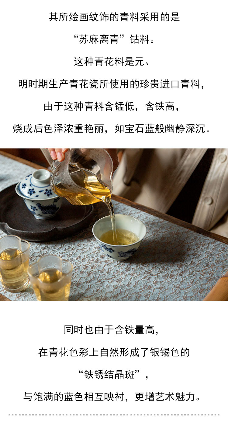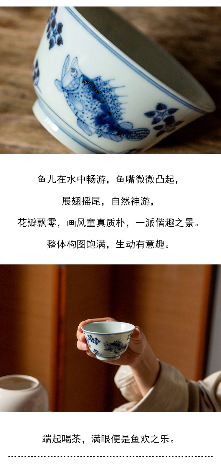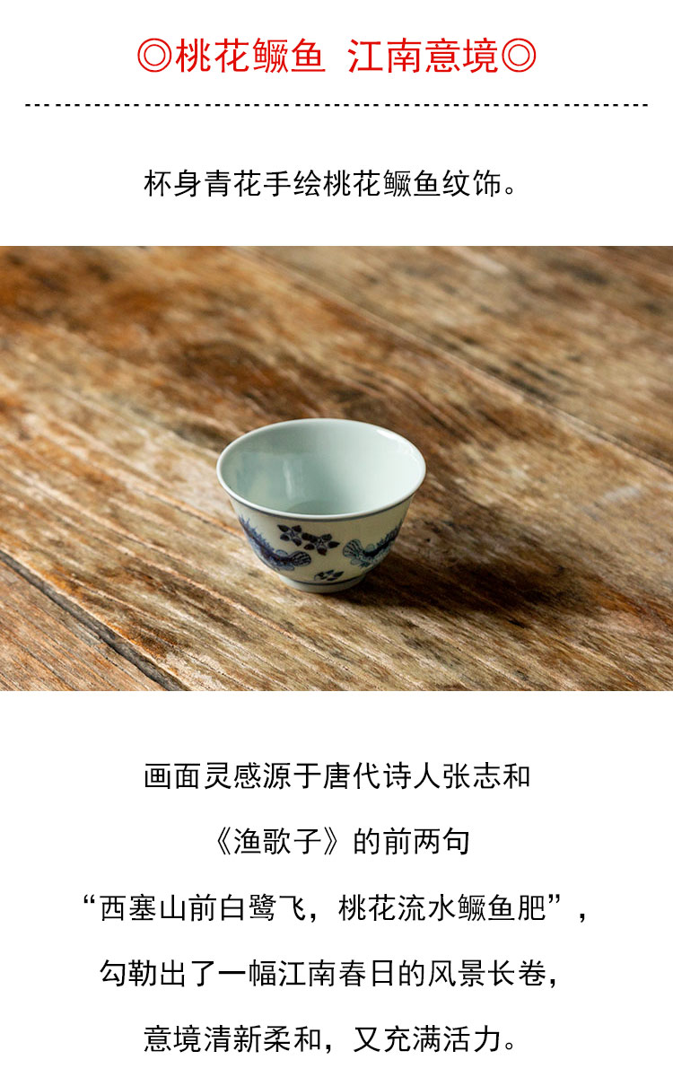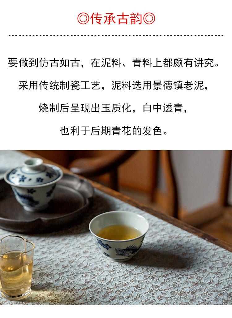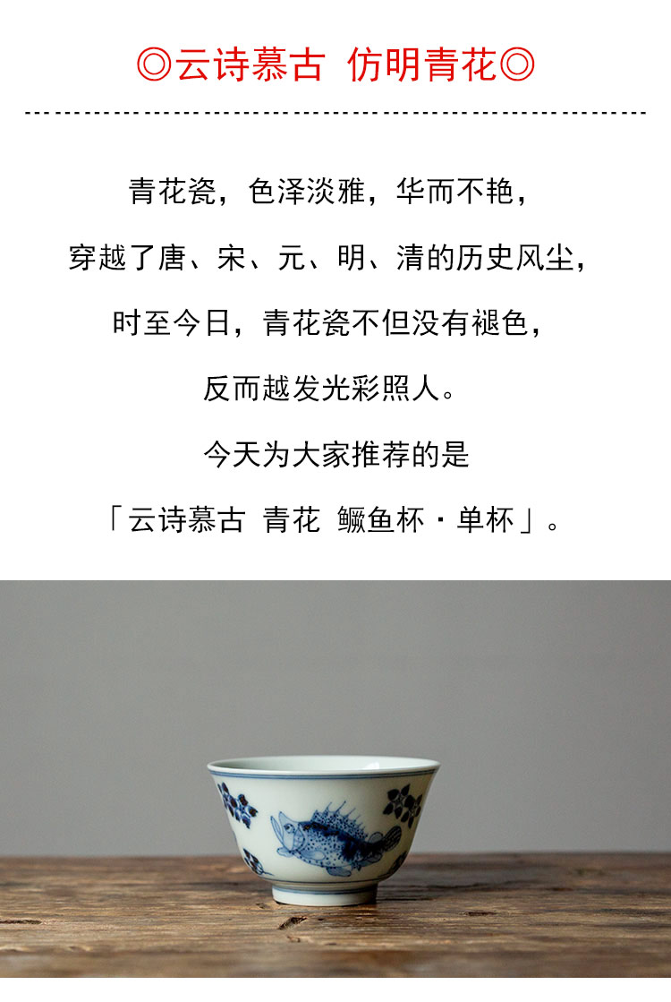 茶香记 景德镇云诗慕古青花鳜鱼杯90ml手绘陶瓷茶杯主人杯古朴