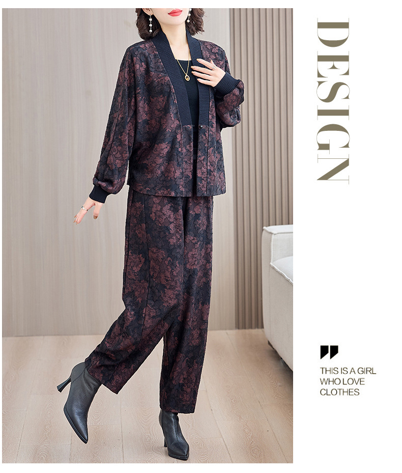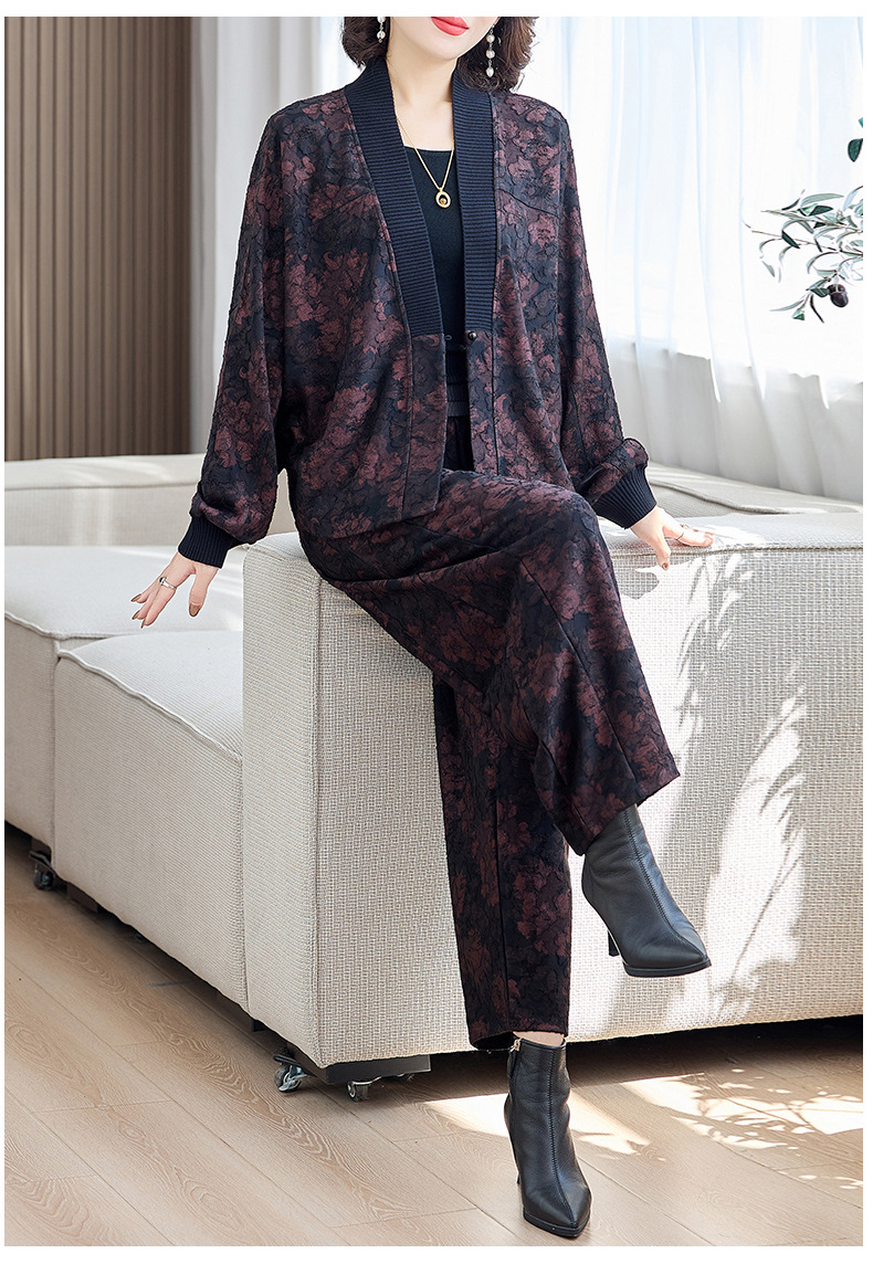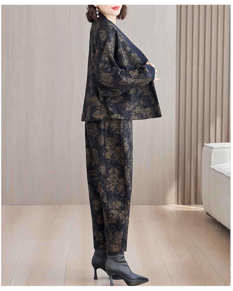 AHM myx9081洋气提花新中式外套两件套花苞阔腿裤套装
