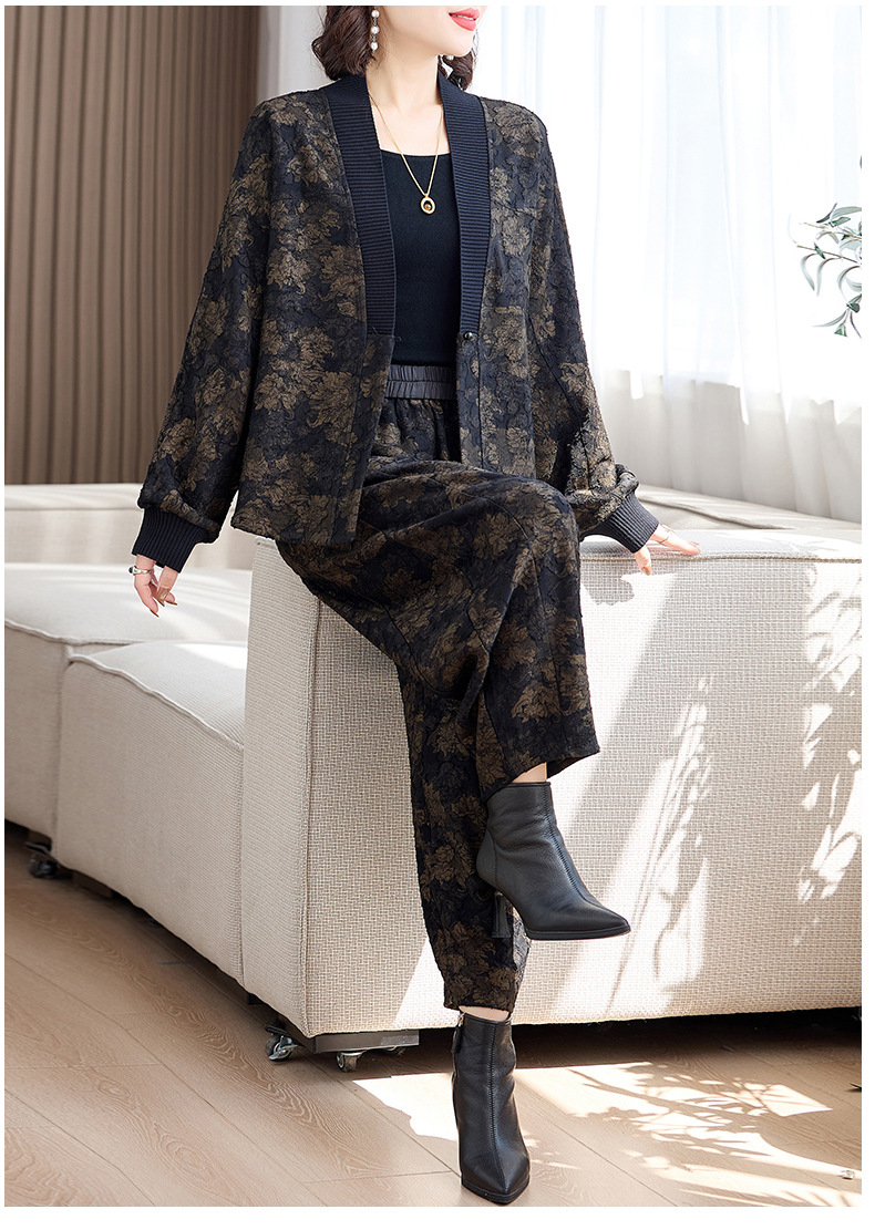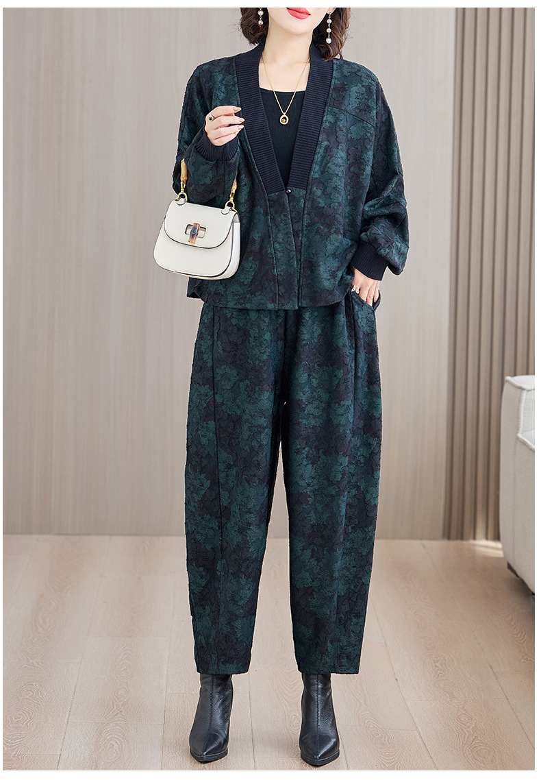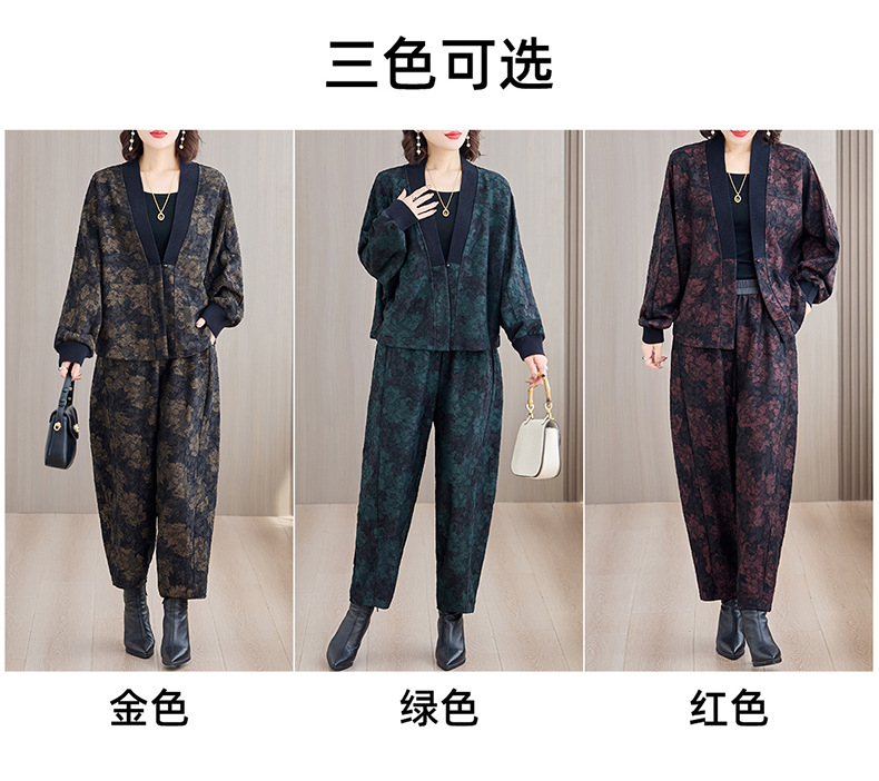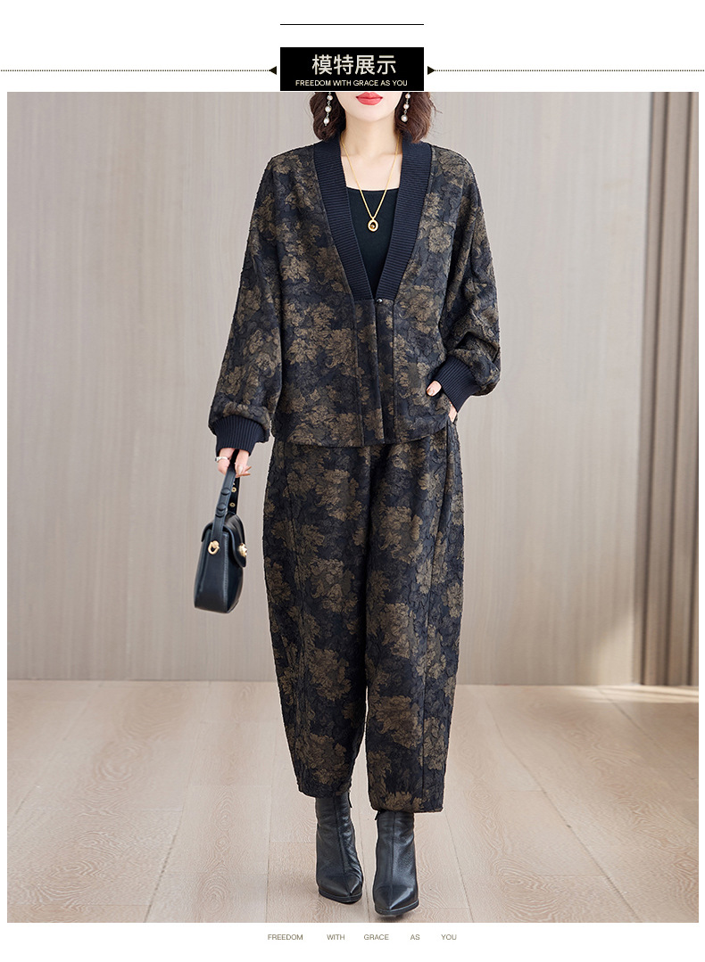 AHM myx9081洋气提花新中式外套两件套花苞阔腿裤套装 商品图4