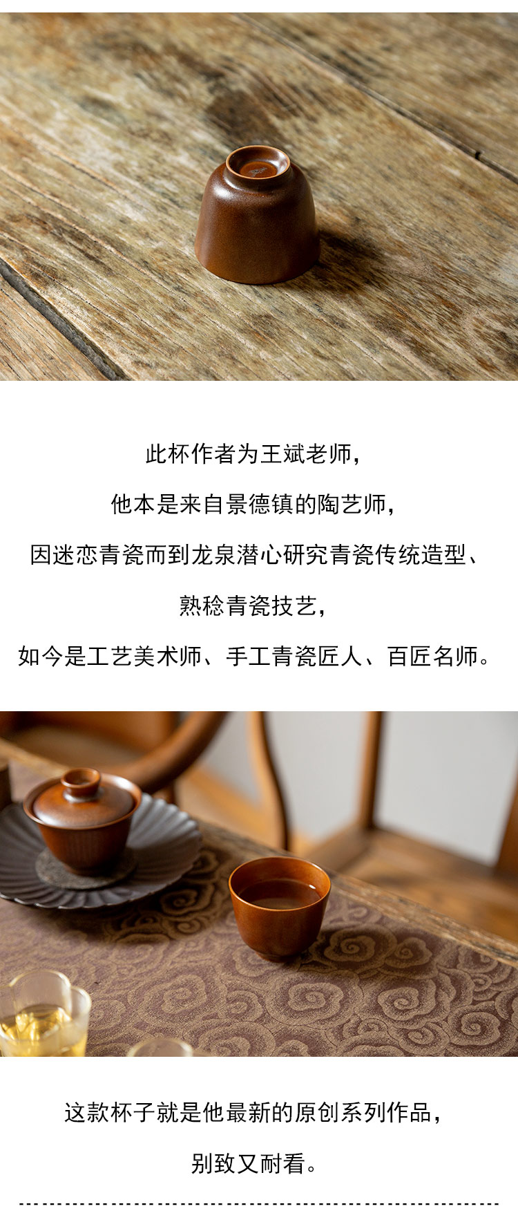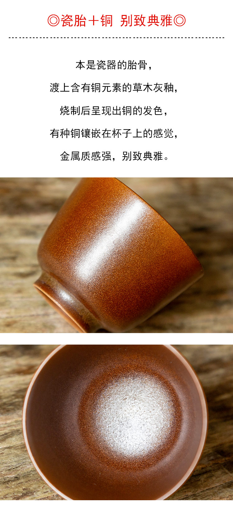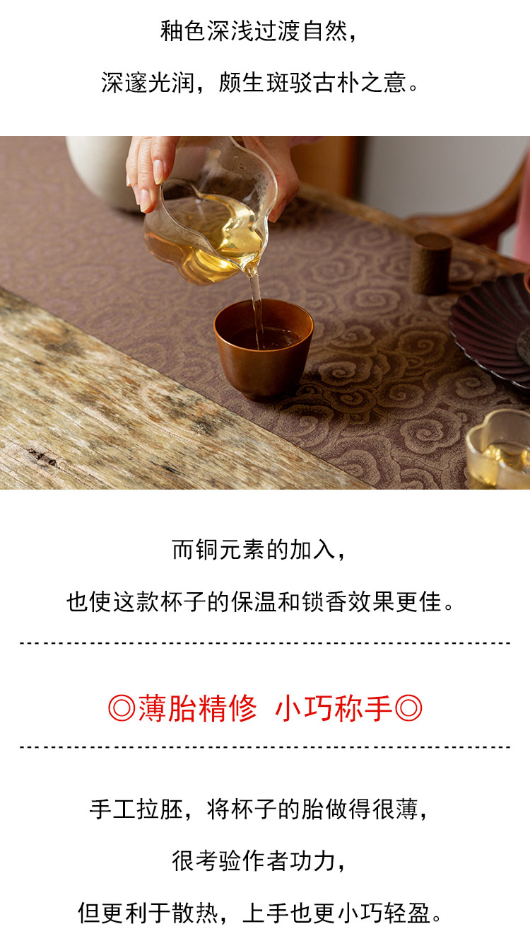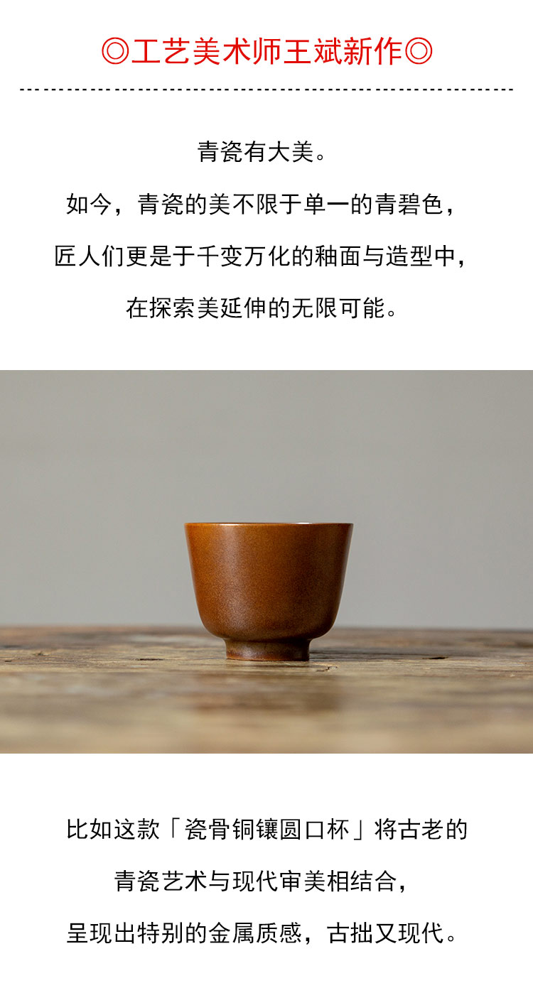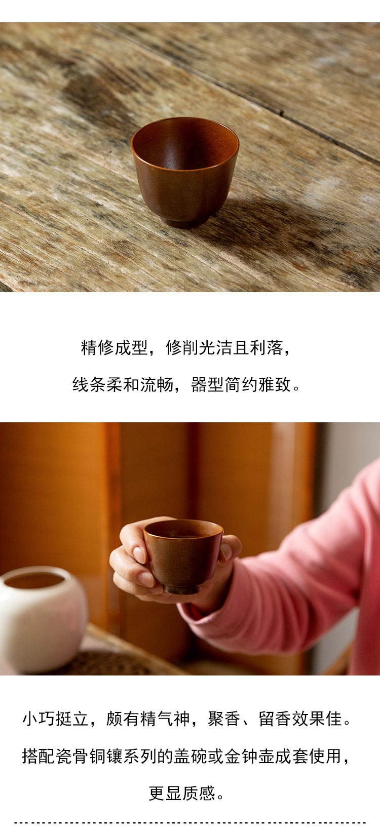 茶香记 瓷骨铜镶圆口杯 薄胎轻巧 金属感 古雅光润 聚香散热佳