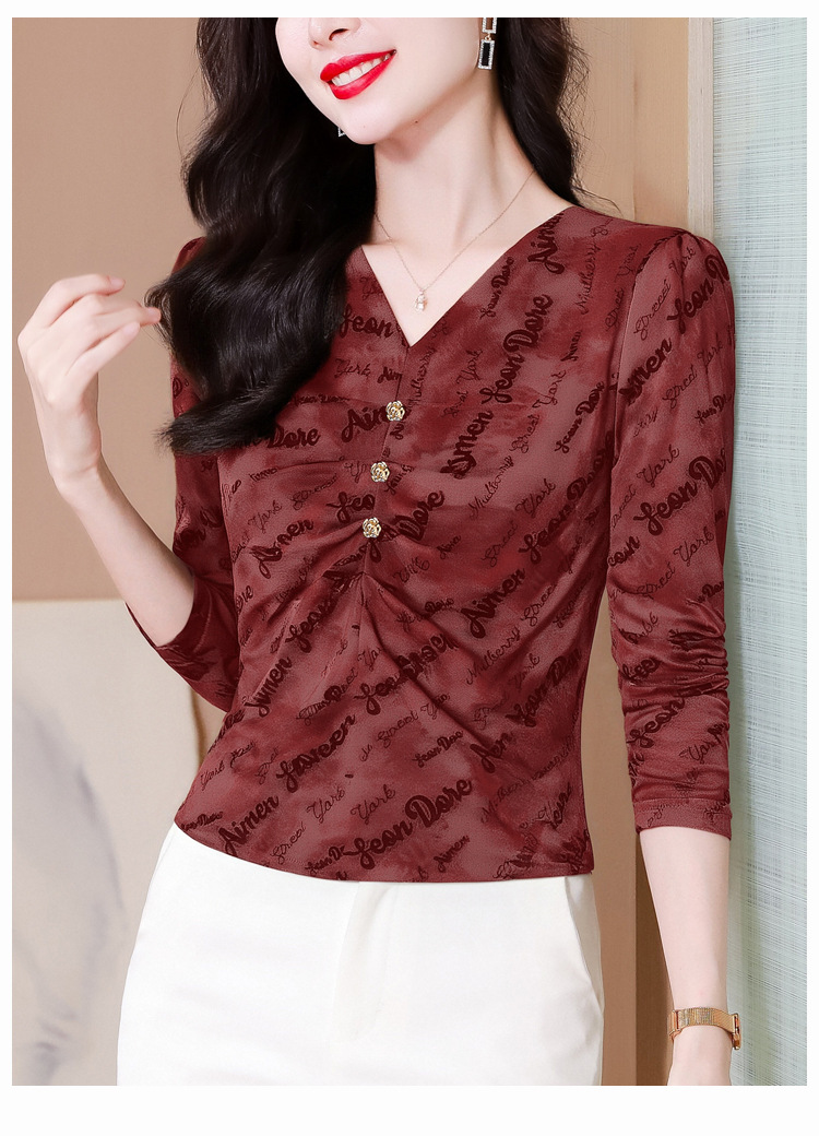 KQL 765G396新款V领修身洋气百搭上衣