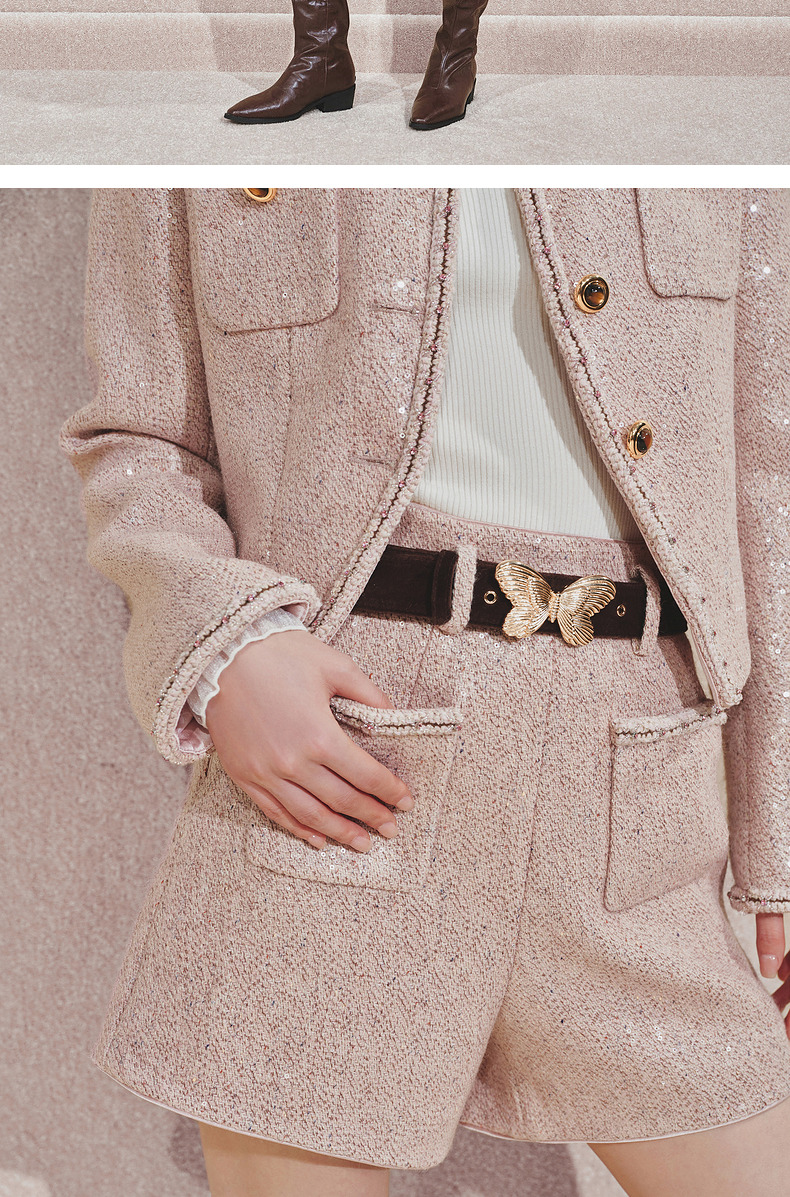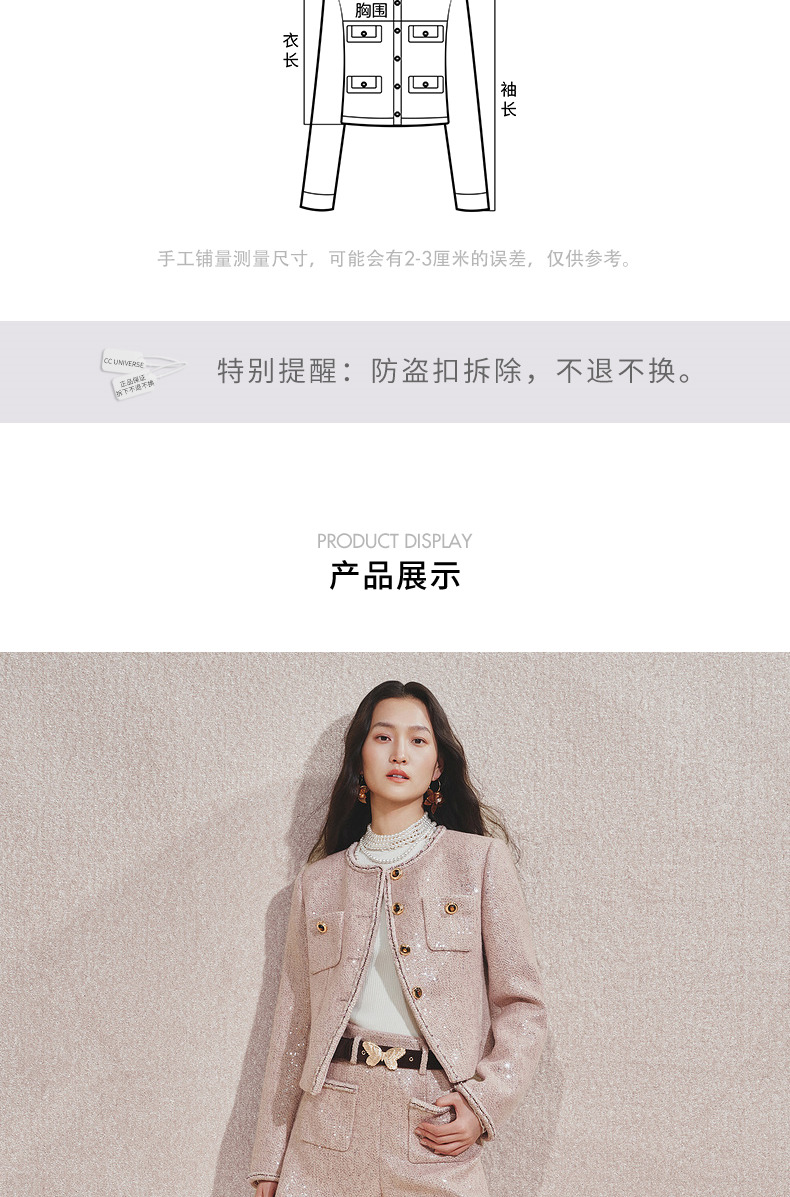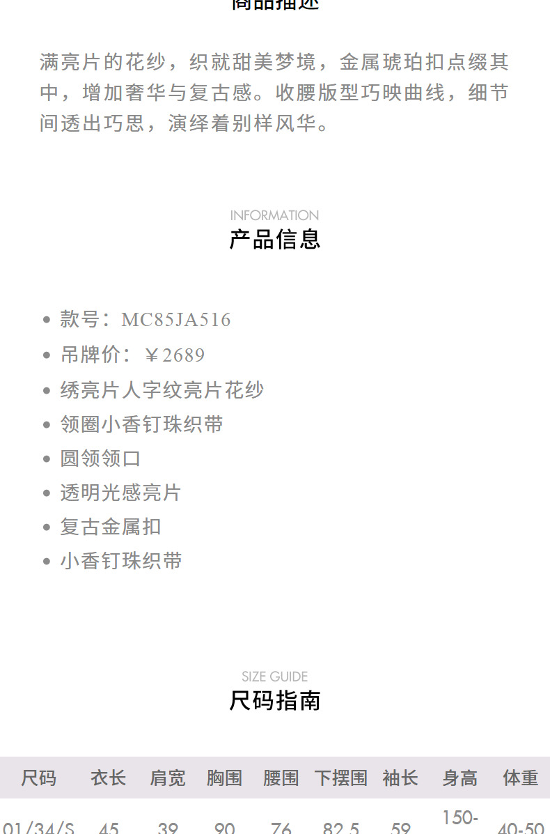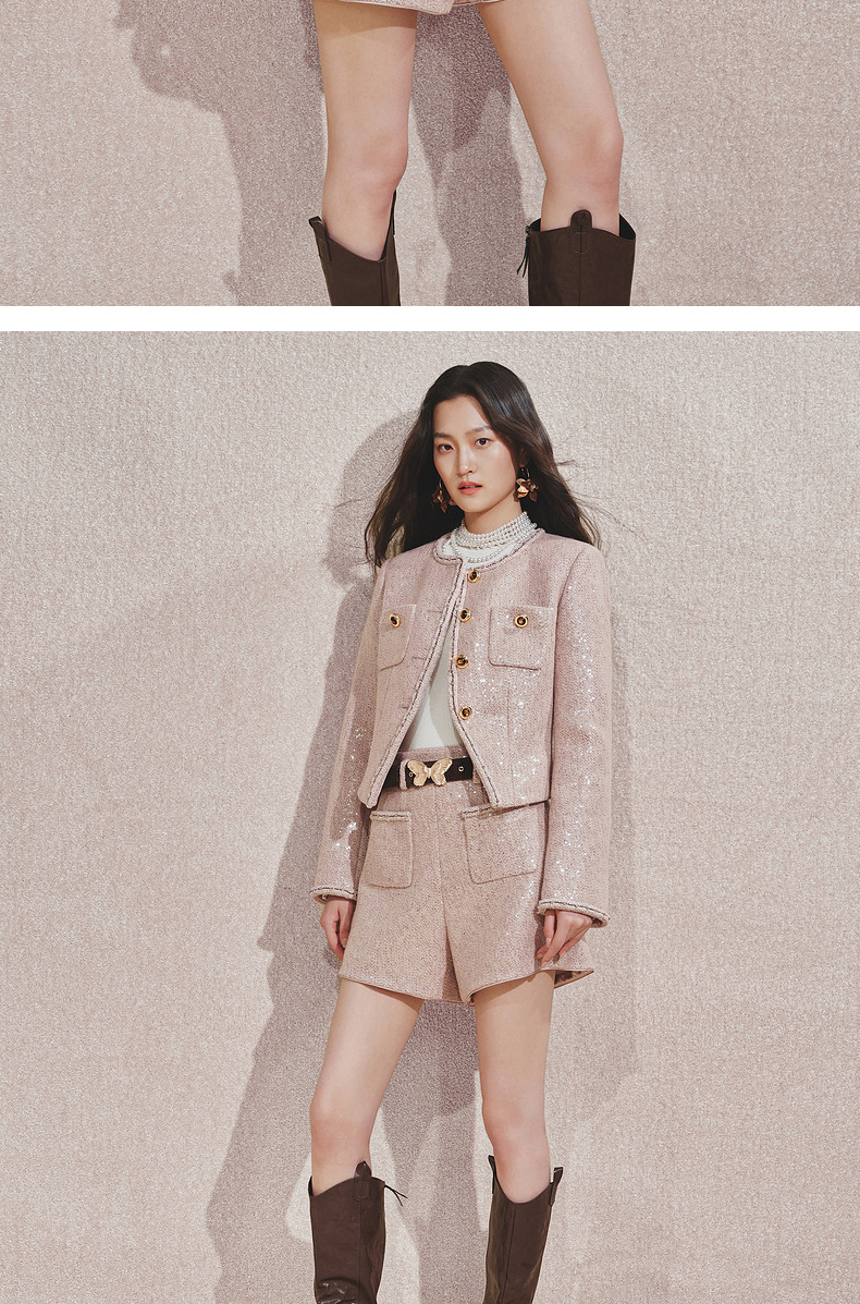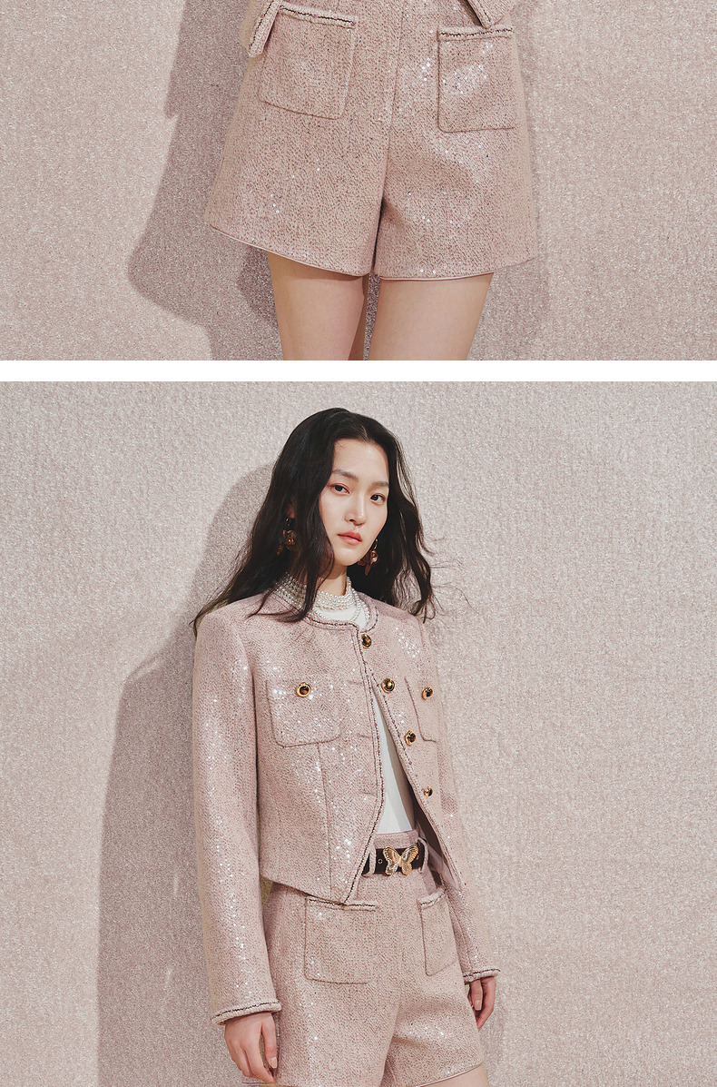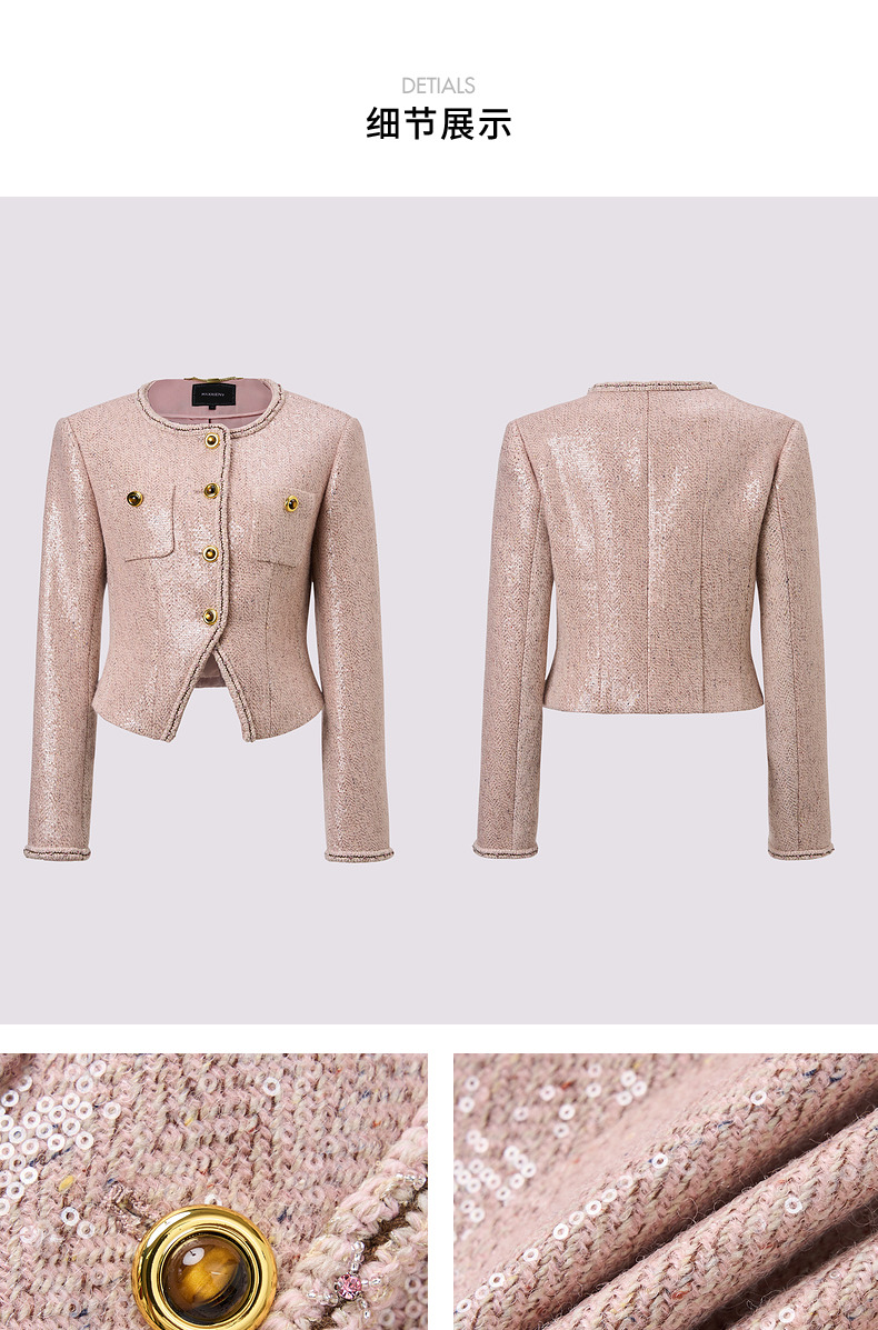 MAXRIENY复古甜美收腰X型光感亮片外套24秋冬新款高级气质感女装(货号:MC85JA516)