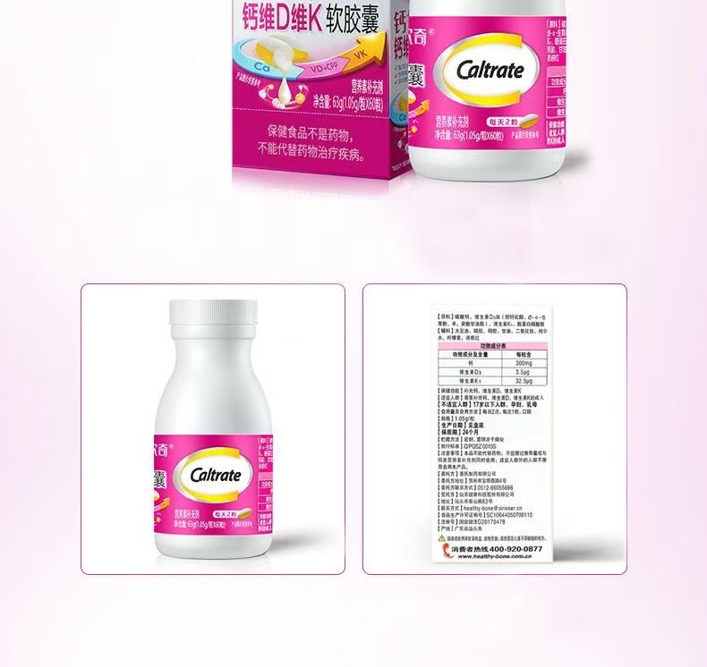 钙尔奇钙维D维K软胶囊/1瓶(1.05g*110粒)生产日期:25年5月补单专用