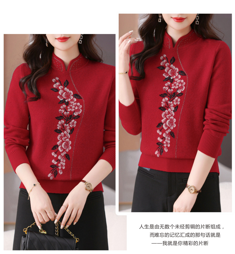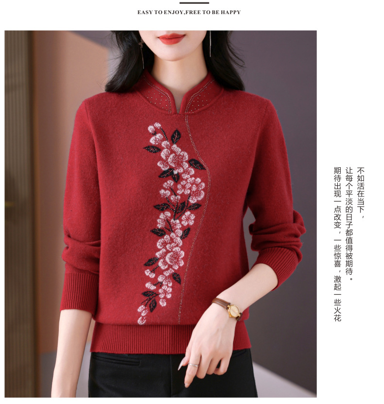 CC-MS-6901宽松2024年新款秋冬针织小衫绣花国风时尚毛衣立领盘扣上衣