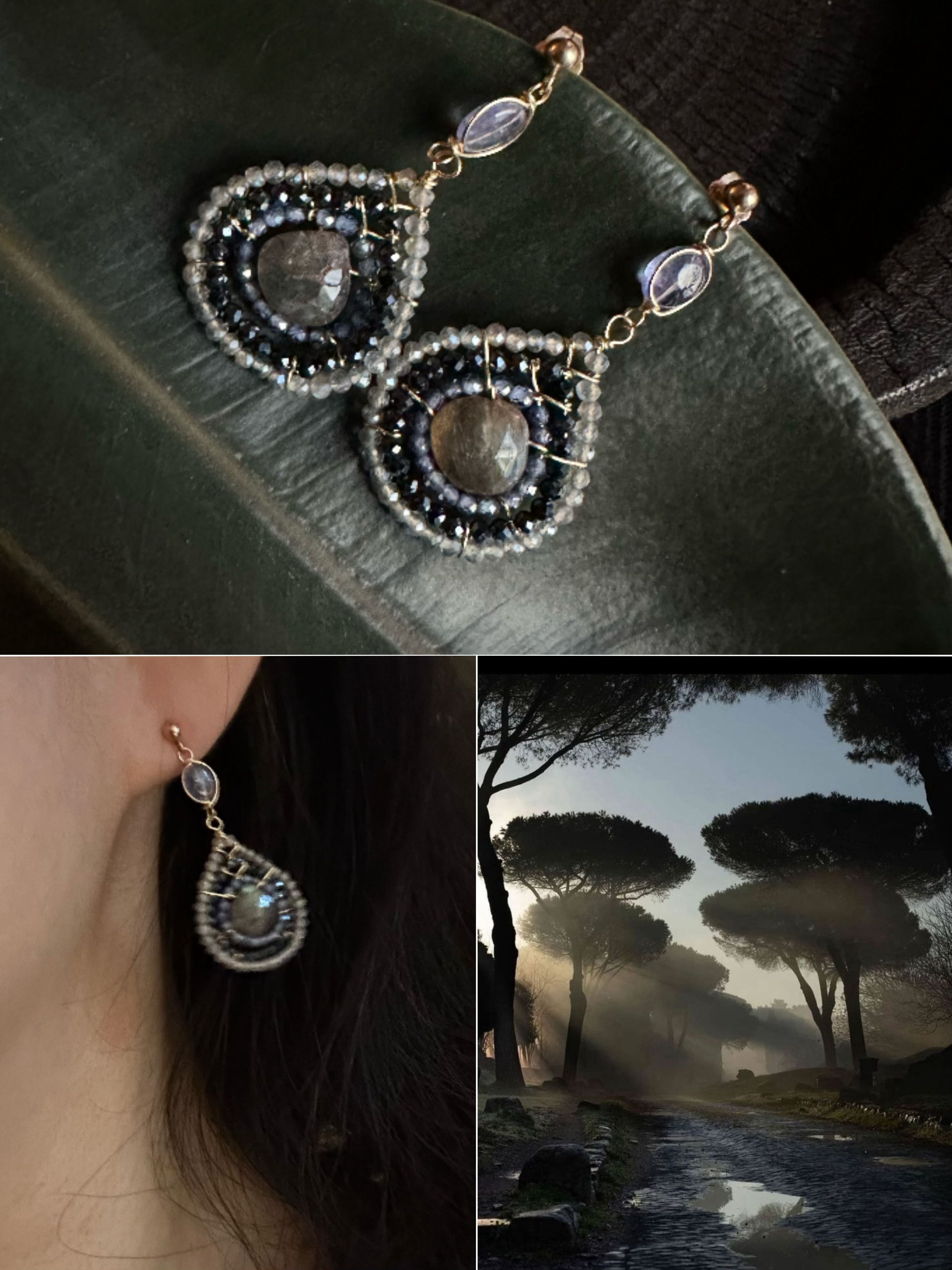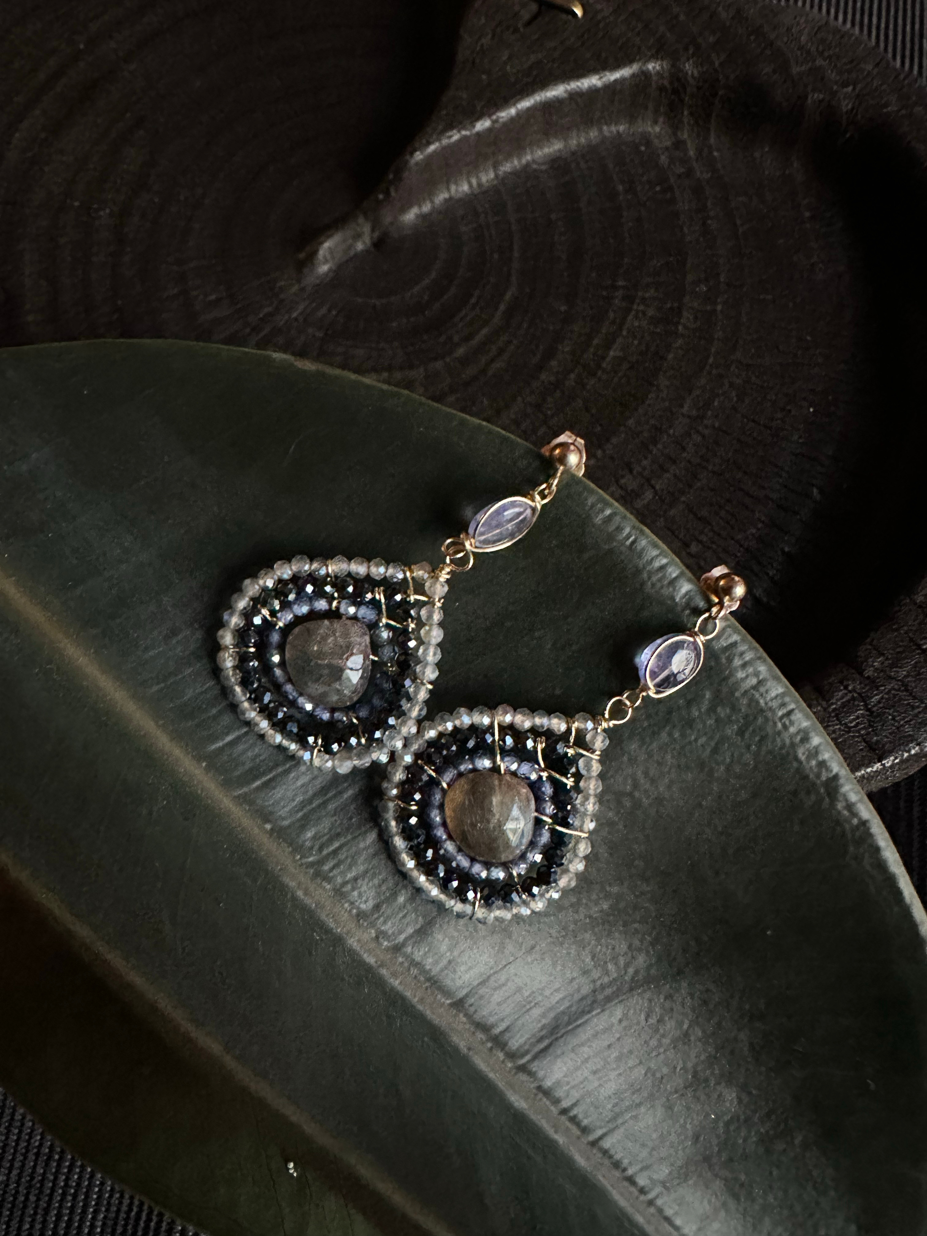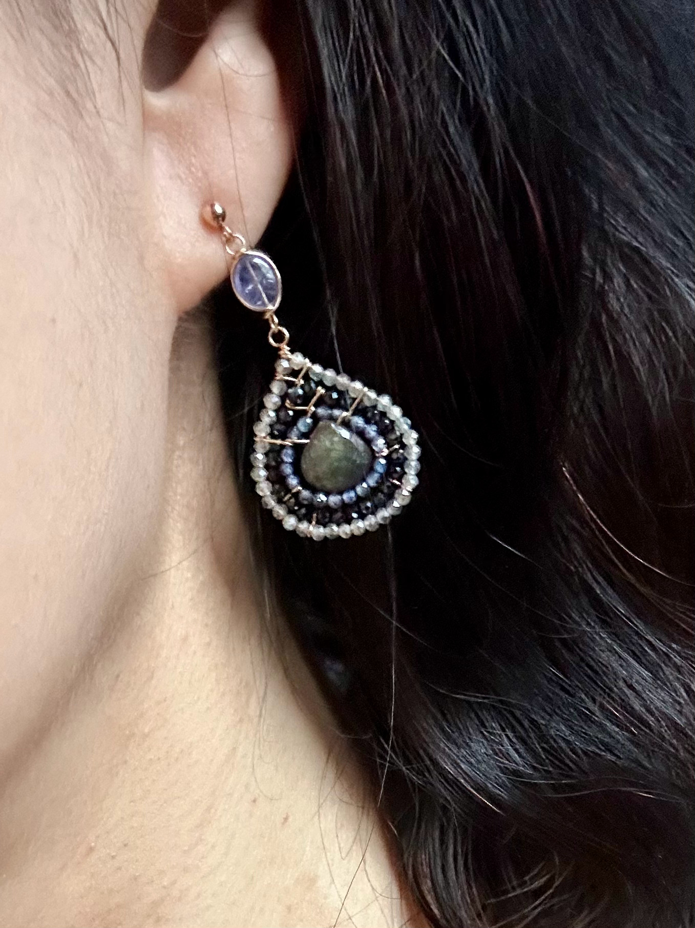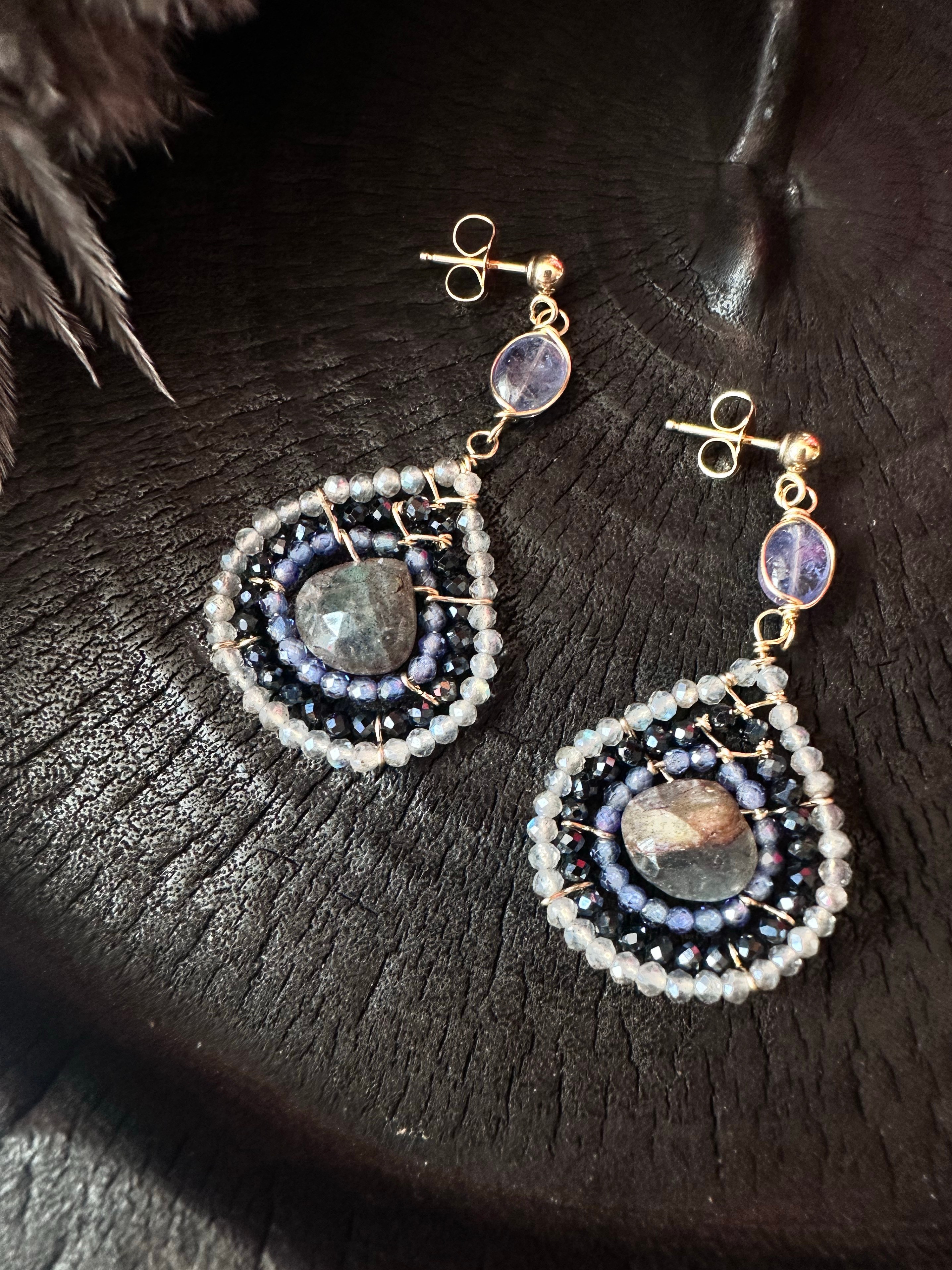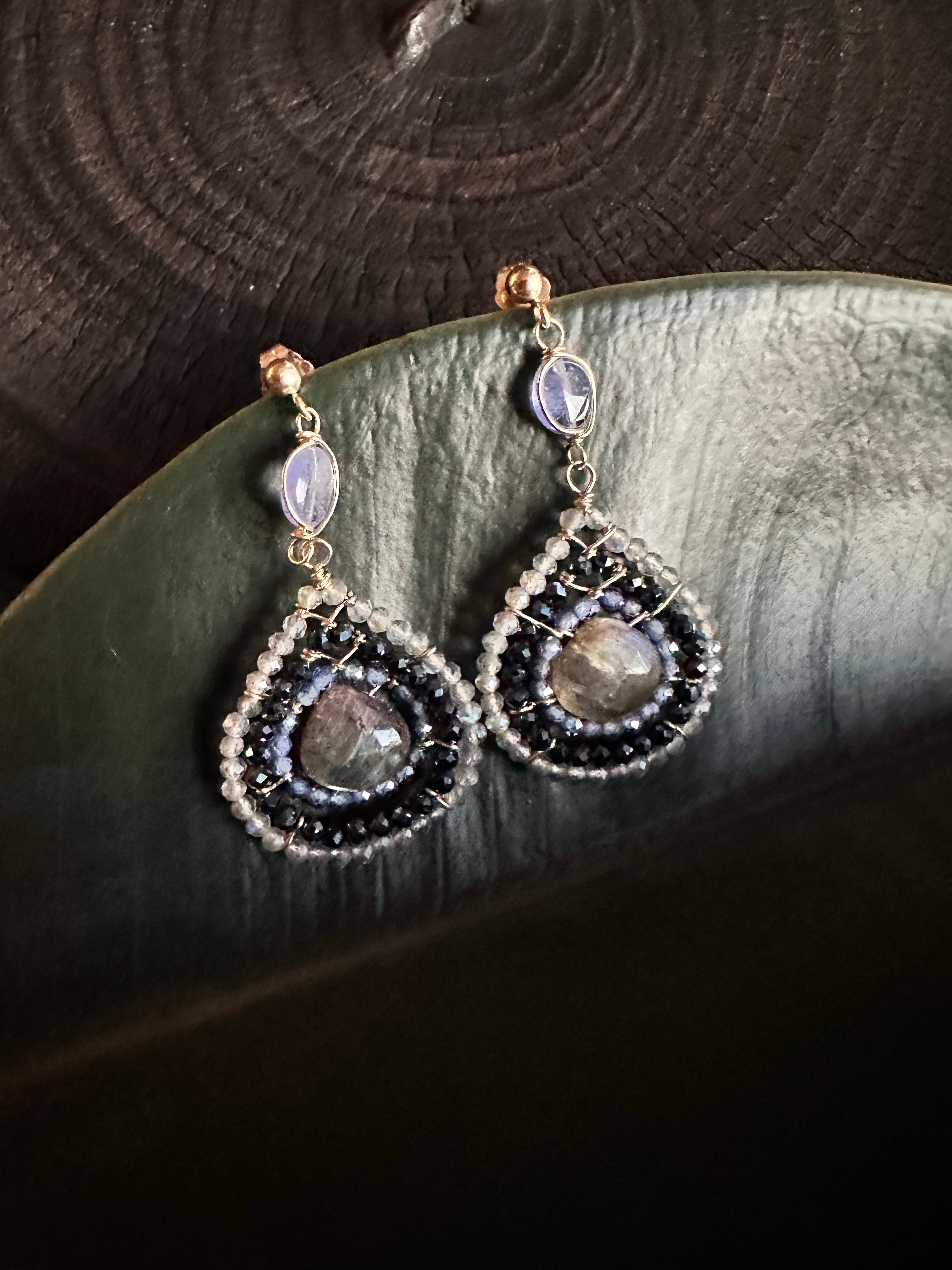 SpoiledBrat Jewelry戏剧系列 |14K注金斜长石坦桑石尖晶石耳环