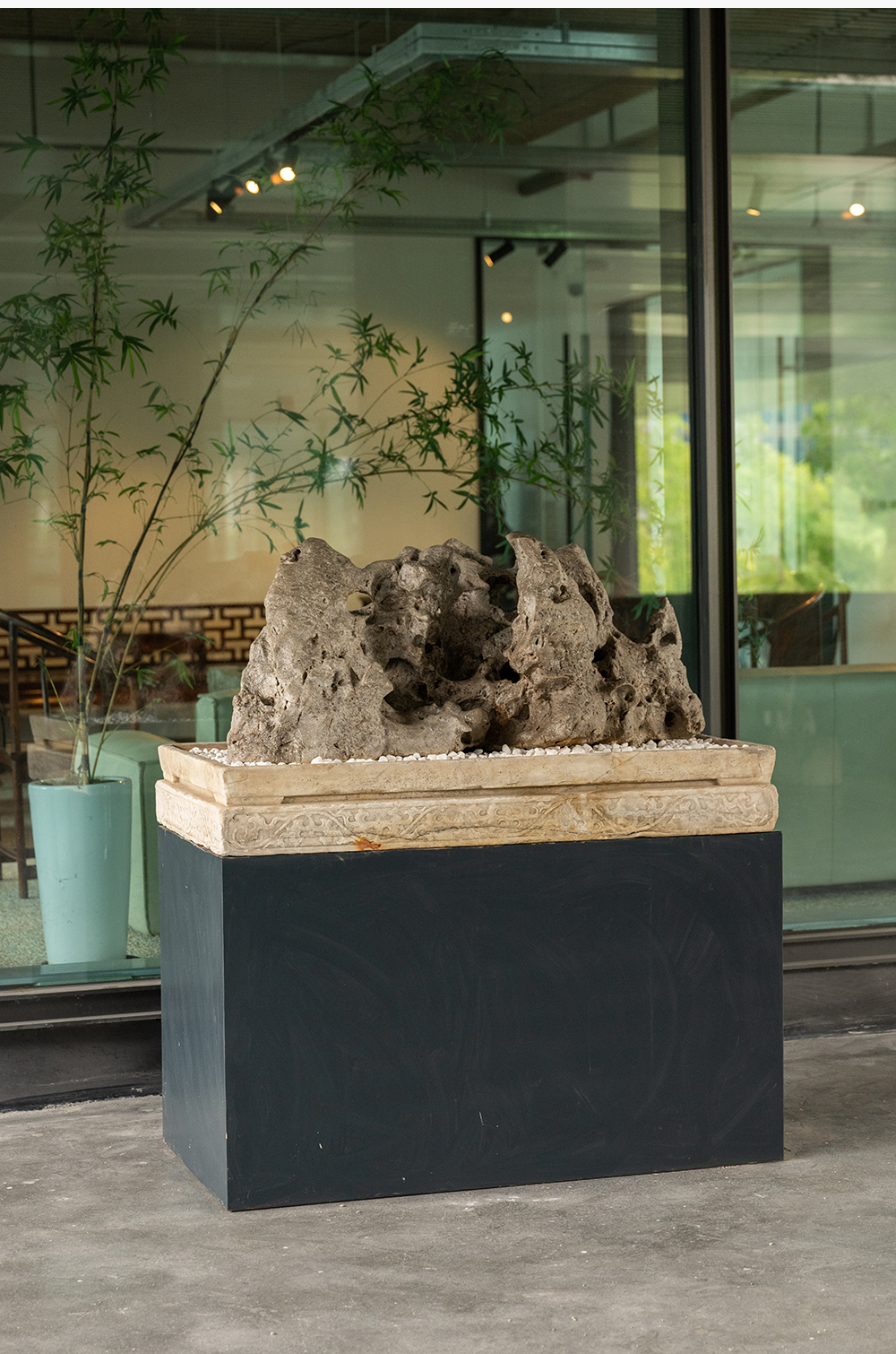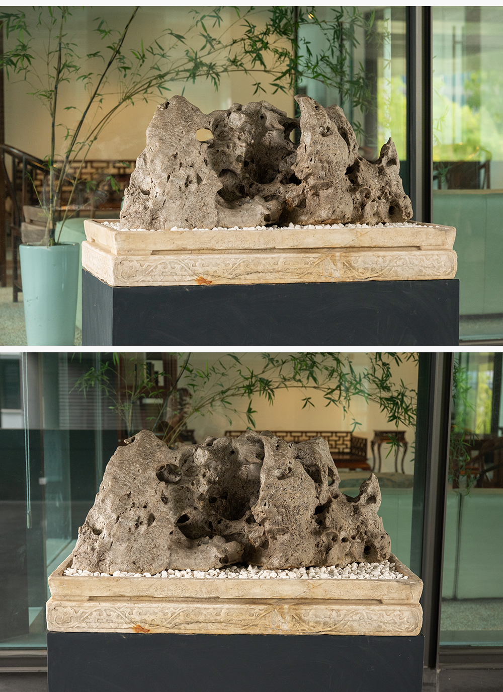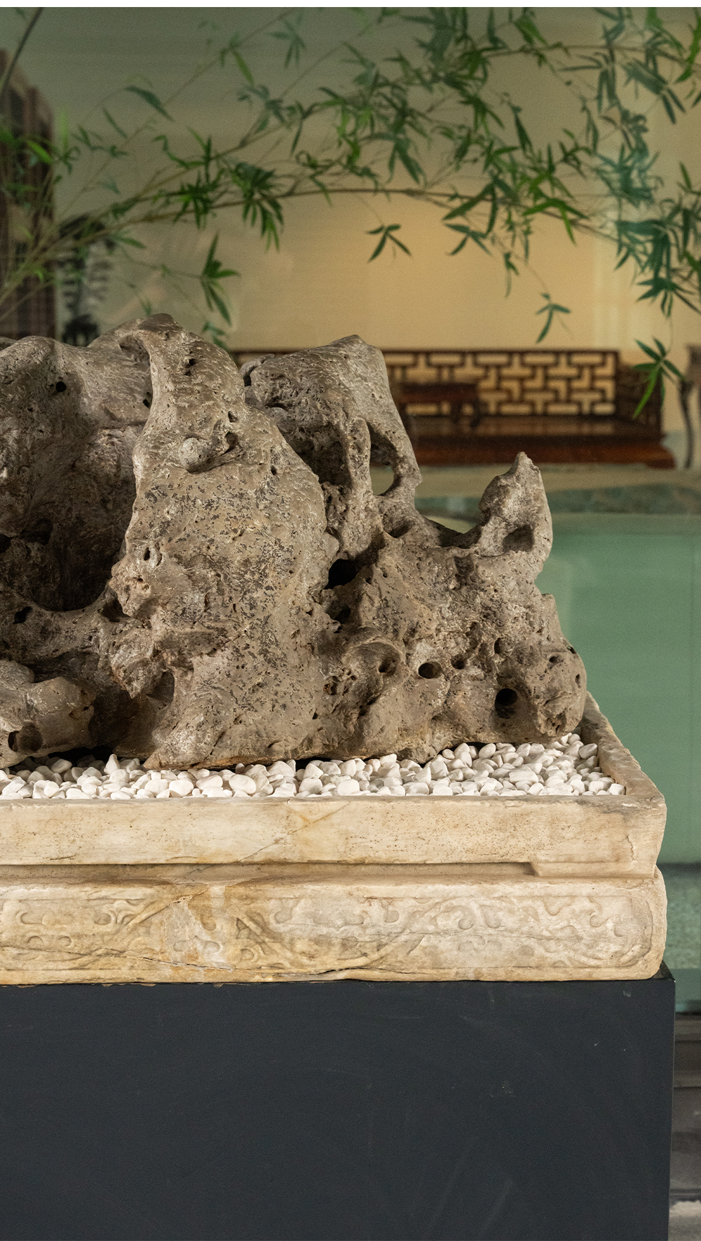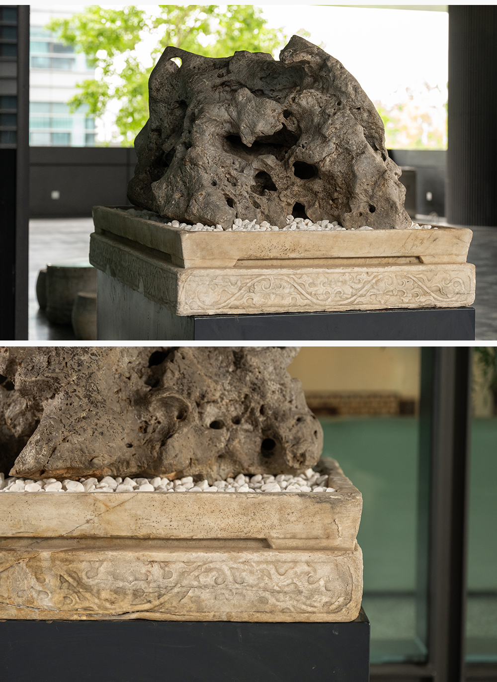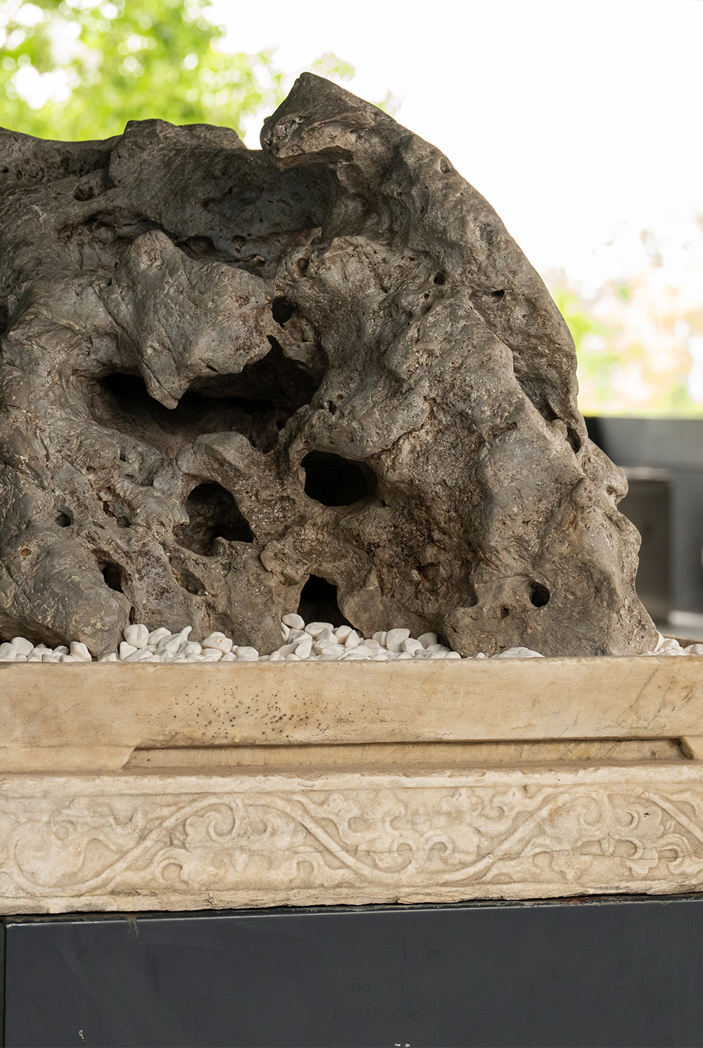 清 太湖石园林赏石配汉白玉石盆