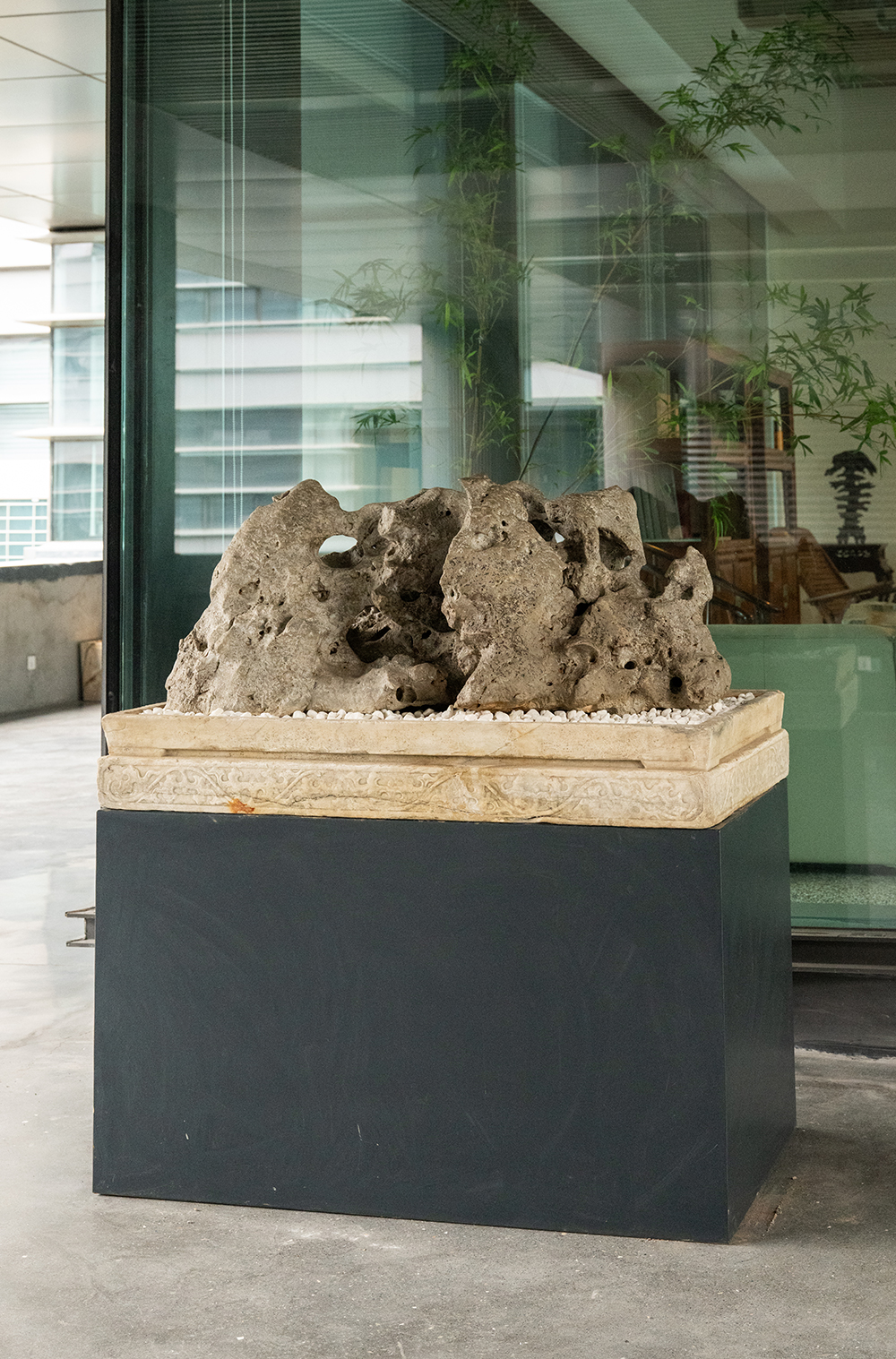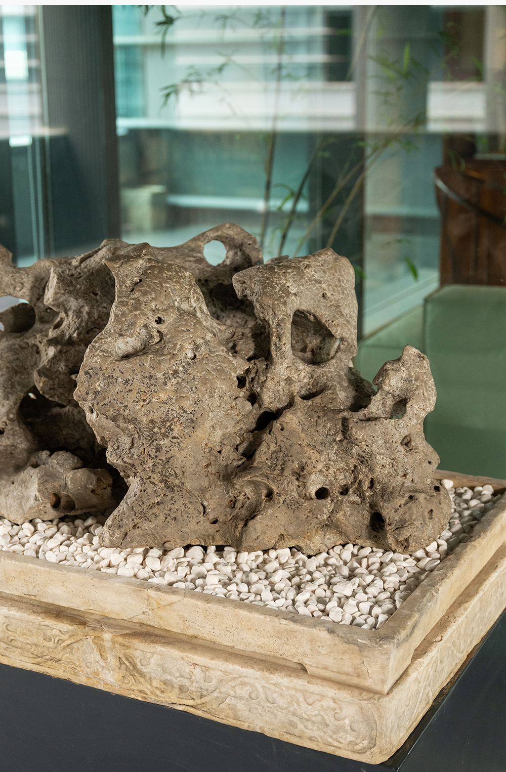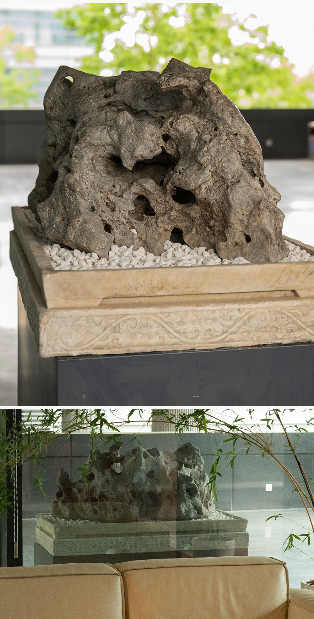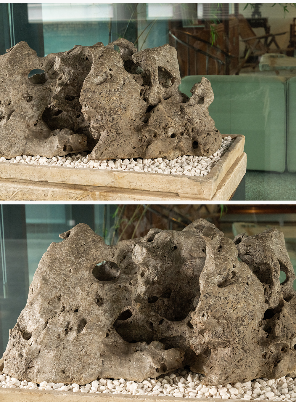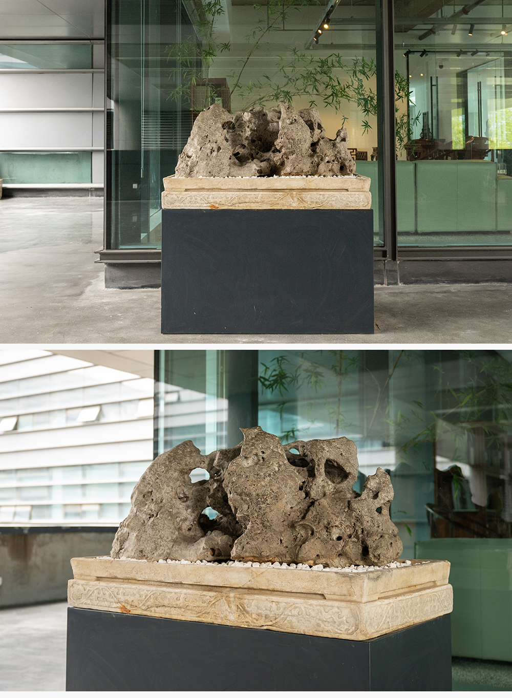 清 太湖石园林赏石配汉白玉石盆