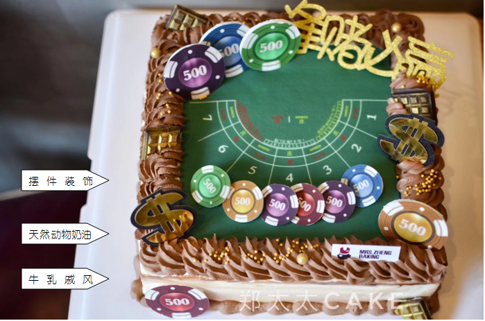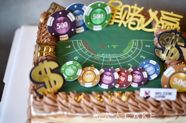 此款为筹码、赌桌皆由翻糖糯米纸制作,可食用