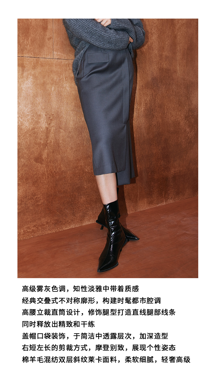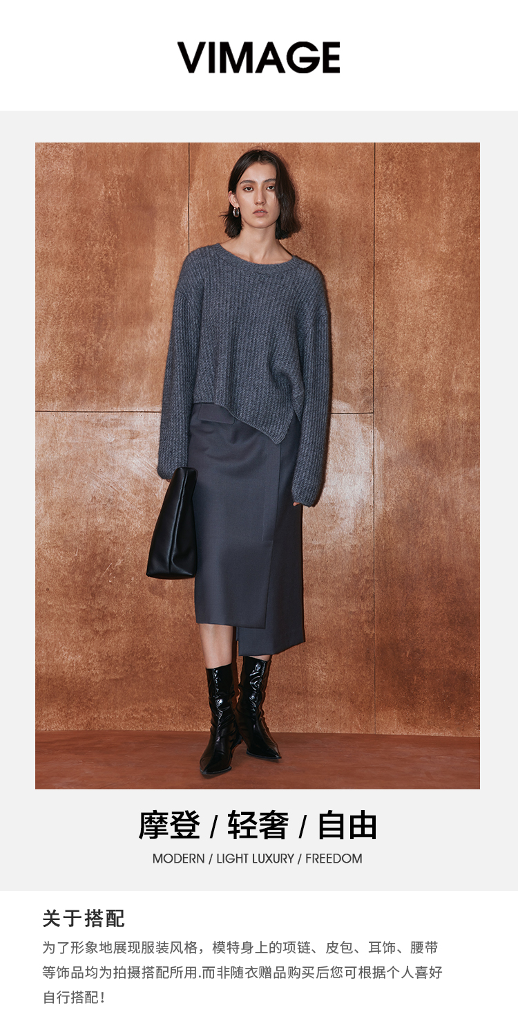 VIMAGE纬漫纪冬季新款高腰不规则下摆半身裙V2006629